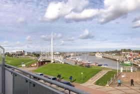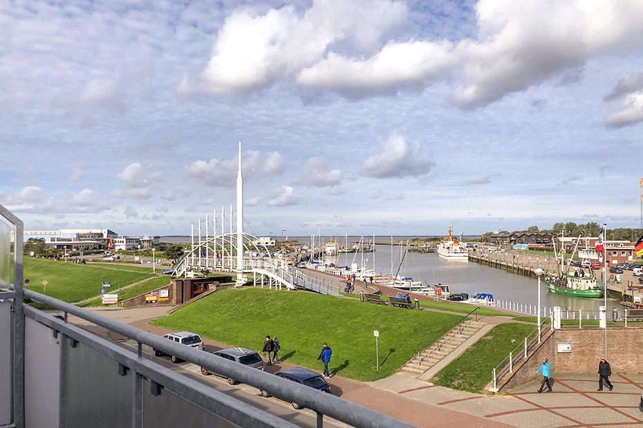 in der „Residenz am Hafen“ in Bensersiel fantastischer Aussicht auf den Hafen, die Nordsee und die Inseln!