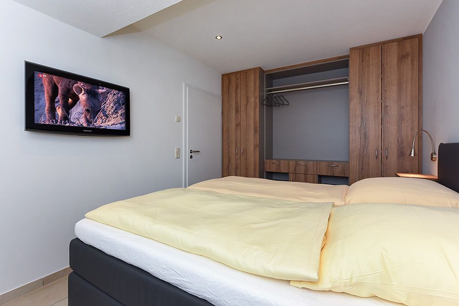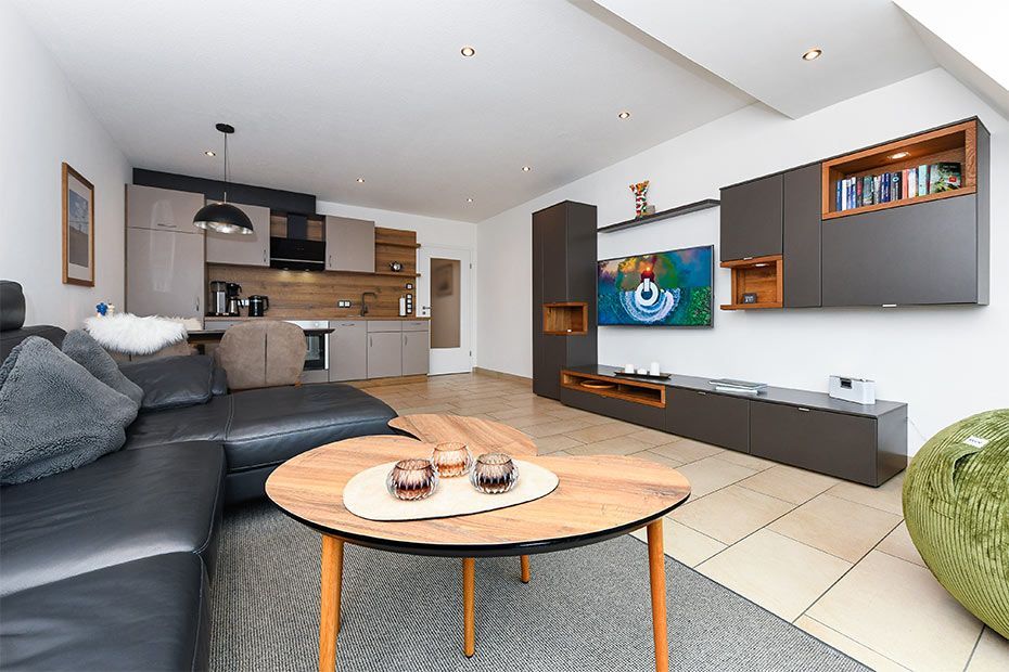 Zum Beispiel gibt es ein Boxspringbett, eine voll ausgerüstete Küche mit Induktionsherd, Geschirrspülmaschine und vielem mehr. Die Einrichtung wurde vom Tischler maßangefertigt. Zur Ferienwohnung gehört ein Tiefgaragenstellplatz von dem Sie mit einem Fahrstuhl bequem die Ferienwohnung erreichen.