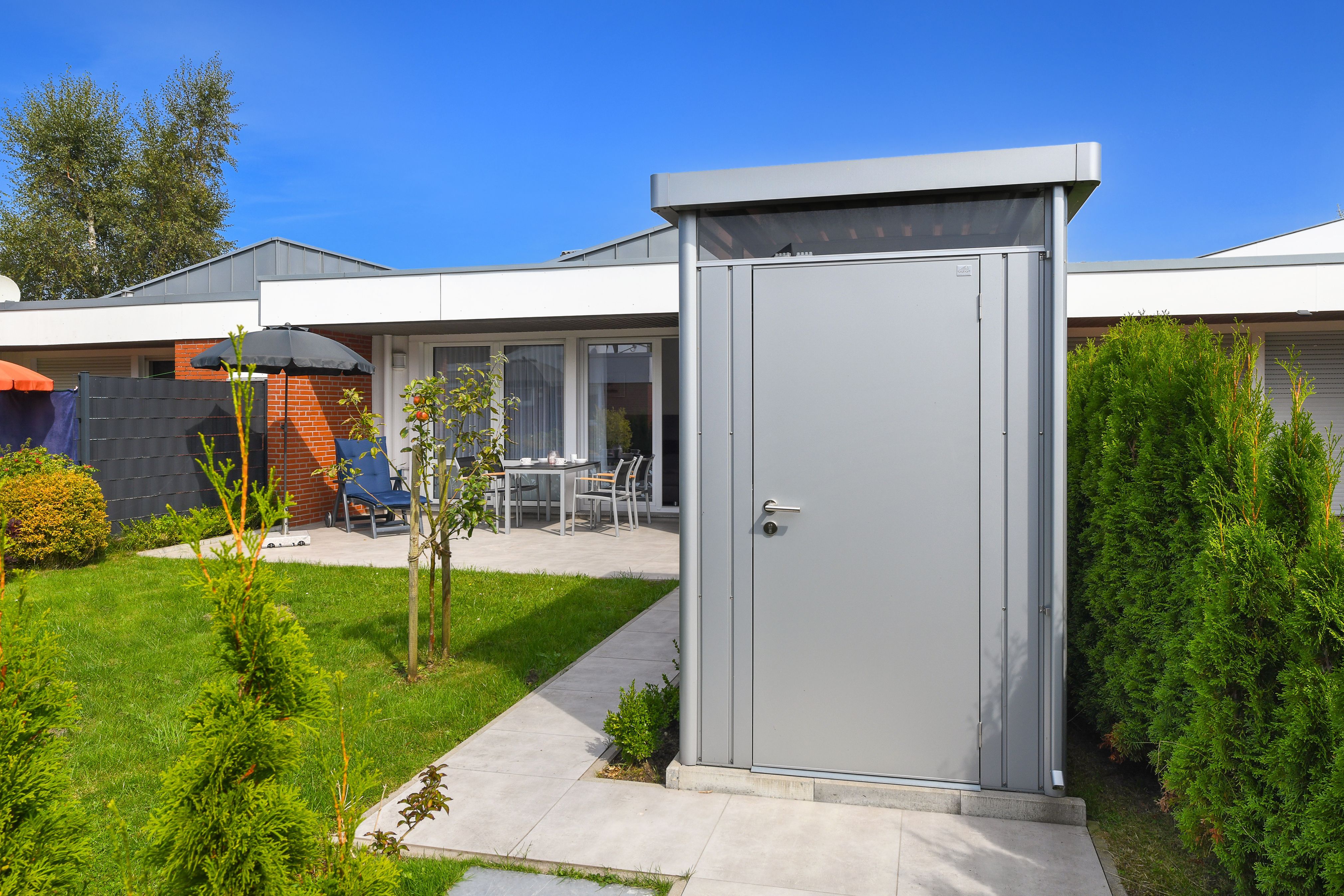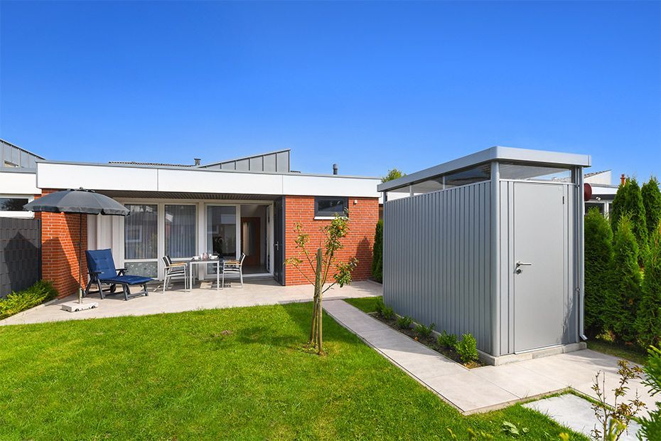 Abschließbarer Fahrradschuppen mit Lademöglichkeit für Fahrräder