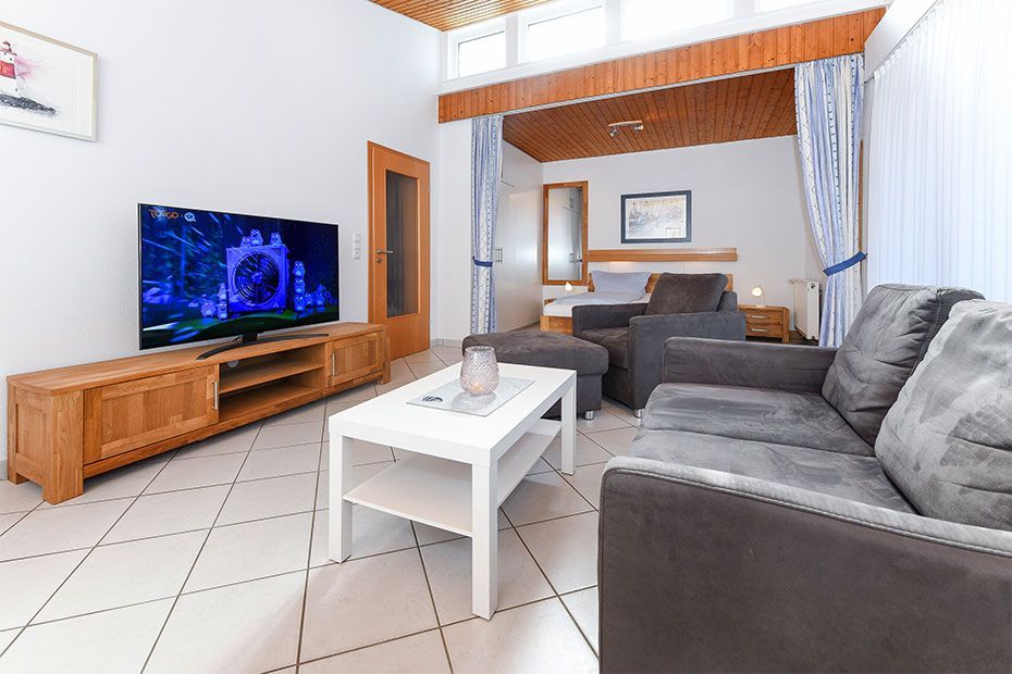 Wohnzimmer mit abgeteiltem Schlafbereich