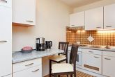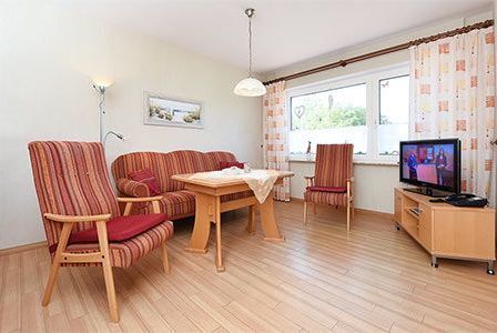 Größe ca. 52 Quadratmeter, Wohnraum mit integrierter Küche, Schlafzimmer, Badezimmer mit Dusche, Waschtisch und WC, Erdgeschoss, Terrasse, optimal für 1 bis 2 Personen. Vor der Wohnung befindet sich eine gartenmöblierte Terrasse.