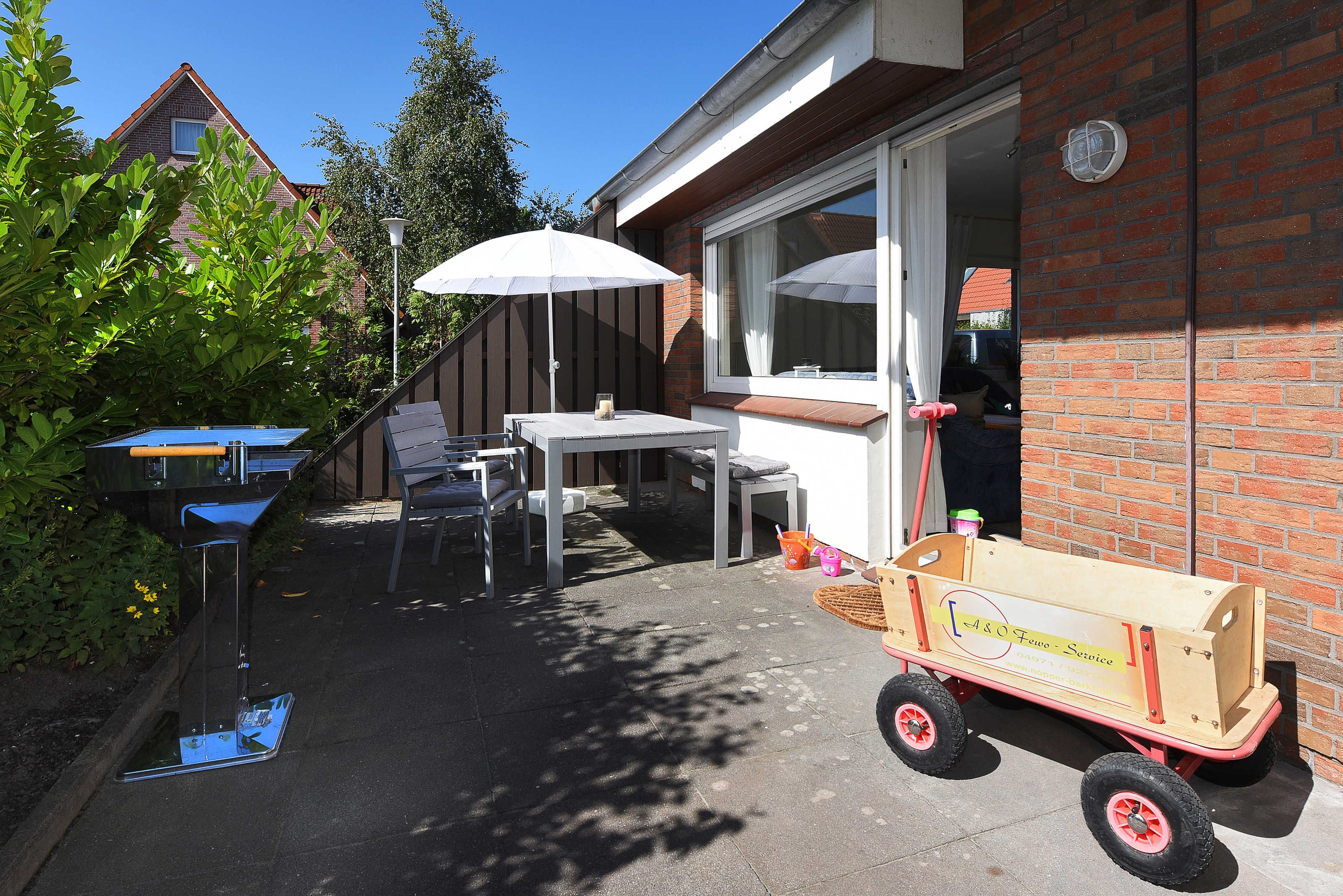 Die Terrasse der Ferienwohnung ist ca. 20 Quadratmeter groß.