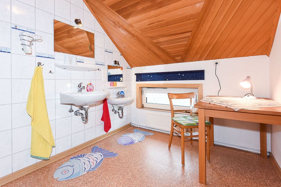 Größe ca. 80 Quadratmeter, Wohnzimmer, Küche, Schlafzimmer, zweites separates Schlafzimmer, drittes separates Schlafzimmer/Kinderzimmer, Badezimmer mit Dusche, Waschtisch und WC, zweites Badezimmer mit Dusche und Waschtisch, drittes Badezimmer mit Doppel-Waschtisch, separates zweites WC mit Waschtisch, Obergeschoss, allergikerfreundlich, ausschließlich für Nichtraucher, Internetzugang über WLAN möglich, optimal für 2 bis 6 Personen und zusätzlich ein Kleinkind.