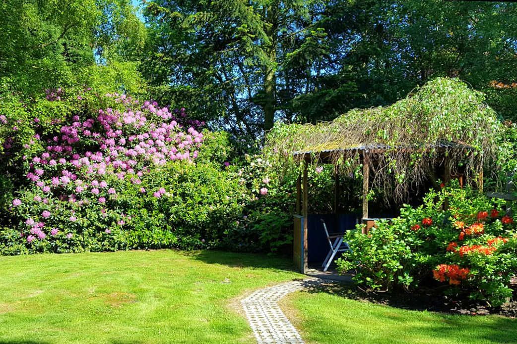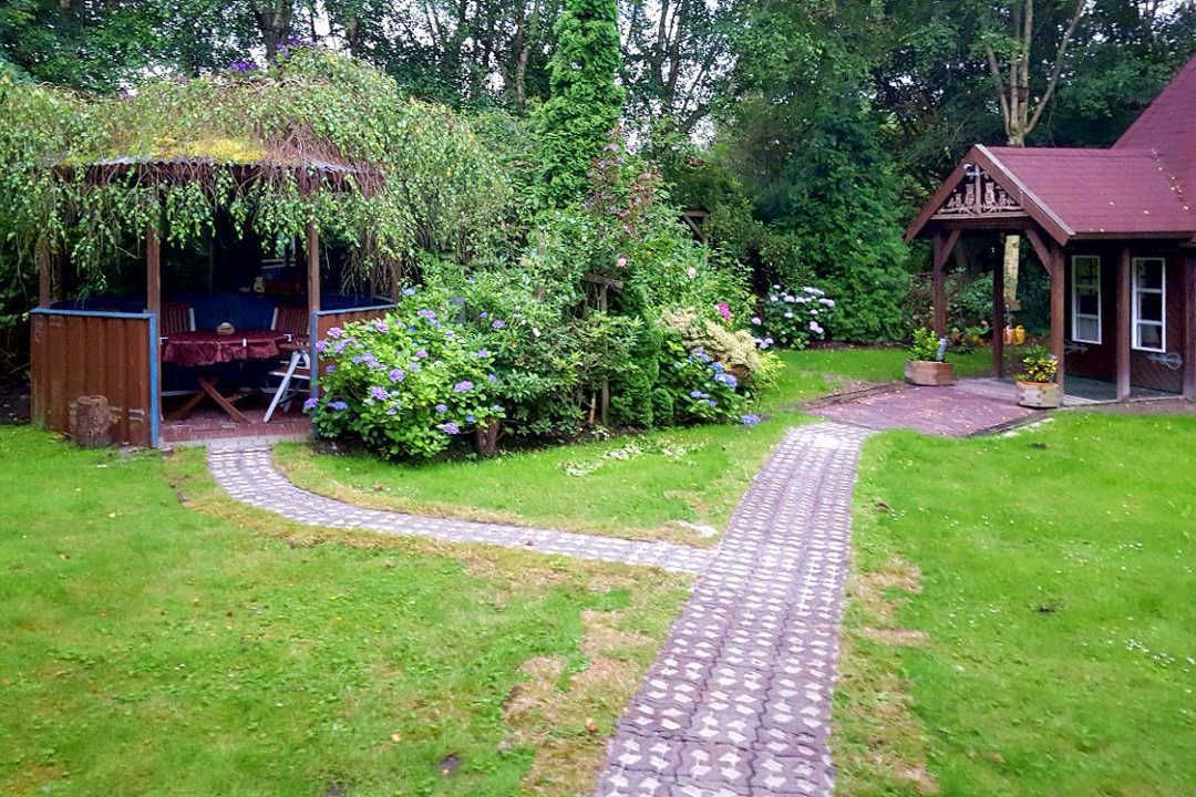 In unserem schönen großen Garten können Sie also auf den großen Liegewiesen die Sonne genießen und es sich am geschlossenen überdachten Holzpavillion sowie auf mehreren geschützten Außenterrassen je eine davon reserviert für Ihre jeweilige Ferienwohnung so richtig gut gehen lassen. Grillen kann man hier natürlich auch ganz hervorragend.