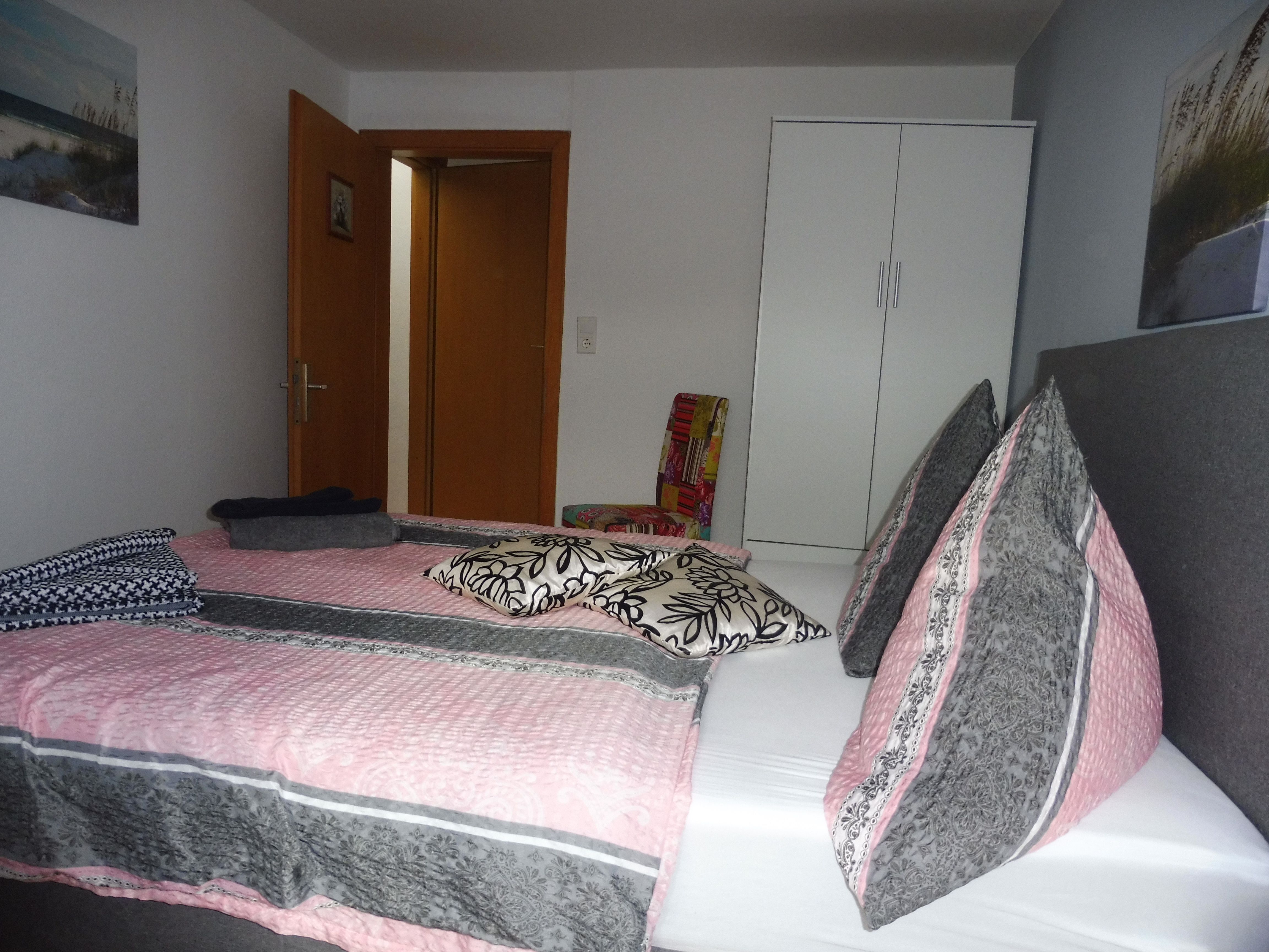 separates Schlafzimmer mit Kleiderschrank und Futonbett 140x200. Alle