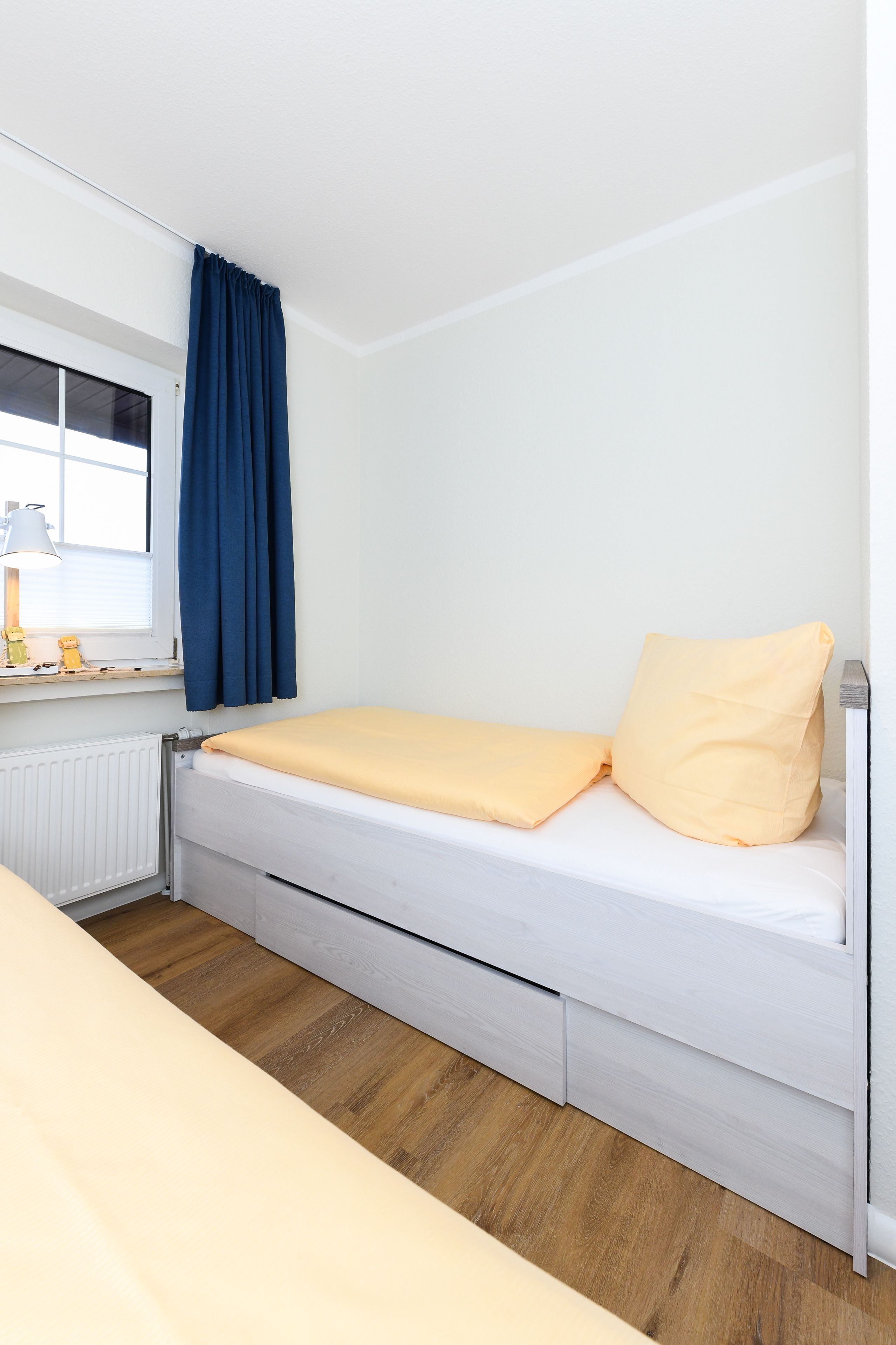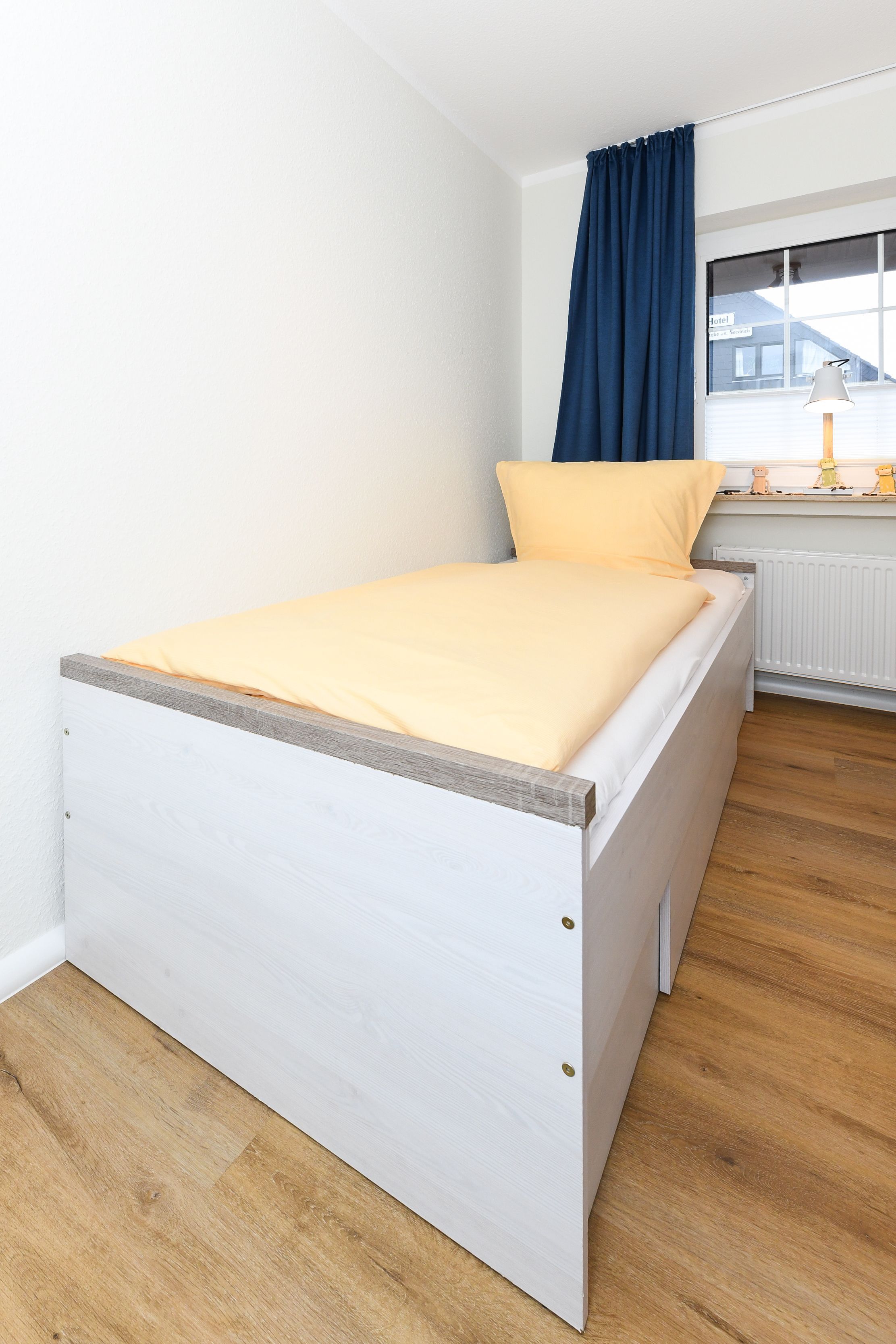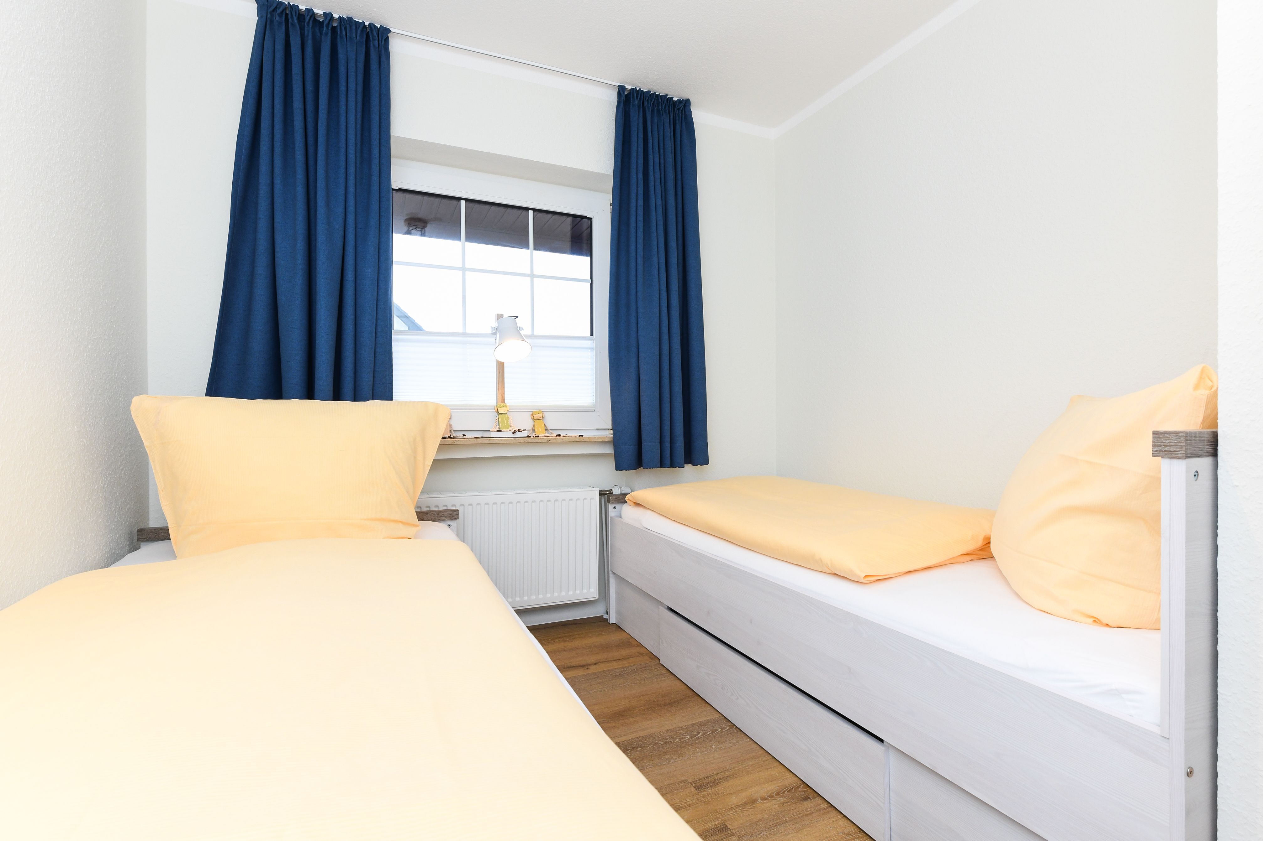 Die Schlafzimmer lassen sich mit Verdunkelungsgardinen abdunkeln.