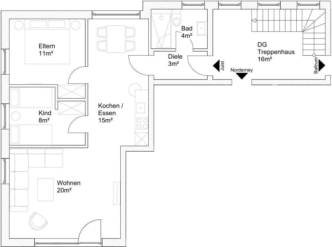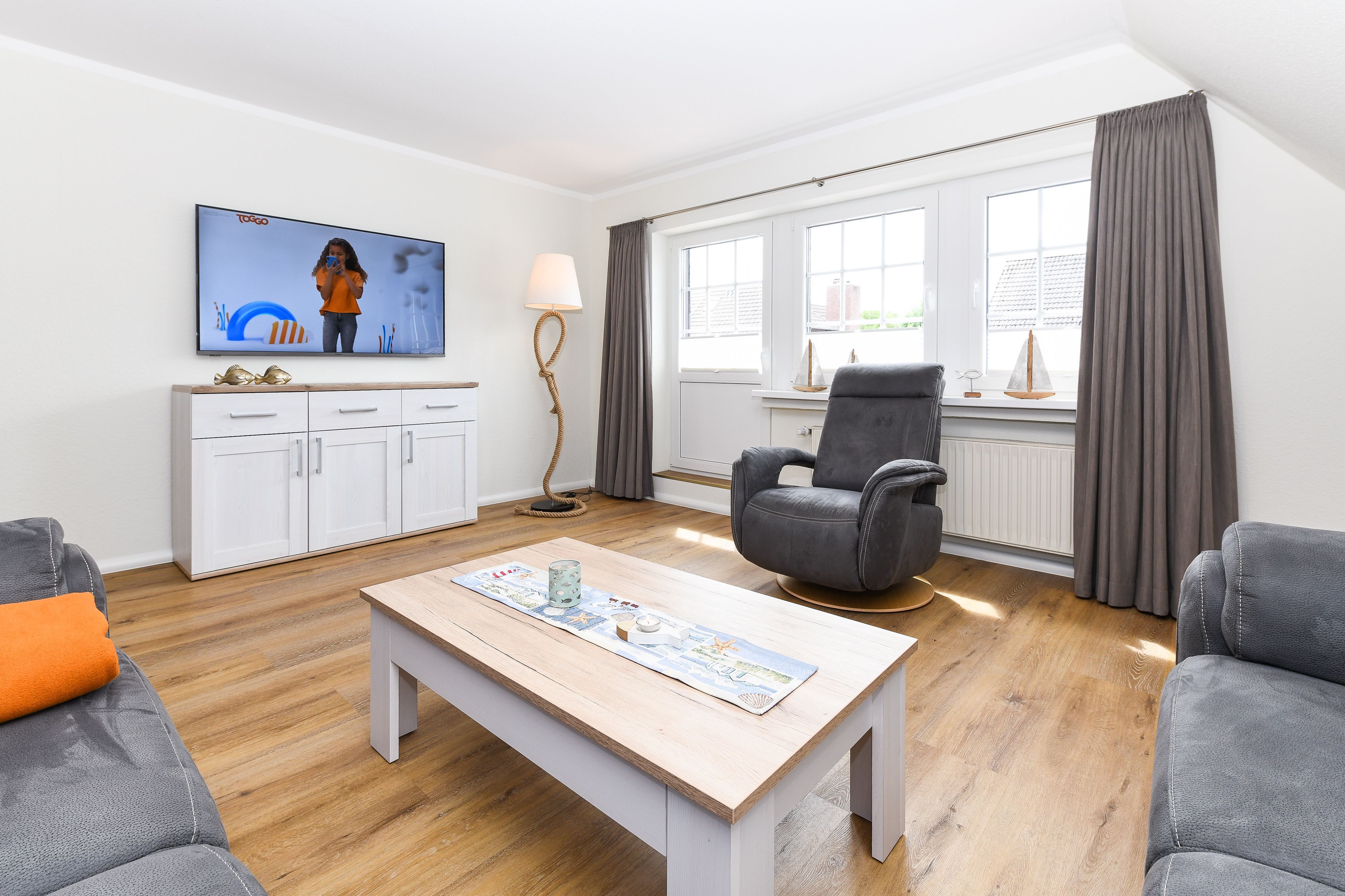 Die Ferienwohnungen sind im Januar und Februar 2021 komplett renoviert worden und in hellem und freundlichen Stil und mit hochwertigen Materialen eingerichtet und ausgestattet. Fünf Ferienwohnungen sind für bis zu 4 Gäste und eine Ferienwohnung, die Ferienwohnung Baltrum, ist für 2 Gäste.