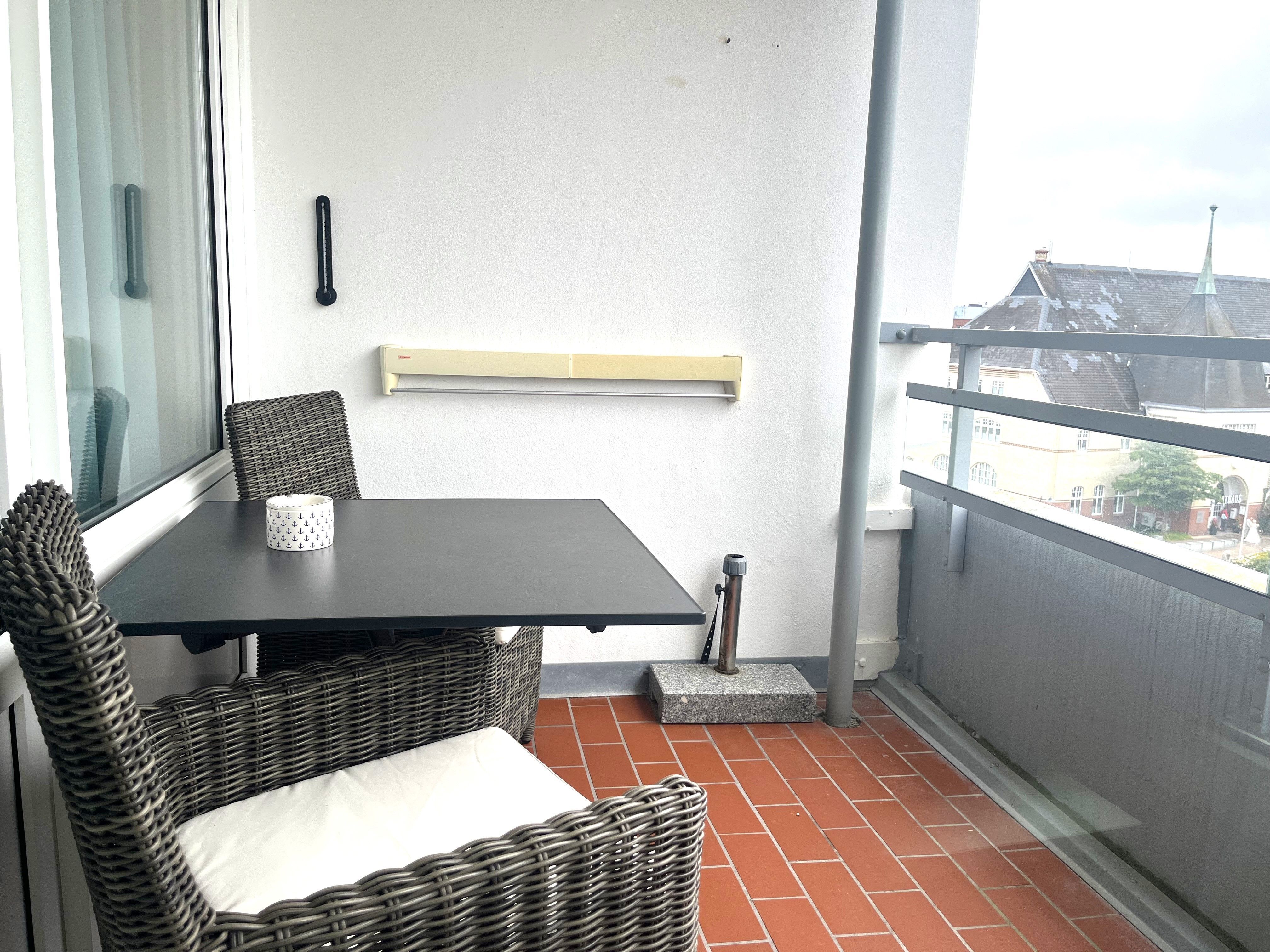 Sie erreichen die Wohnung, die sich im Sparkassengebäude befindet, barrierefrei über den Fahrstuhl, machen die Tür auf und erleben sofort eine freundliche Wohlfühlatmosphäre. Der Urlaub kann beginnen! Die Wohnung ist kpl. renoviert. Sie wohnen in einem Wohnzimmer mit offener Küche. Das Wohnzimmer hat eine gemütliche Ledercouch. Zum bequemen fernsehen gibt es einen 55“ Monitor mit einem gemütlichen Stressless-Fernsehsessel. Sie schlafen in einem bequemen Boxspringbett. Die Wohnung ist mit warmen, pflegeleichten Vinyl-Designboden ausgestattet; das Bad ist gefliest. Die Küche ist kpl. ausgestattet, hat ein Induktionskochfeld, Backofen, Mikrowelle und alles, was man braucht, wenn man sich auch mal selbst verpflegen möchte. Dafür stehen auch die üblichen Dinge wie z. B. Filter-Kaffeemaschine sowie Kaffeevollautomat, Toaster, Wasserkocher und Geschirr bereit. Das freundlich hell geflieste Bad hat eine Dusche mit tiefem Einstieg, ein WC sowie einen komfortablen Waschtisch. Ein Fön ist vorhanden. Auch für Ihre Wäsche brauchen Sie nicht in den Keller. Diese können Sie in der Wohnung waschen, in der sich auch der Trockner befindet. Die Wohnung hat einen Balkon, der aus dem Wohnzimmer erreichbar ist, mit Ausrichtung Ost/Süd-Ost. Der Haupteingang ist über die Paulstraße zu erreichen und befindet sich rückseitig zur Maybachstraße. In der Wohnung befindet sich praktischerweise viel Stauraum für Ihr Gepäck. Somit können Sie für jedes Wetter etwas einpacken und so lange bleiben, wie Sie wollen. Sie können alles gut verstauen und werden trotzdem viel Wohlfühlplatz haben. Im Außenbereich ist ein Müll-Sammelraum zu finden (mit Müllschlucker aus jeder Etage). Auch für unsere kleinen Gäste ist gesorgt. Es stehen auf Wunsch und Vorbestellung ein Kleinkindersets (bis 3 Jahre), bestehend aus einem Hochstuhl und einem Reisekinderbett (ohne Bettwäsche) zur Verfügung (Preis jeweils pro Tag 5,00 €)