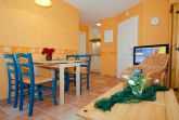 Größe ca. 43 Quadratmeter, Wohn- und Schlafraum, Küche abgeteilt bei offener Wohnraumgestaltung, Schlafzimmer, Badezimmer mit Dusche, Waschtisch und WC, Erdgeschoss, Terrasse, optimal für 2 Personen.