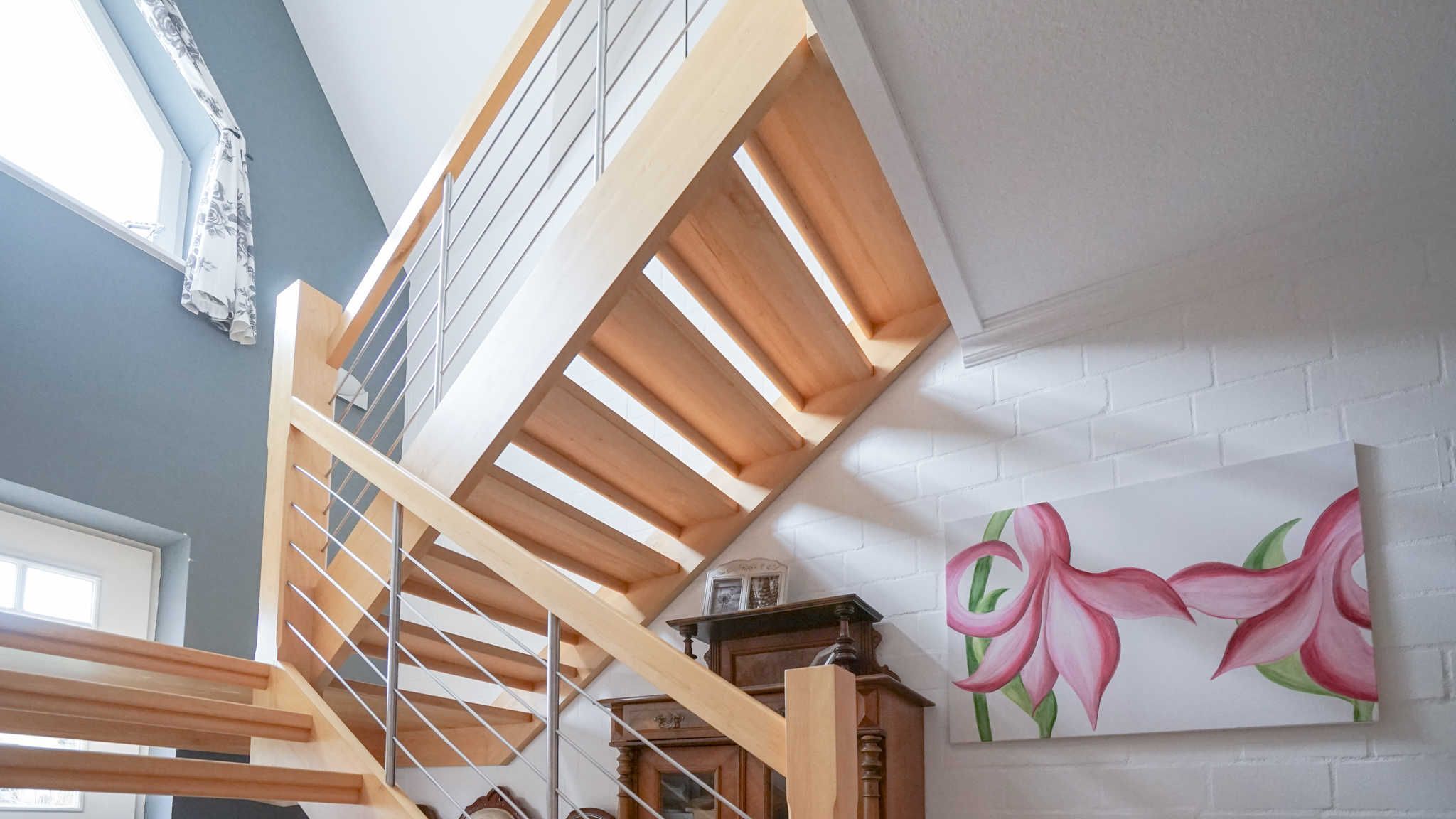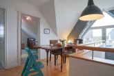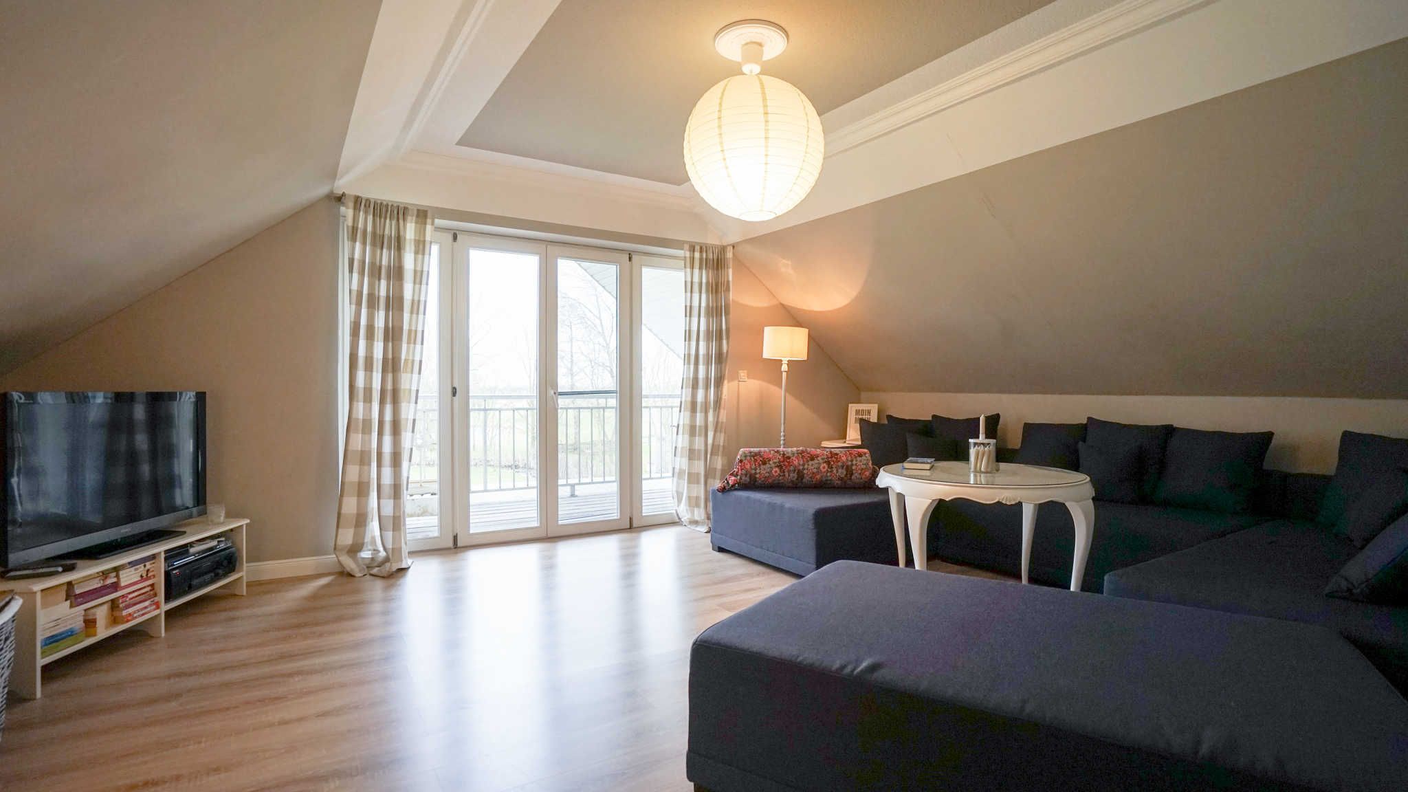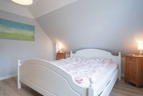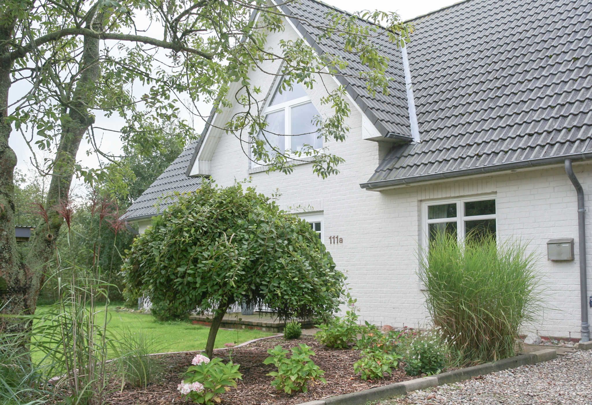 Unsere im Obergeschoss liegende 92 qm Ferienwohnung für bis zu 6 Personen liegt keine 5 Minuten Spaziergang vom Nordseedeich entfernt.