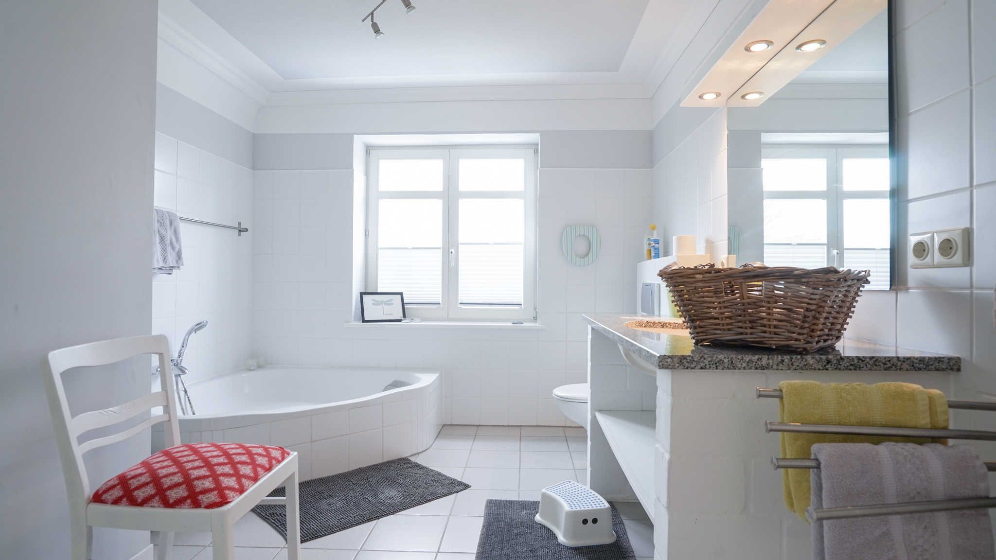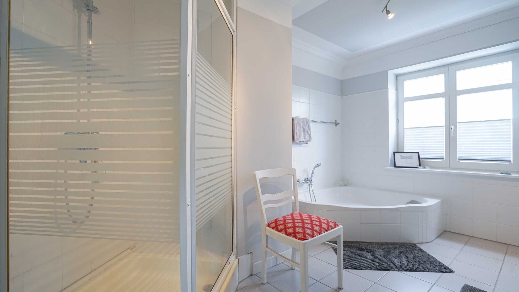 Im großen Badezimmer finden Sie neben einer Dusche auch eine erholsame Eckbadewanne und Fussbodenheizung. In der kleinen aber feinen Küche gibt es viele Utensilien zu entdecken und in der geselligen Essecke mit 6 Stühlen und einem Kindertreppenstuhl können frisch in den Tag starten oder lange Abende verbringen.