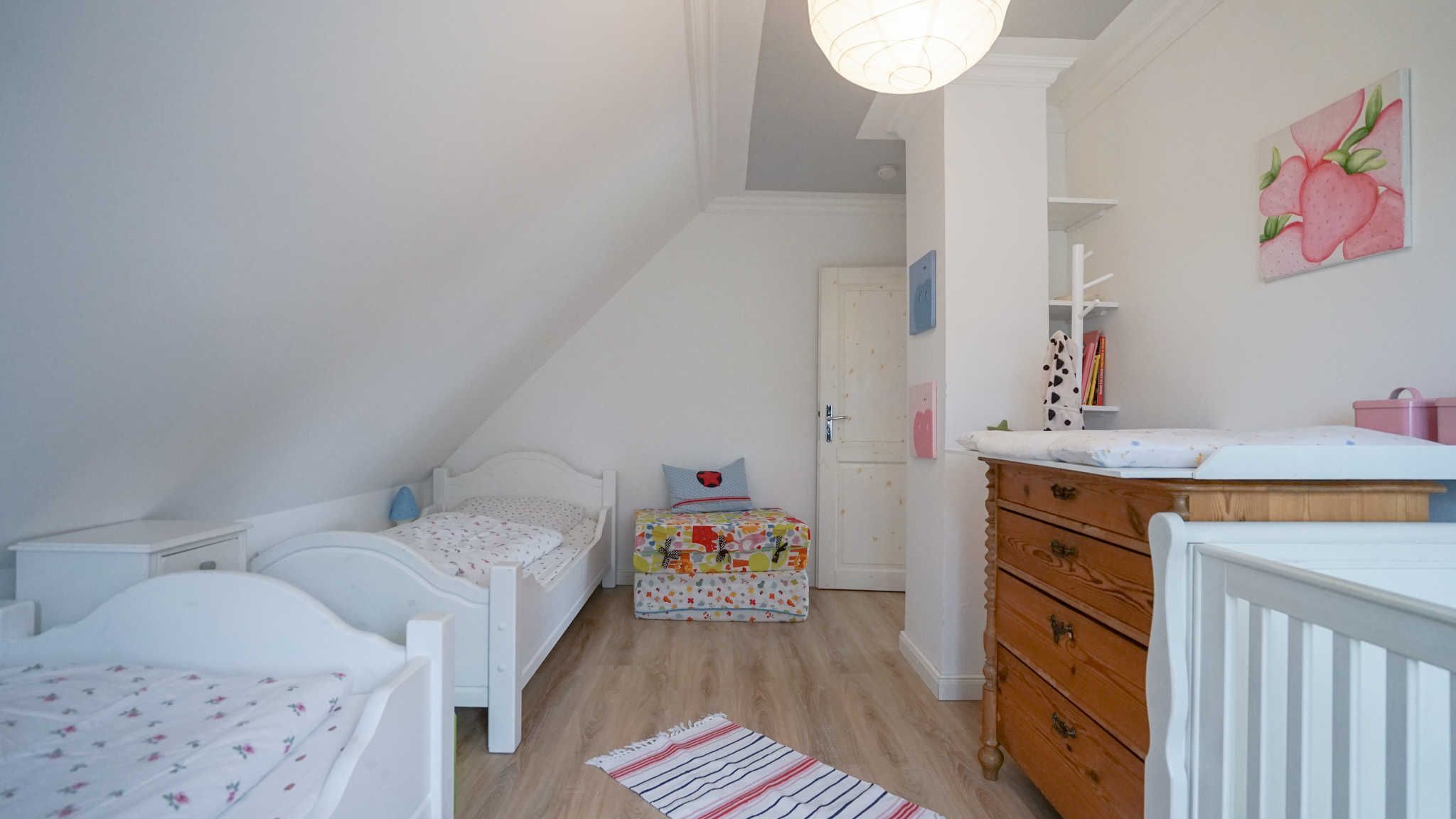 In die Gestaltung des Doppelschlafzimmer mit großem 180 x 200 cm Bett, dem (Kinder)Schlafzimmer mit 2x 100 x 200 cm Einzelbetten, einem Gitterbett und einer (Wickel-)Kommode auf Wunsch und der „Guten Stube“ mit großer, gemütlicher Schlafcouch, haben wir all unser Herz gegeben und unseren nordischen Charme versprüht.