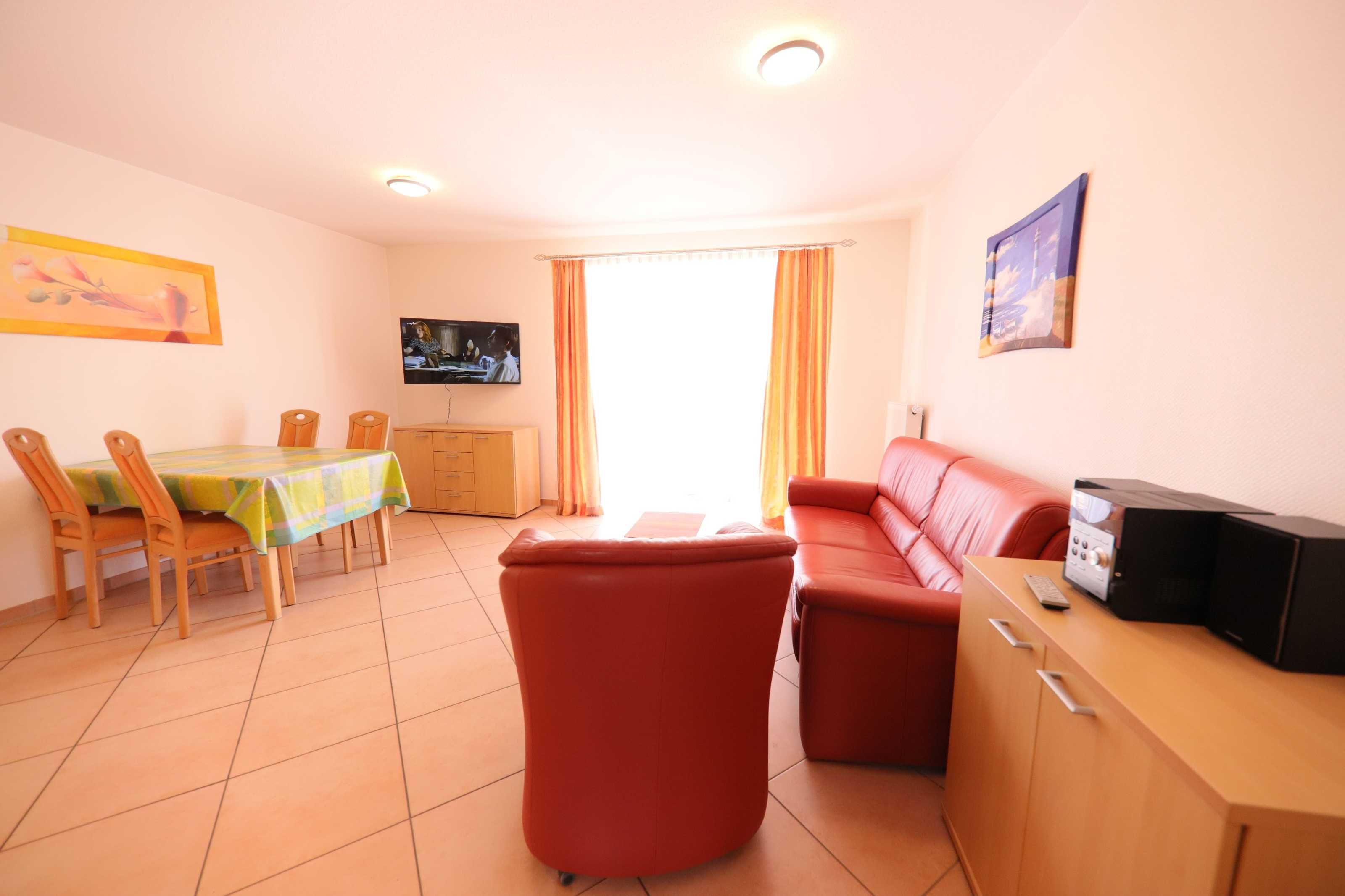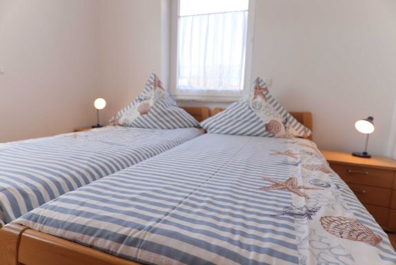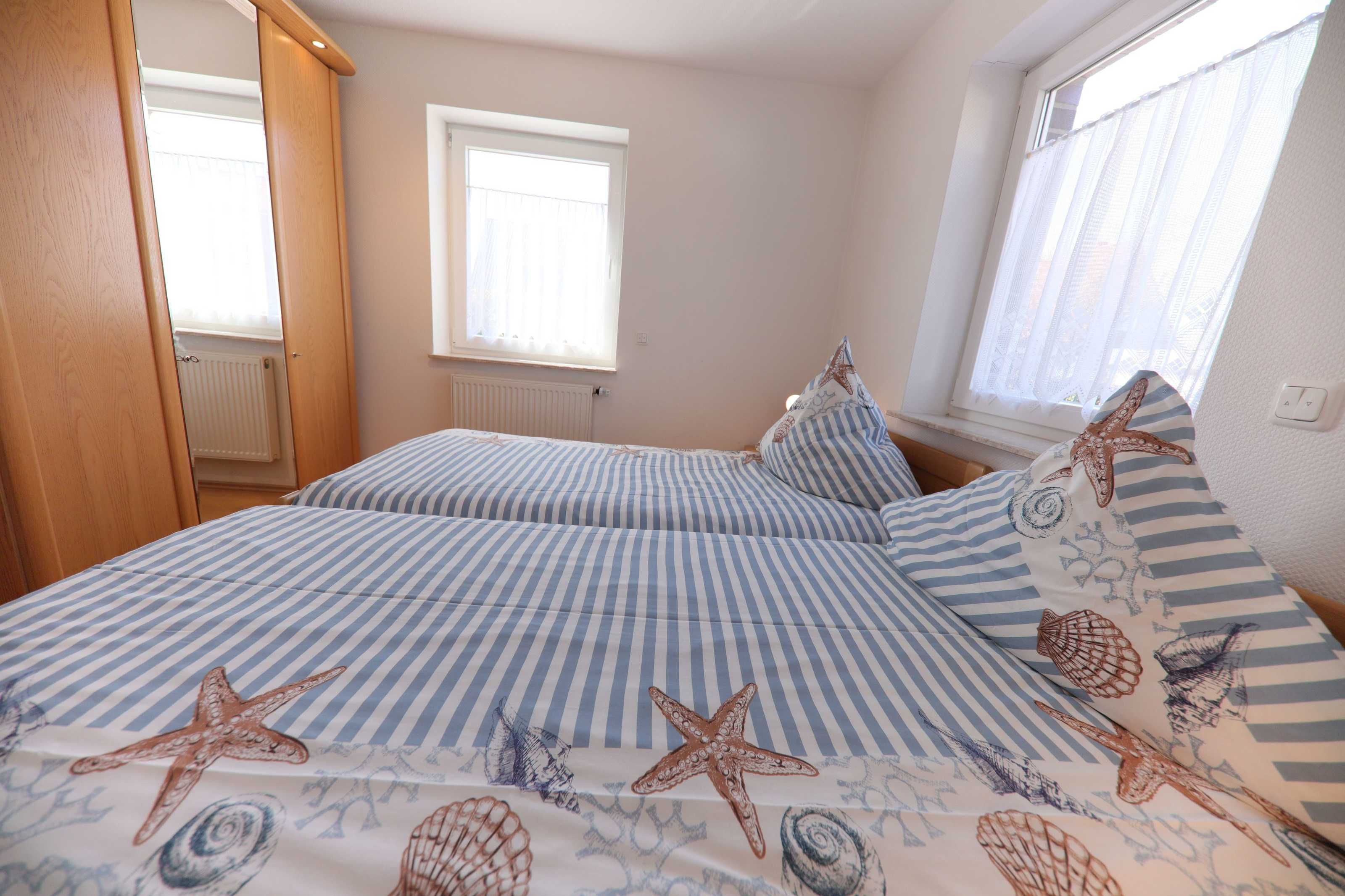 Suchen Sie Ruhe pur und möchten trotzdem nahe am Strand sein? Dann sind Sie hier an der richtigen Adresse! Genießen Sie Ihren Urlaub in einer liebevoll und modern eingerichteten Komfort-Ferienwohnung in sehr ruhiger Lage. Die Ortsmitte mit allen Einkaufsmöglichkeiten für den täglichen Bedarf, Cafés und Restaurants erreichen Sie zu Fuß in ca. 5 Minuten. Zum Strand sind es ca. 50m, zur Frieslandtherme ca. 60m und zum Kurmittelhaus ca. 100m. Die Unterkunft (ca. 56m²) ist für 4 Personen ausgestattet, Wohn-, Ess- u. Kochbereich: gemütliche Polstersitzgruppe, Fernseher und Radio/CD-Player, Essgruppe, Einbauküche, Herd, Backofen, Mikrowelle, Kühlschrank, kleiner Gefrierschrank, Geschirrspülmaschine, Kaffemaschine, Toaster, etc. komplett ausgestattet. Vom Wohn/Koch- und Essbereich gelangen Sie auf die Terrasse mit ansprechenden Gartenmöbeln. Beide Schlafzimmer wurden mit Doppelbett, Laminat und Schrank ausgestattet. PKW-Stellplatz direkt an der Wohnung und eigener Fahrradabstellraum. Nutzung zusammen mit der Wohnung im Obergeschoss: Waschmaschine und Trockner im Haus (kostenlose Nutzung); überdachter und windgeschützter Grillplatz mit gemauertem Grill im Garten; hinter dem Haus großer Garten zum Sonnen oder spielen für die Kinder.
