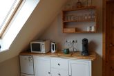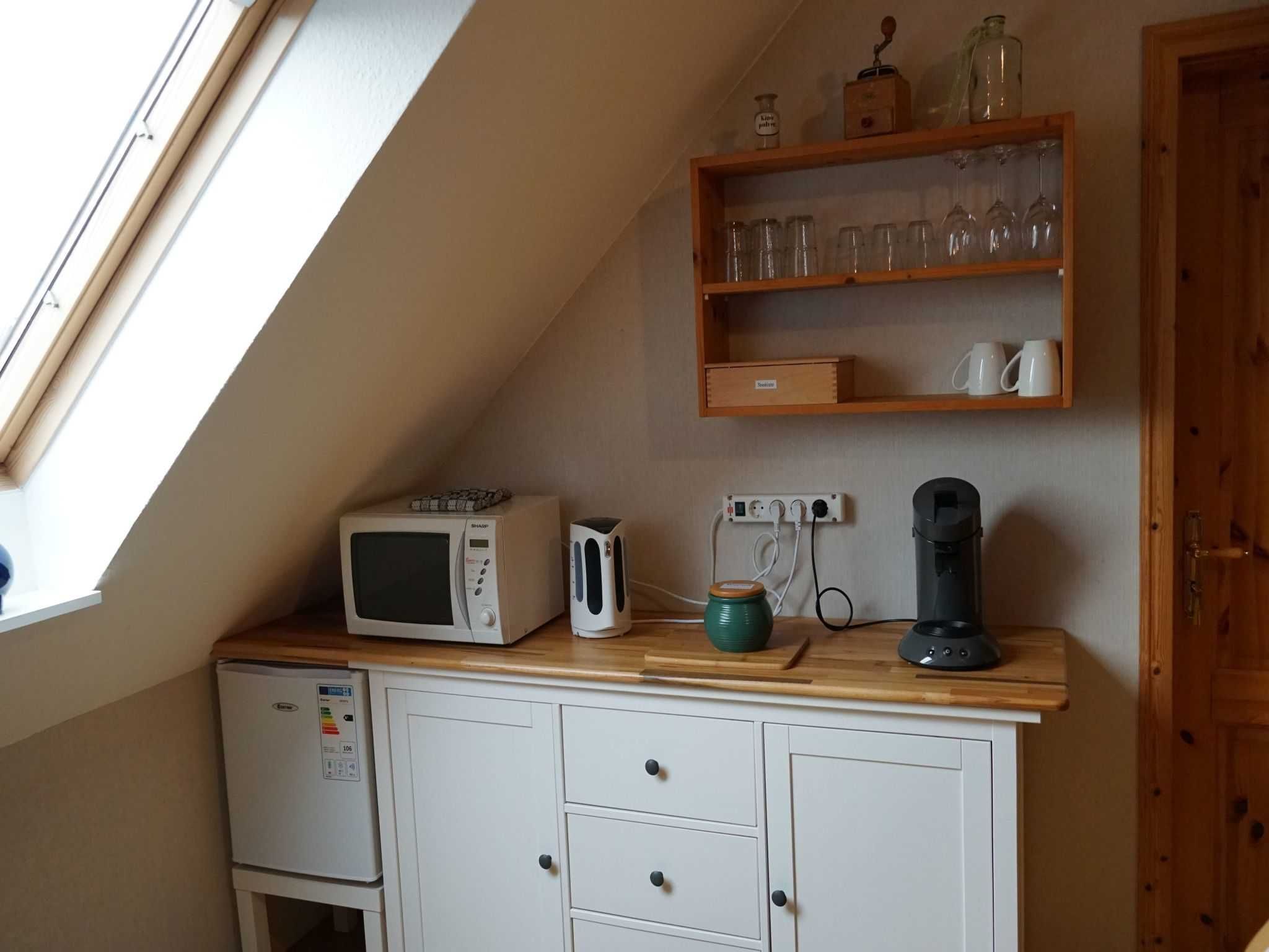 In der Teeküche stehen Küchenutensilien sowie ein Wasserkocher, Kaffeemaschine, Toaster und eine Mikrowelle zur Verfügung (keine Küche).