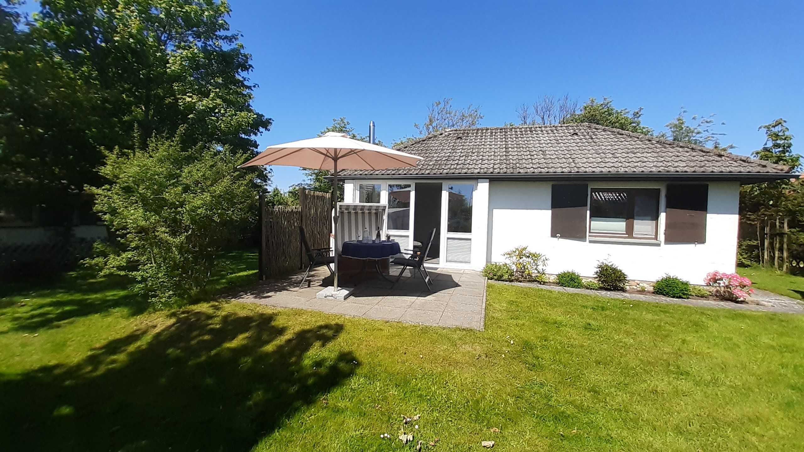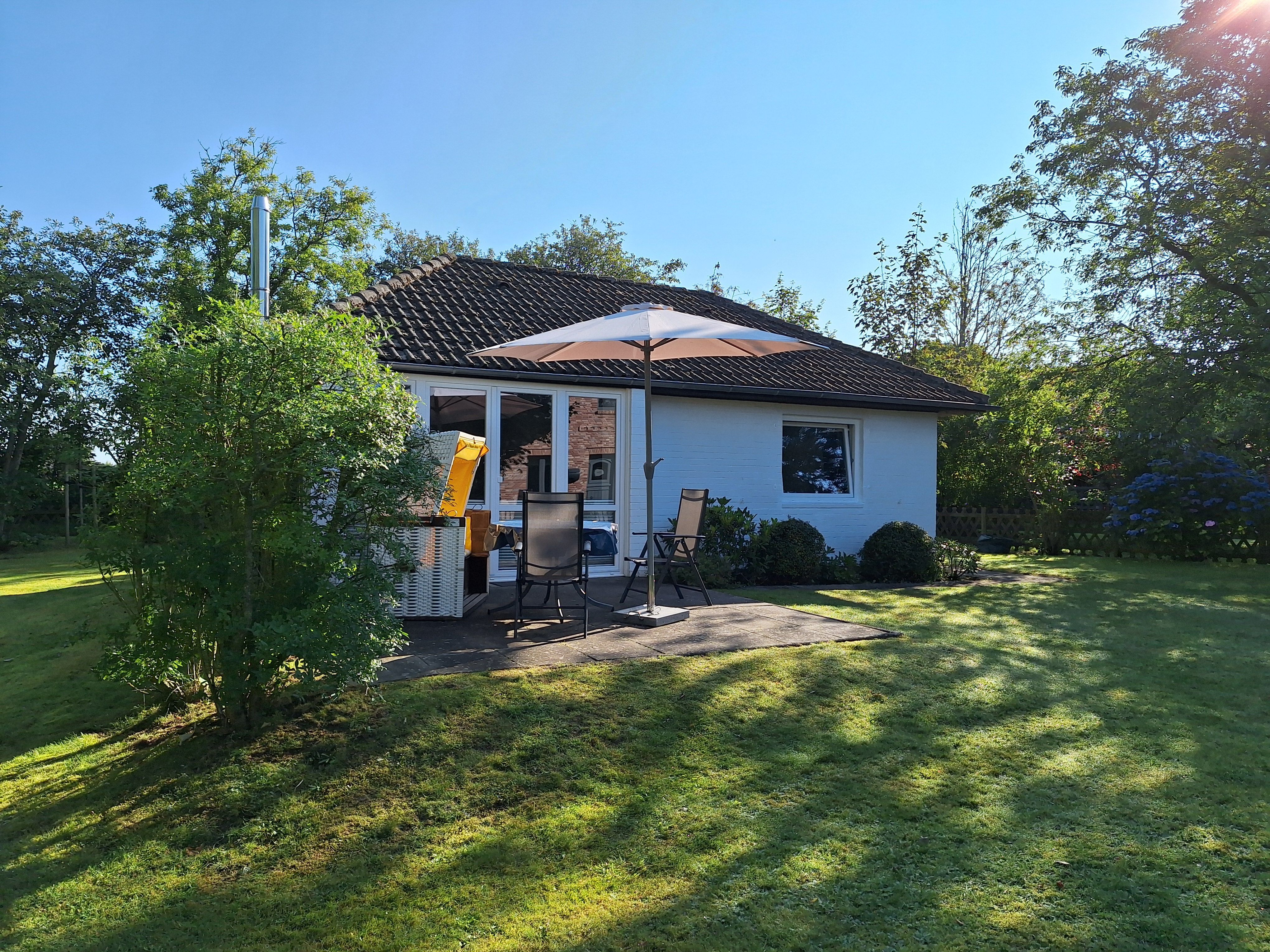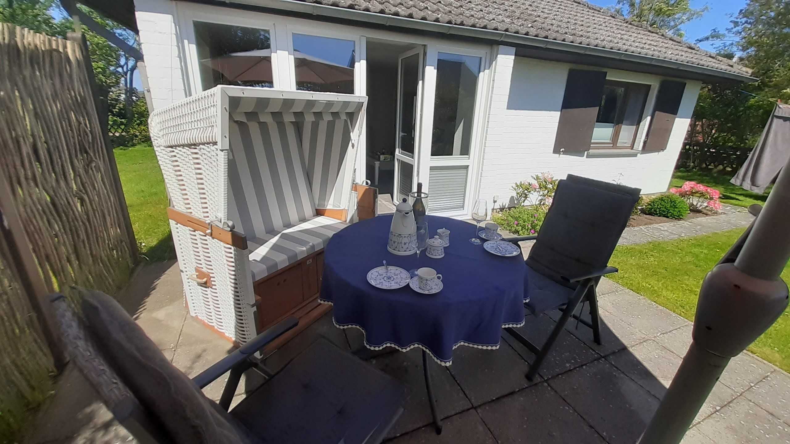 Im Außenbereich befindet sich ein Gartenhäuschen, welches als Unterstellmöglichkeit für E-Bikes genutzt werden kann. Abgerundet wird das Angebot mit einem Strandkorb auf der Terrasse, welcher von April bis Oktober genutzt werden kann, sowie mit einem PKW-Stellplatz auf dem Grundstück. Die Anfahrt erfolgt über die Straße Thingwai.