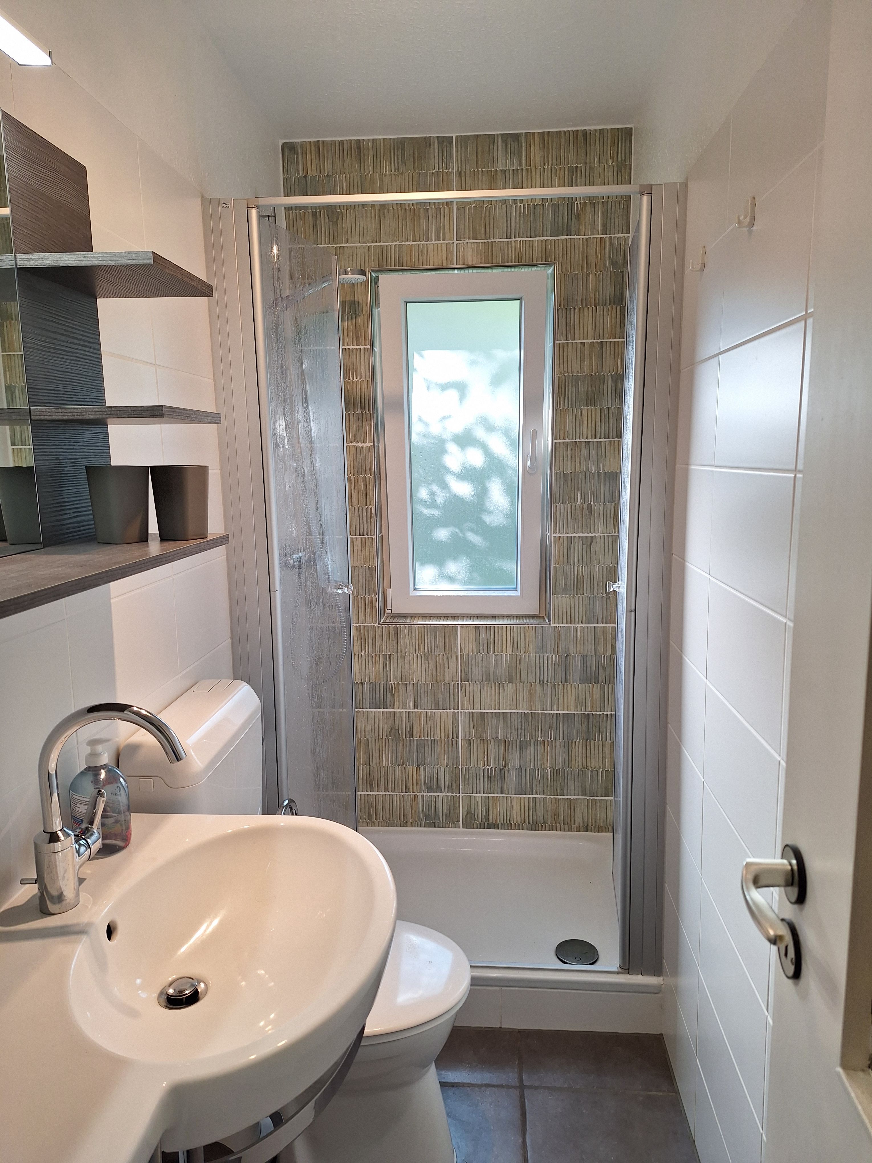 Das freistehende Ferienhaus erstreckt sich über eine Etage, das Erdgeschoss. Es verfügt über ein lichtdurchflutetes Wohnzimmer mit Ofen und Weinkühlschrank sowie direktem Terrassenzugang, eine separate Küche, ein Schlafzimmer mit Doppelbett (1,60 m breit) und ein Duschbad.