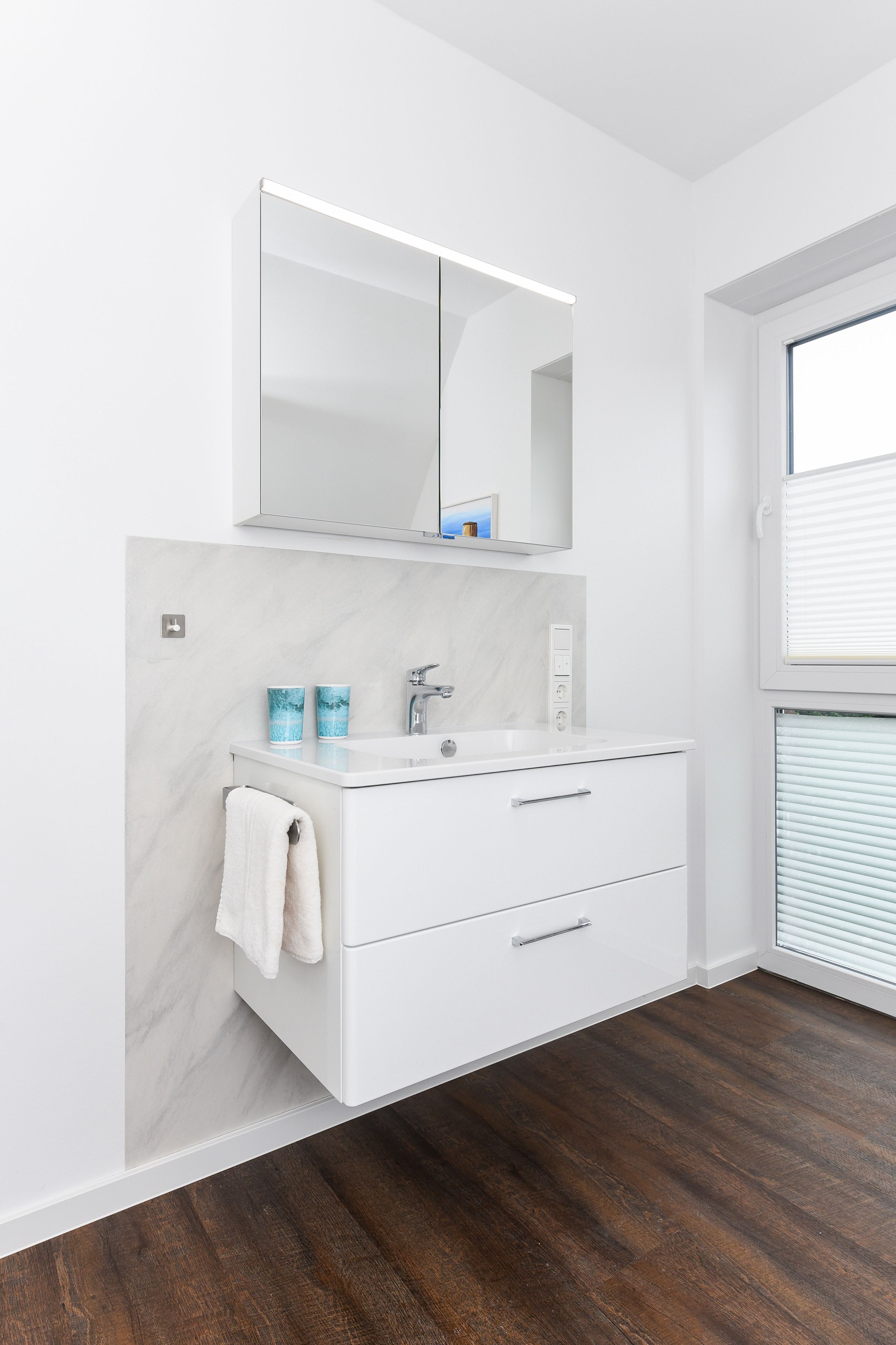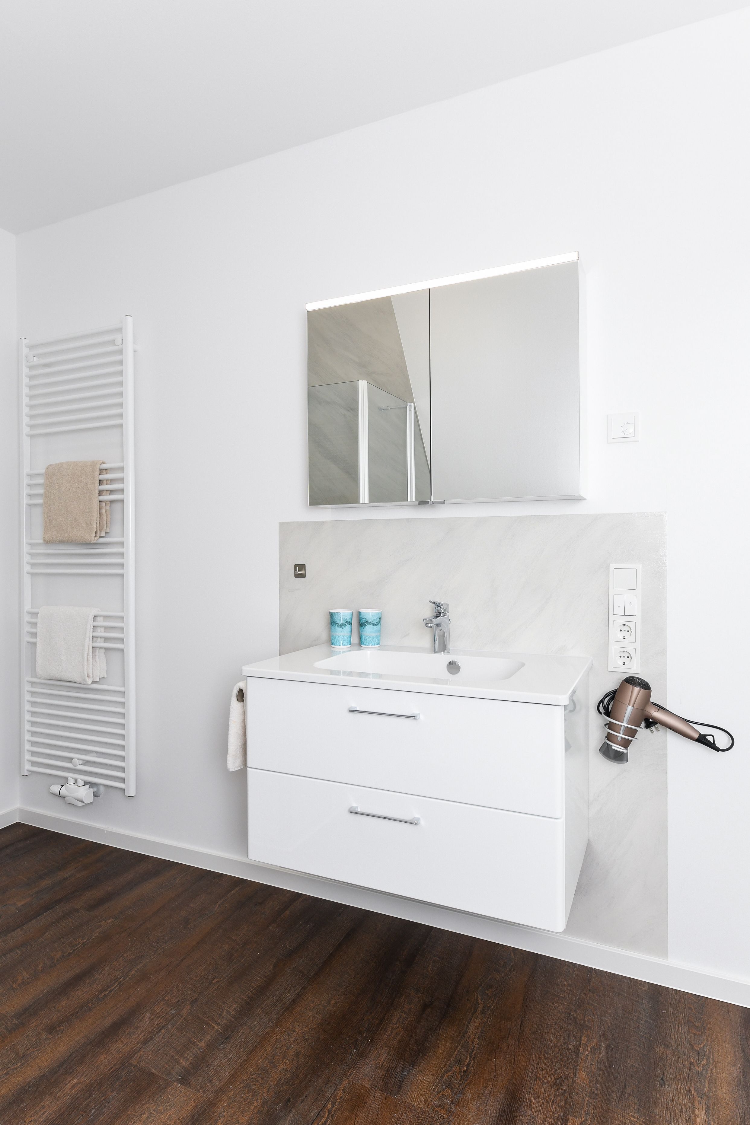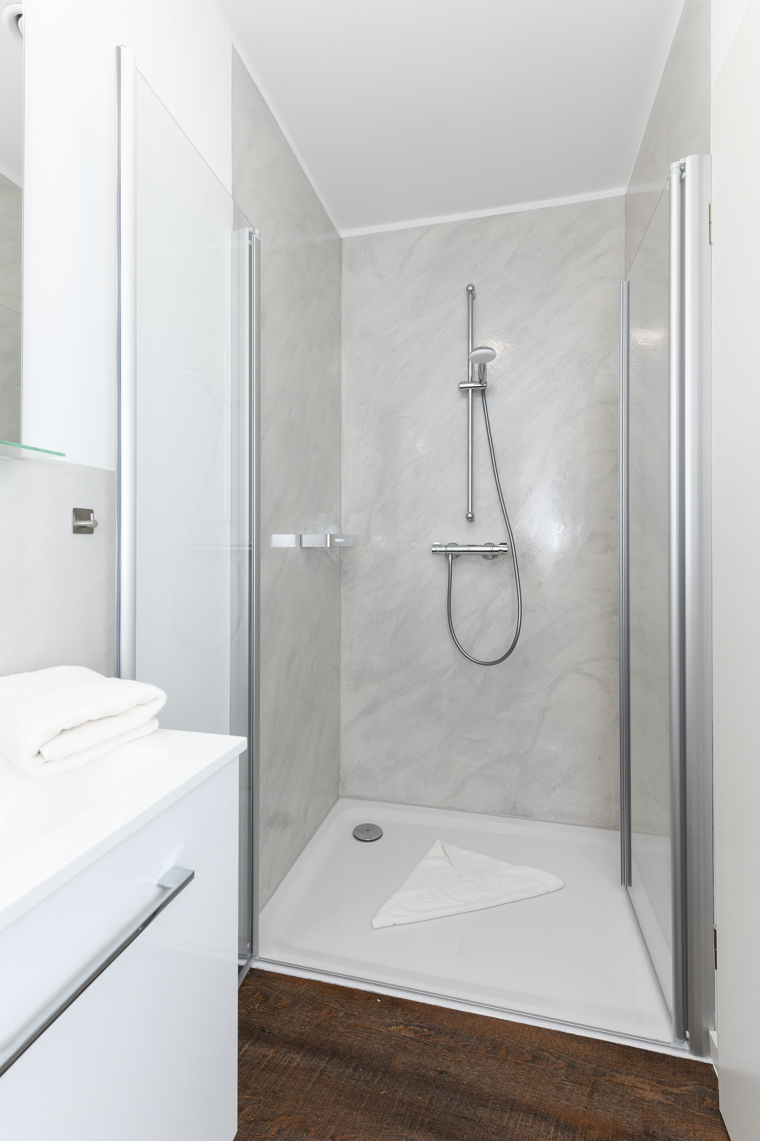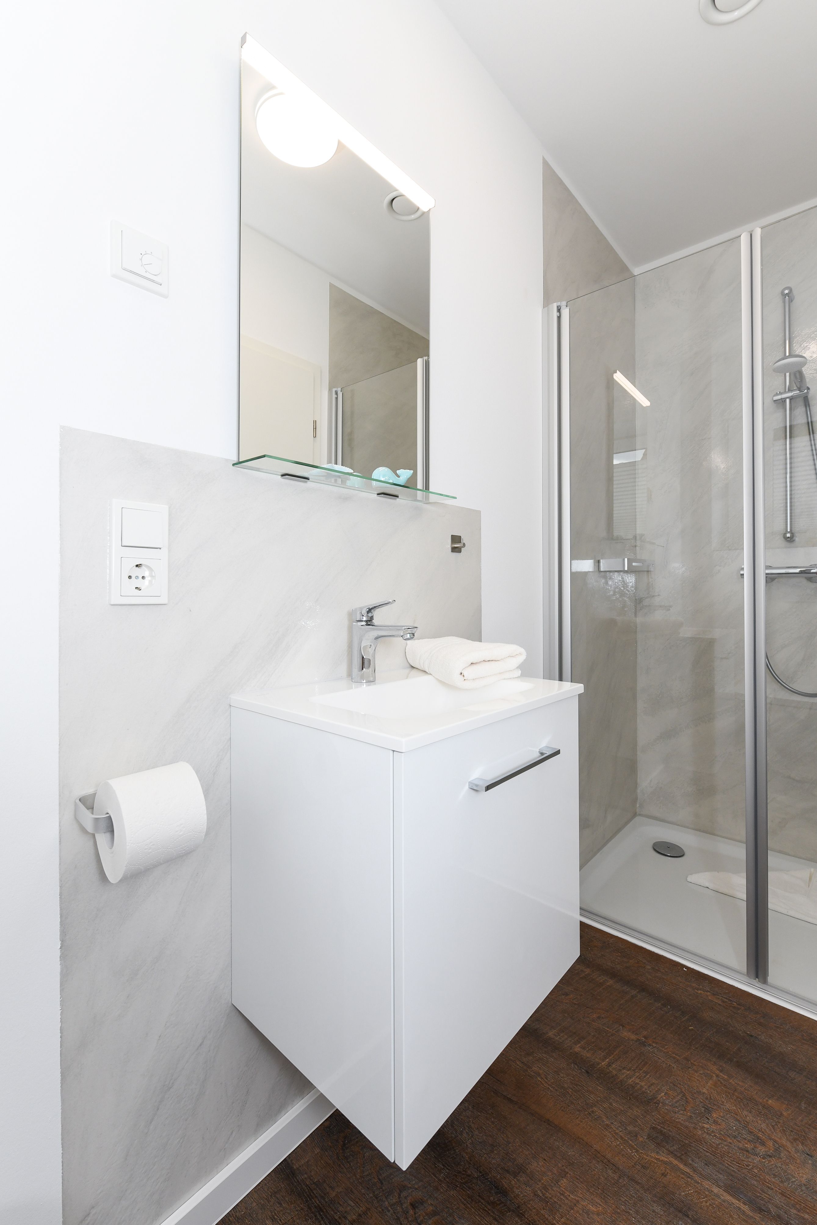 zweites Badezimmer mit Dusche, Waschtisch und WC