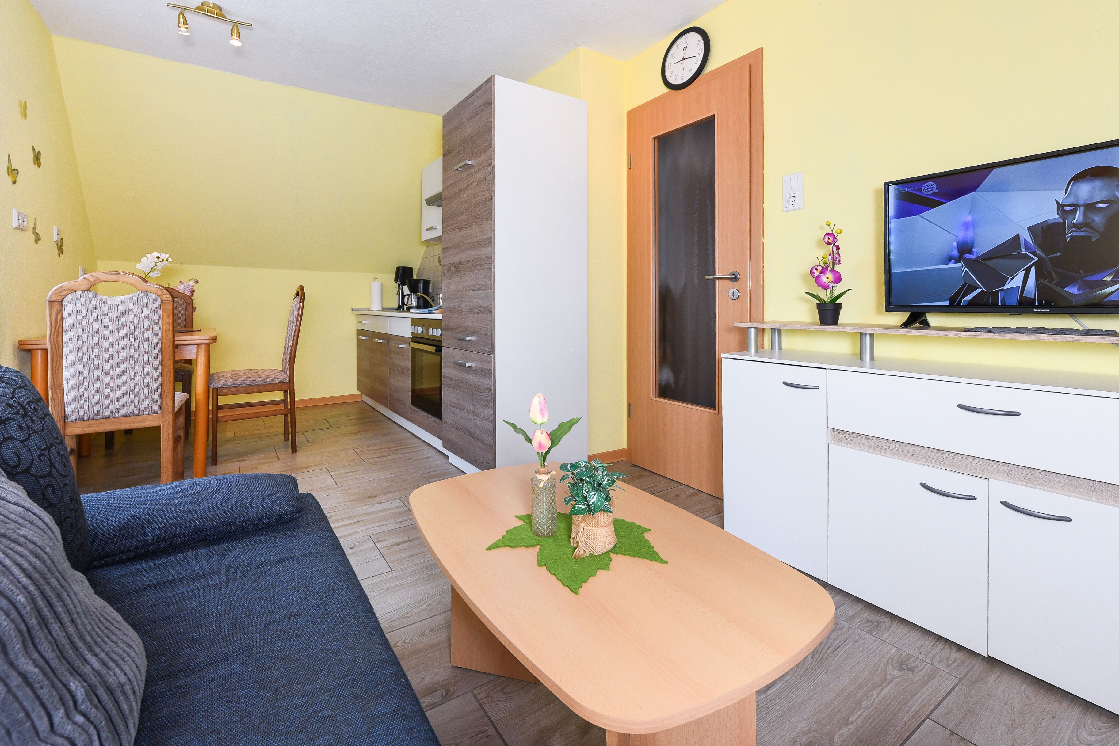 Die gemütlich eingerichtete Ferienwohnung ist ungefähr 50 Quadratmeter groß und bietet für 2 bis 3 Personen nebst zuzüglichem Kleinkind ausreichend Platz für Ihre schönste Zeit des Jahres – Ihren Urlaub.