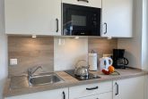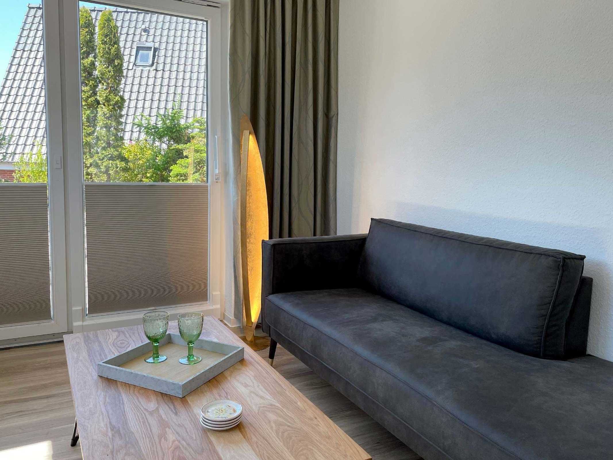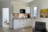 Unser großzügig ausgestattetes Zweiraum-Appartement mit eigener Terrasse im Erdgeschoss verwöhnt Sie mit viel Platz für einen entspannten Urlaub. Ein bequemes Doppelbett bietet echten Schlafkomfort. Im großen Sitzbereich können Sie herrlich entspannen. Für einen Tee oder Kaffee zwischendurch steht eine kleine Pantry-Küche bereit. Information und Unterhaltung erhalten Sie auf dem großen Smart-TV und das kostenlose WLAN verbindet Sie mit der digitalen Welt. Modernes Bad mit Dusche/WC und Fenster. Frühstück inklusive.