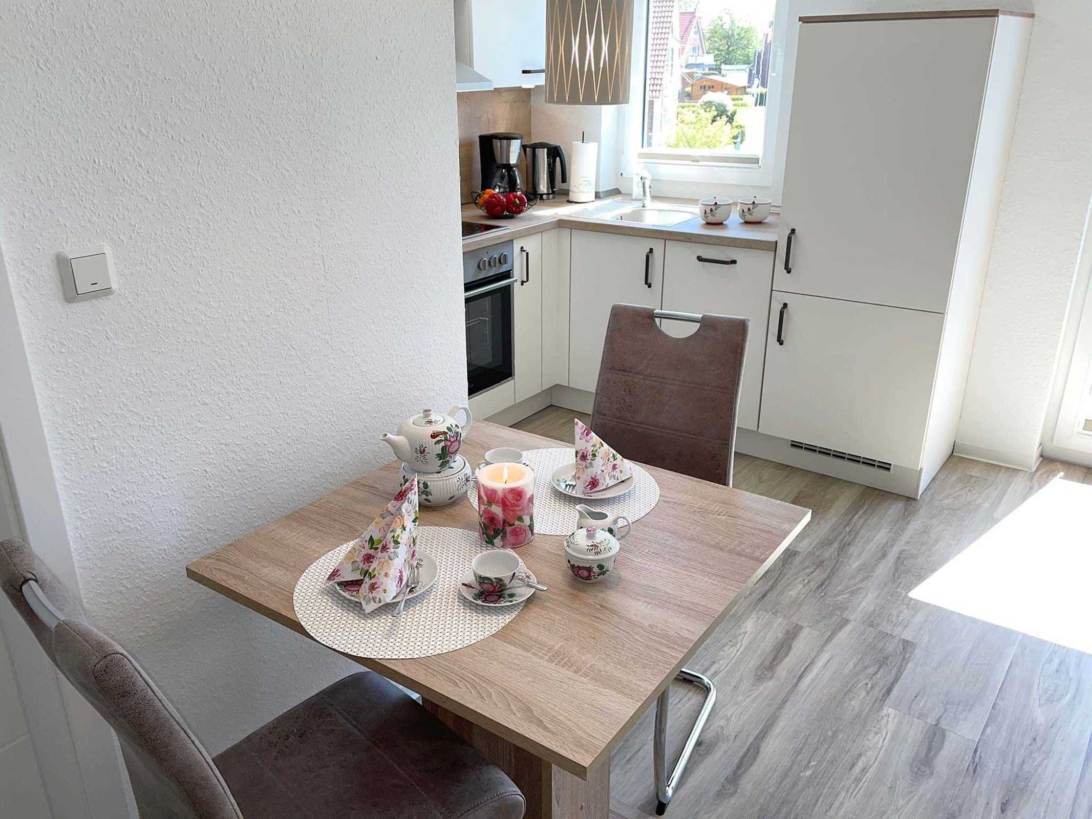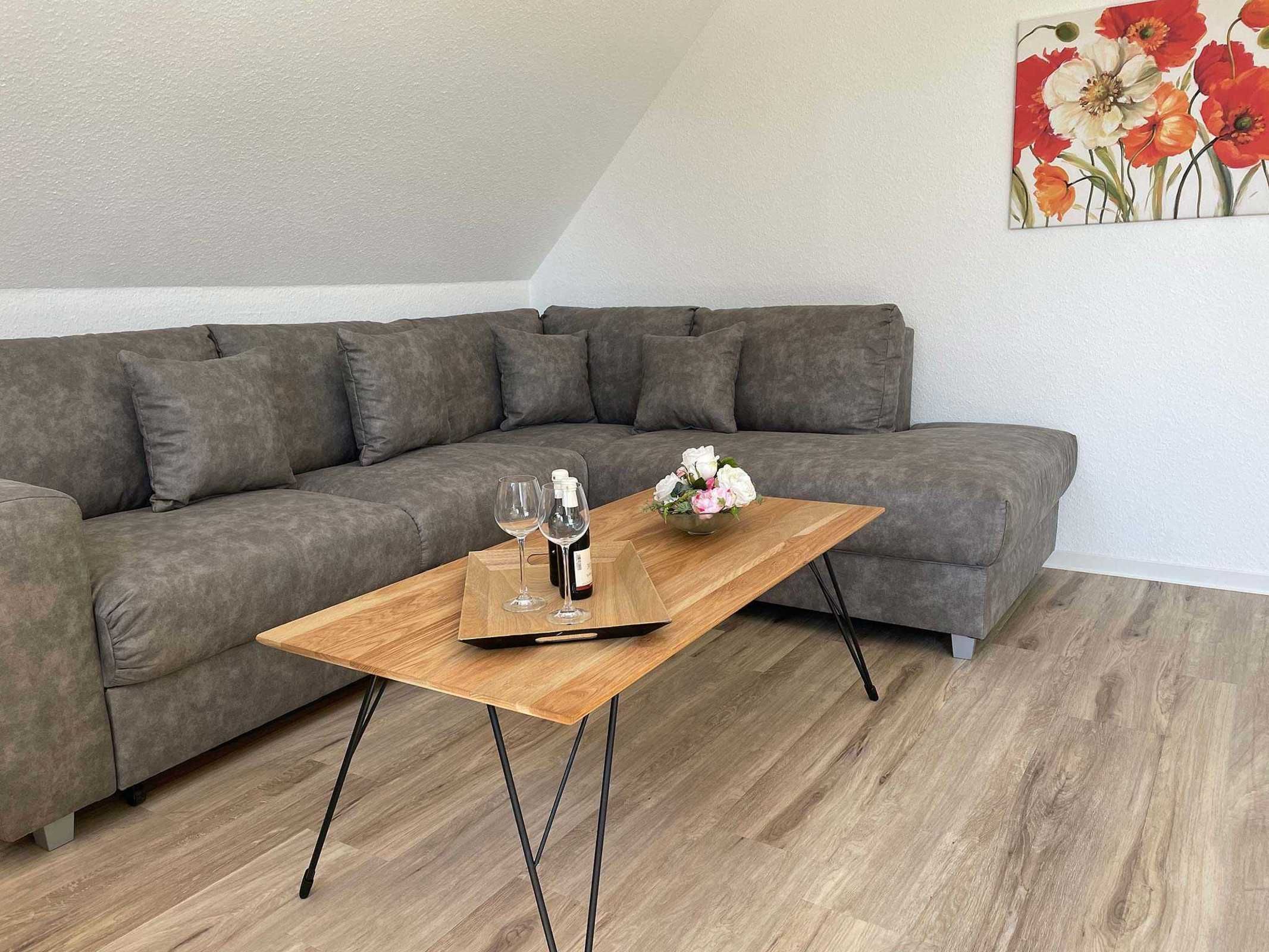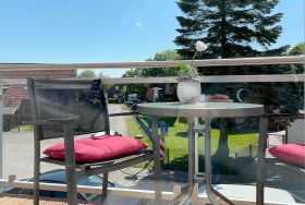 Unsere moderne Ferienwohnung mit Balkon im Obergeschoss bietet viel Platz für 2 Personen. Ein bequemes Doppelbett im separaten Schlafzimmer bietet echten Schlafkomfort. Im großen Sitzbereich können Sie herrlich entspannen. Mit der offenen Küchenzeile im Wohnbereich, inkl. Backofen und Spülmaschine, können Sie sich entspannt selbst versorgen. Information und Unterhaltung erhalten Sie auf dem großen Smart-TV und das kostenlose WLAN verbindet Sie mit der digitalen Welt. Modernes Bad mit Dusche/WC und Fenster. Frühstück inklusive.