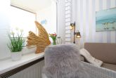 Das Bad spricht für sich selbst und besticht durch die großzügige Dusche mit einer Echtglaskabine. Weiterhin einem großen, beleuchtetem Spiegel, einem zusätzlichen, schwenkbarem Kosmetikspiegel mit Vergrößerung und einem Handtuchwärmer. Ein Echtholzregal für Handtücher und Kosmetik, sowie ein Fön runden diesem Raum ab.