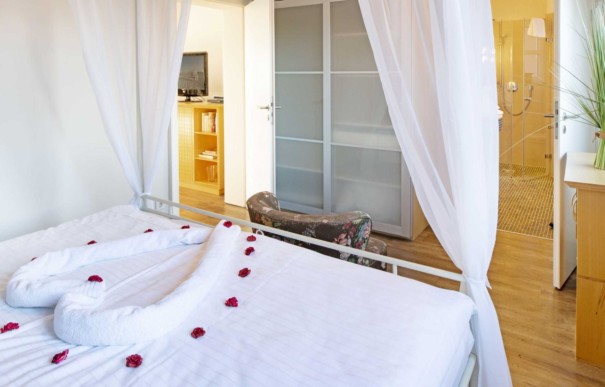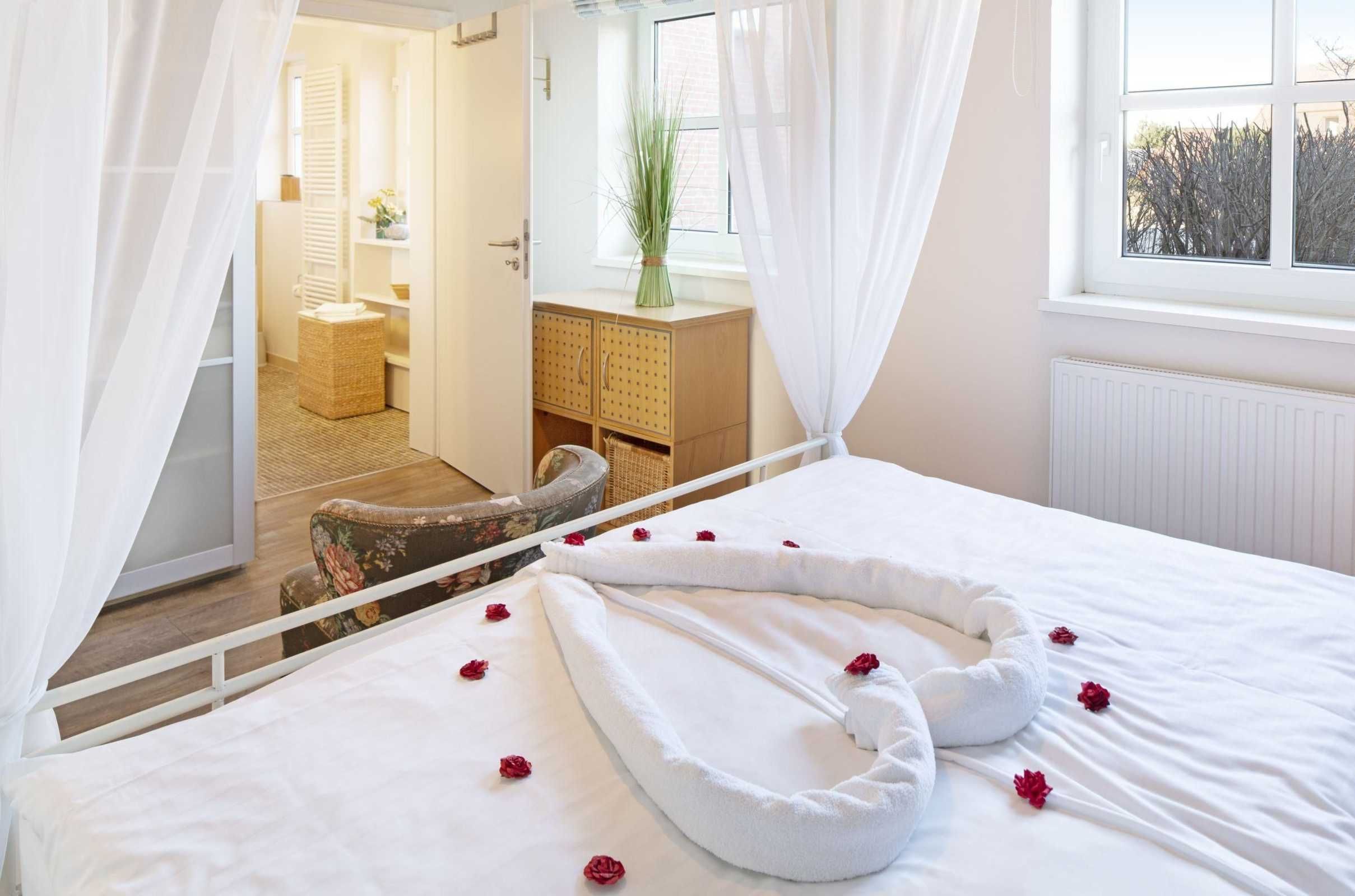 Wer es elegant und zeitlos mag, wird sich in unserem Apartment „Pure Wonne Mandö“ besonders wohlfühlen. Die Ferienwohnung ist mit 50 m2 für 2 Personen ausgelegt und bietet mit ihrem schön geschnittenen Wohn- und Essbereich den perfekten Rahmen für einen komfortablen Urlaub. Neben einer offenen Küche stehen ein separates Schlafzimmer mit Baldachin-Doppelbett sowie ein großzügiges Duschbad zur Verfügung. Je nach Witterung und Saison können zusätzlich die Gartenmöbel und Strandkörbe auf der Terrasse genutzt werden.