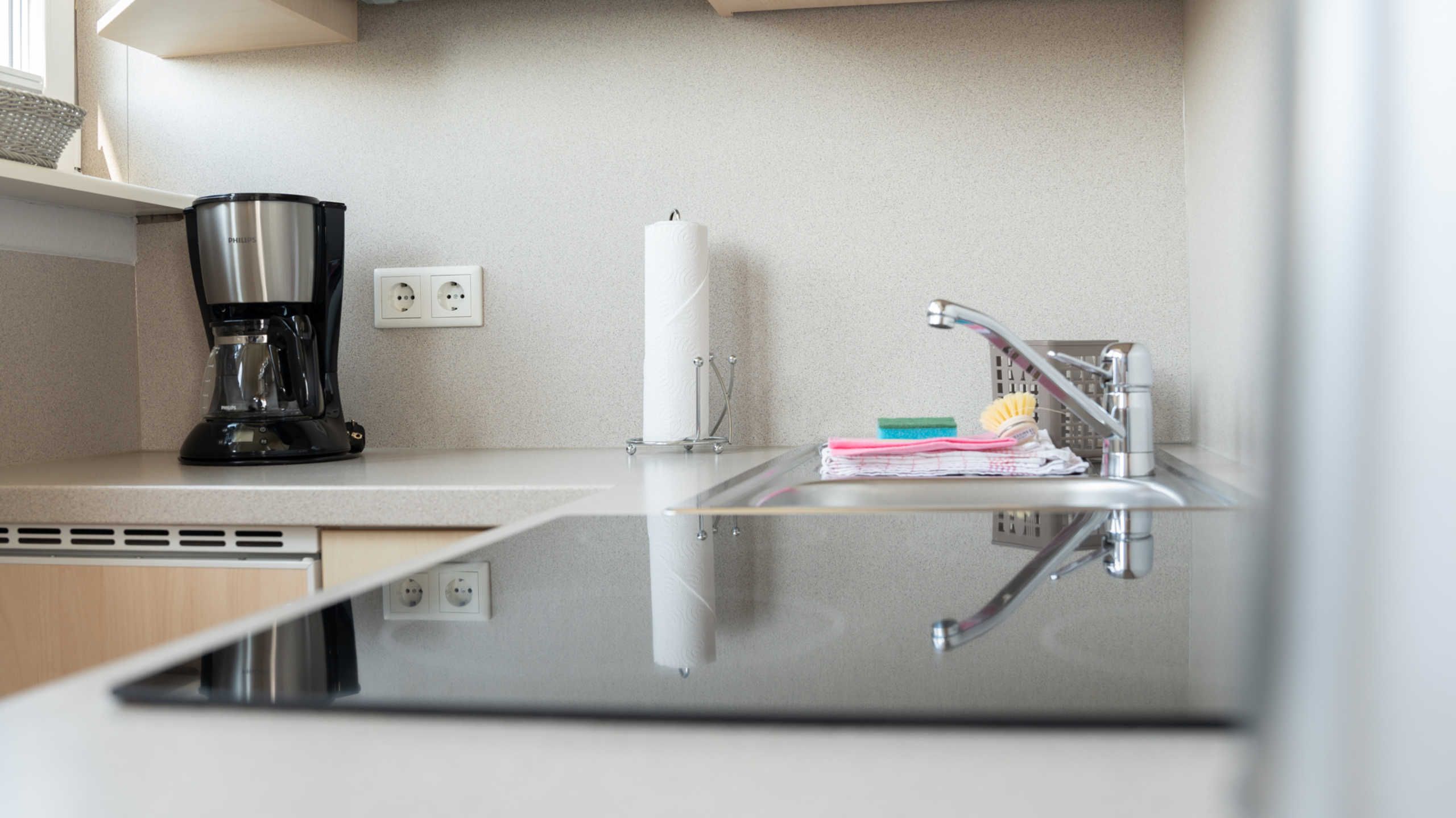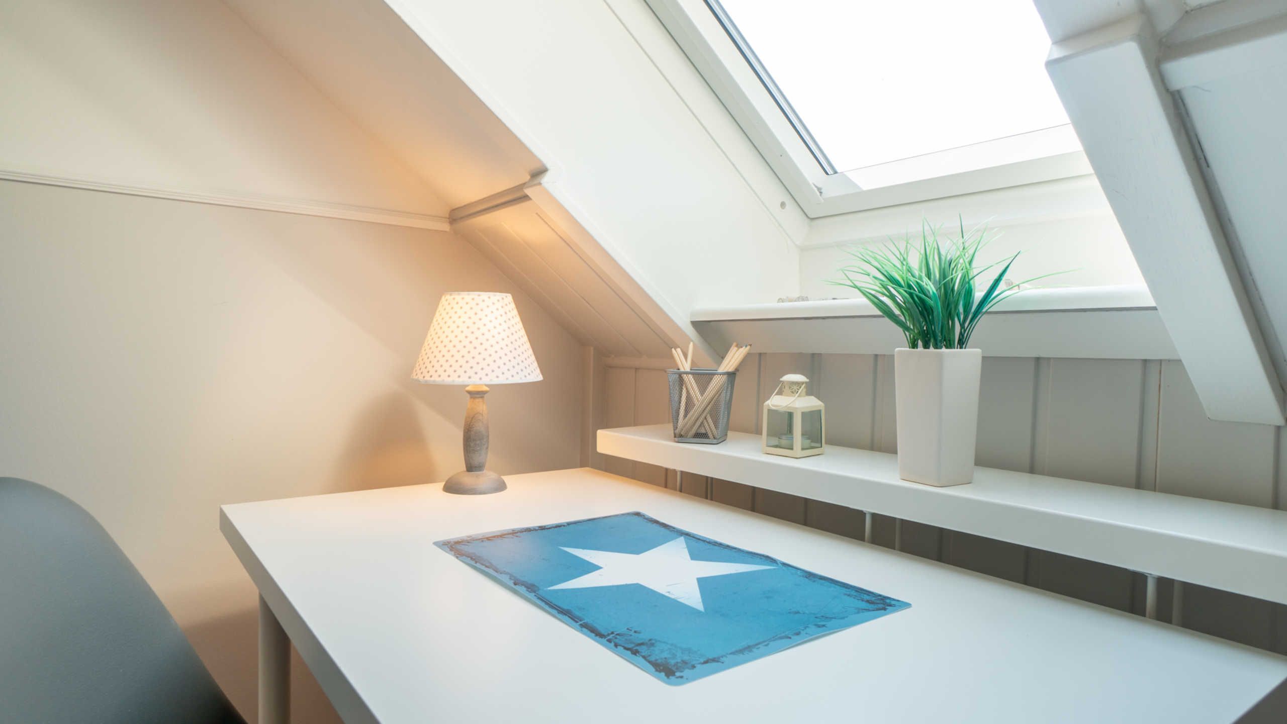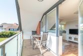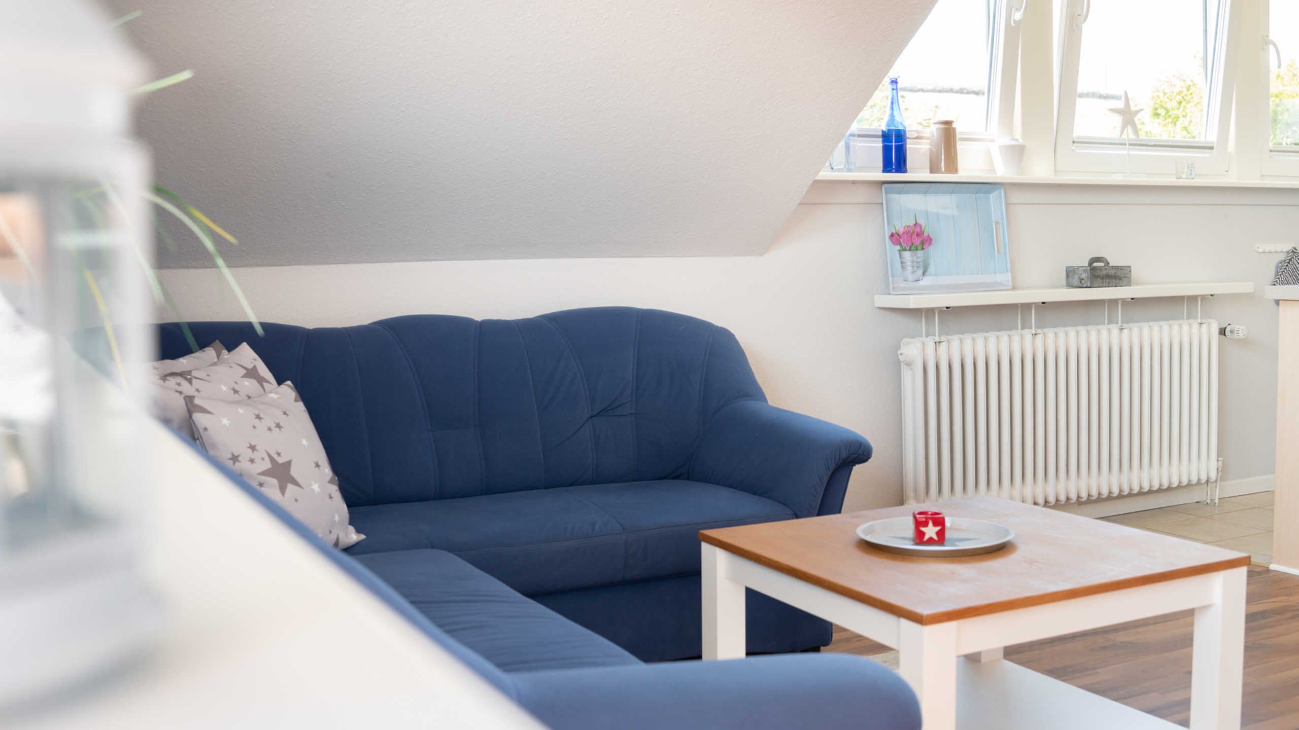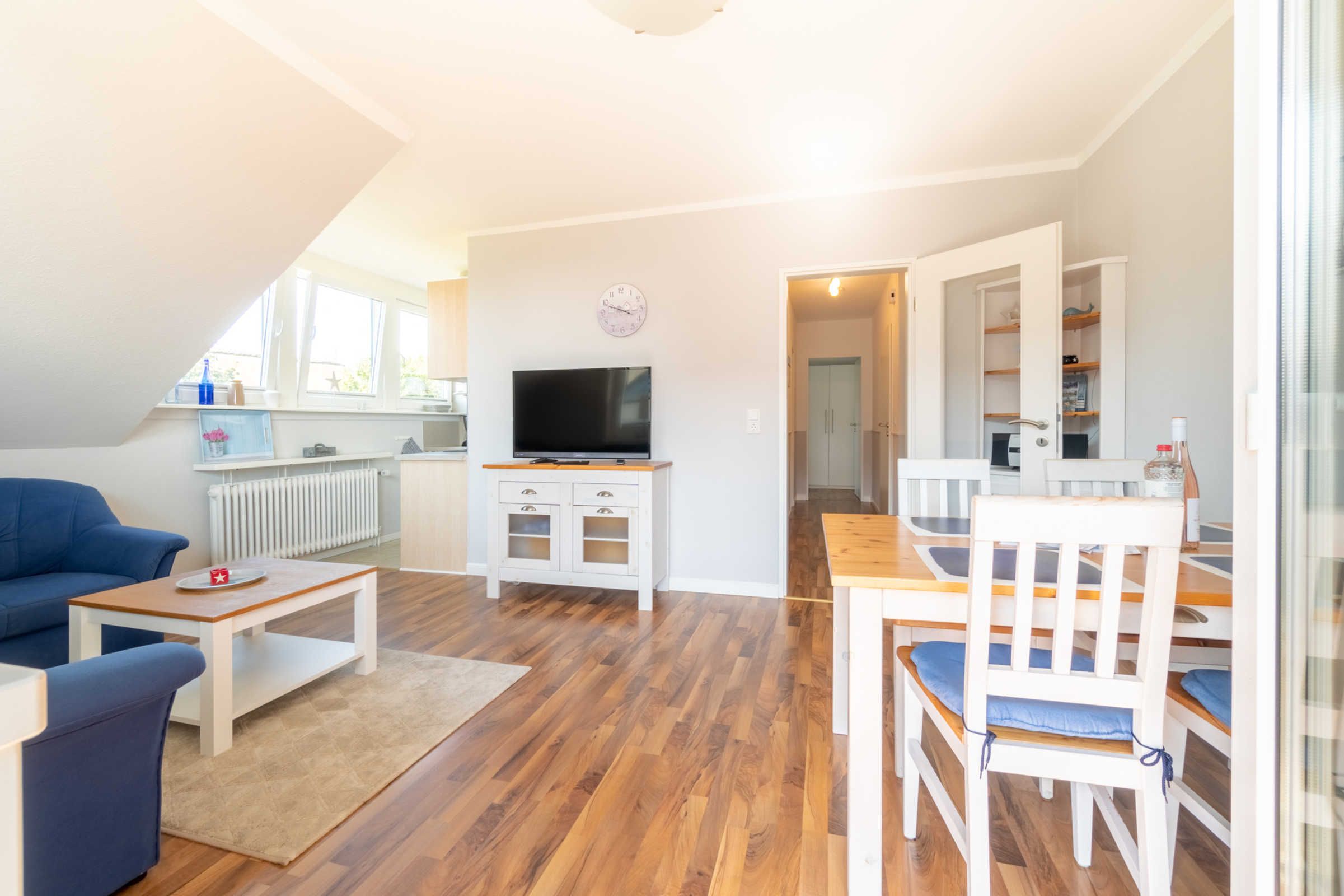 Die Wohnung liegt im Obergeschoss rechts und bietet Platz für bis zu 2 Personen mit Kleinkind. Sie hat einen Zugang zum Westbalkon.