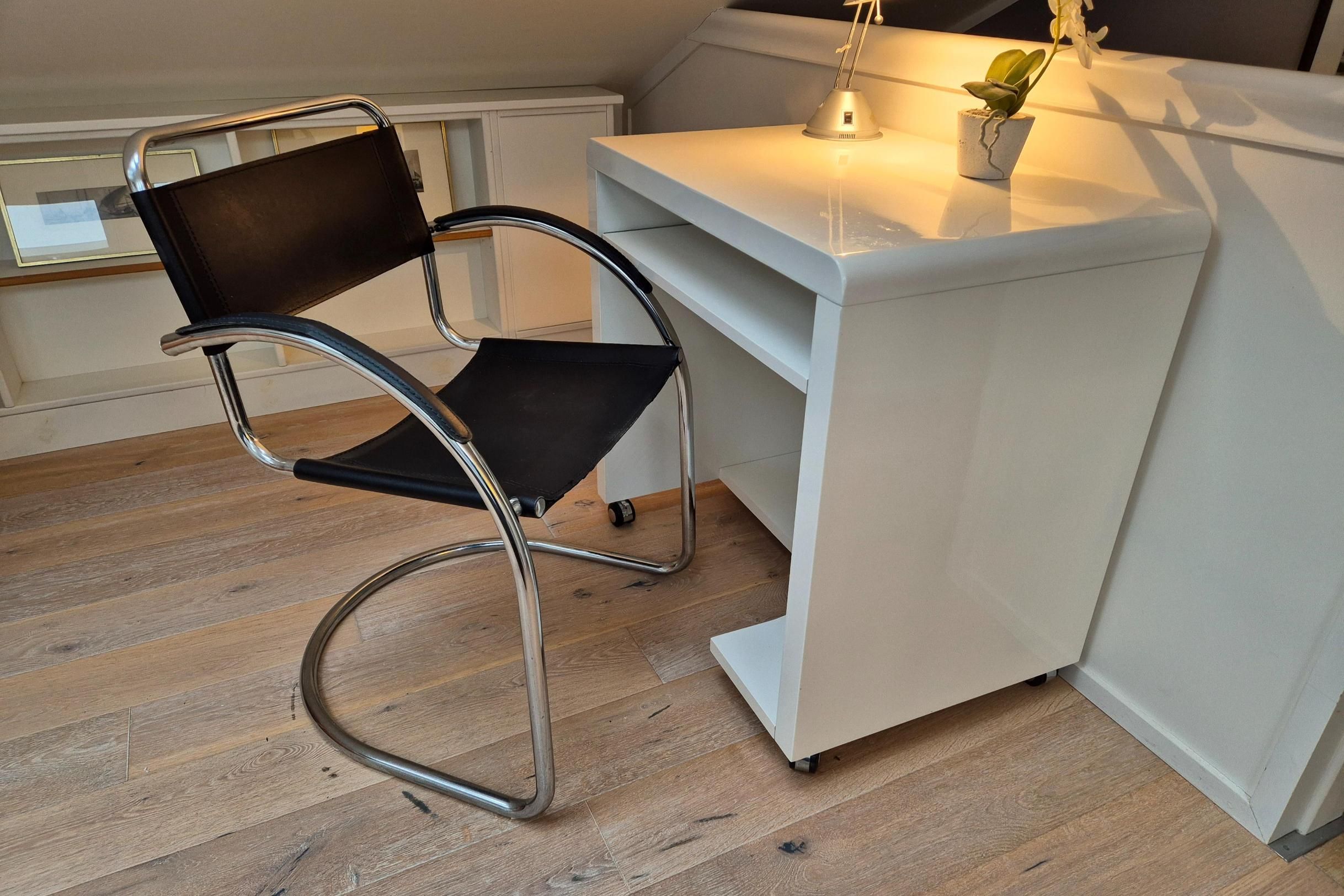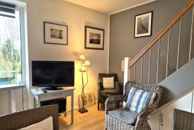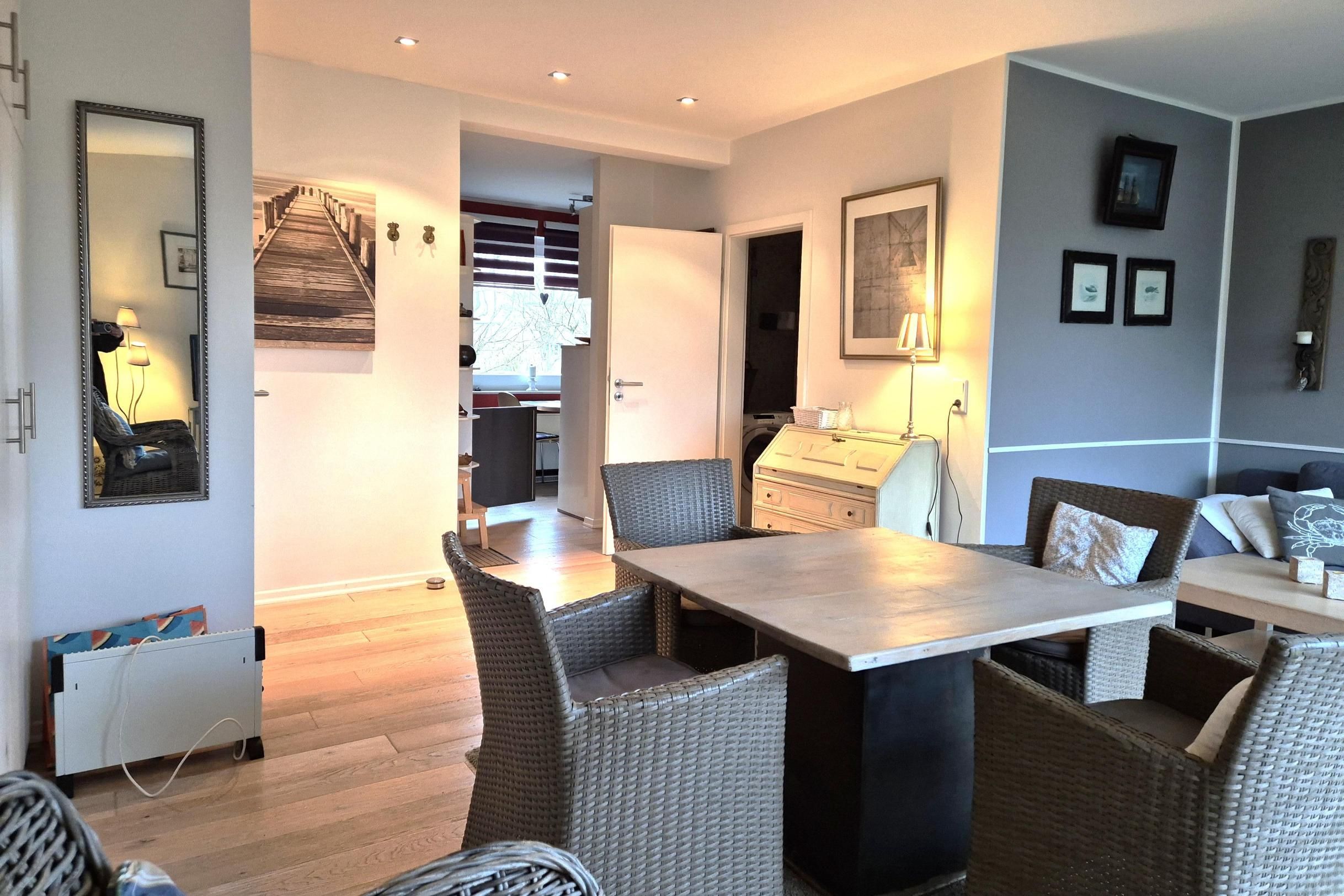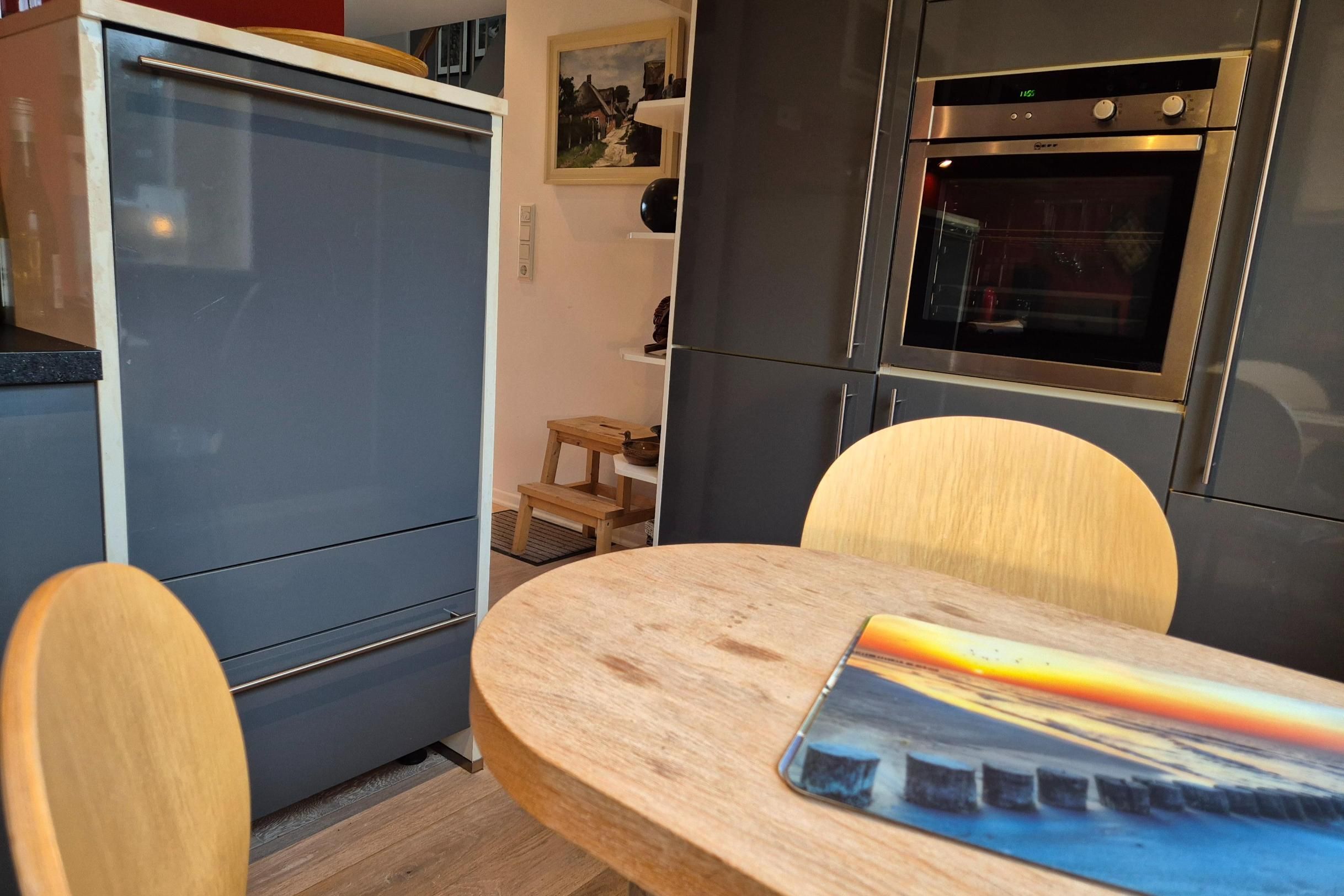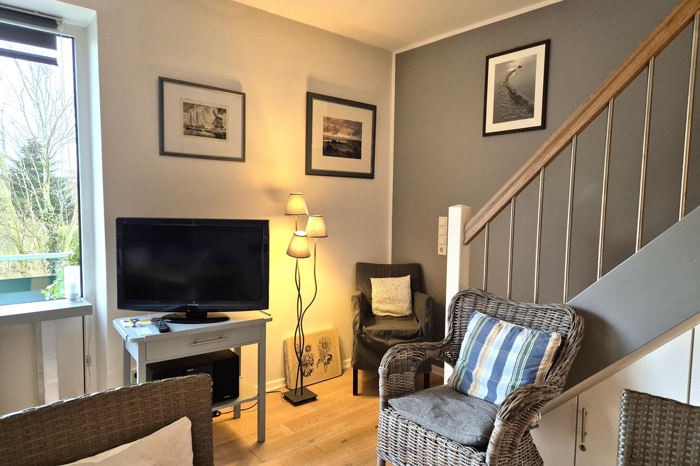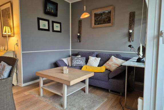starten Sie in den Urlaub auf der Insel Föhr in unserer wunderschönen und liebevoll ausgestatteten Ferienwohnung für zwei Personen in Midlum, In de Marsch 73.Die Wohnung im Maisonette Stil ist im Obergeschoss mit einem Schlafzimmer mit sechs großen Veluxfenstern und separatem WC ausgestattet.