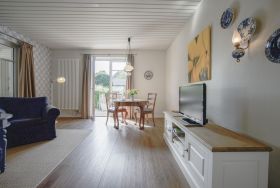 Ein helles, freundliches Appartement mit Sonnenterrasse und Balkon im EG und Blick in den schönen Naturgarten, Duschbad und perfekt für bis zu 4 Personen, die es friesisch freundlich haben wollen - was kann man sich für einen schönen Nordsee-Urlaub mehr wünschen.