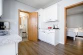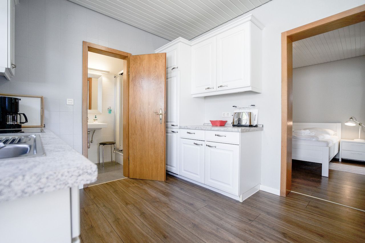 Bei unserem Pesel handelt es sich um eine Einliegerwohnung zu ebener Erde für zwei Personen, bestehend aus Wohnzimmer, Schlafzimmer, Küche und Duschbad. Vom Wohnzimmer gelangst du direkt auf die nach Süden gelegene Loggia sowie die Westterrasse. Die Einbauküche ist u.a. mit einem Geschirrspüler sowie einem Herd mit Ceranfeld und Backofen ausgestattet. Komplettiert wird dies durch eine Kaffeemaschine, einen Wasserkocher und einen Toaster. Vor kalten Füßen musst du keine Angst haben - Fußbodenheizungen und Heizkörper sorgen für wohlige Wärme. Das Schlafzimmer ist mit einem Doppelbett ausgestattet. Waschmaschine und Trockner befinden sich in unserem Serviceraum. Du kannst diese gegen ein geringes Entgelt nutzen. Wir bitten um dein Verständnis, dass es sich bei dem Pesel um eine Nichtraucher- und haustierfreie Ferienwohnung handelt. Kostenloses W-Lan sowie ein hauseigener Parkplatz stehen dir zur Verfügung.