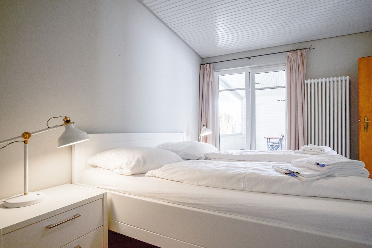 Die Ferienwohnung befindet sich zentral am Süderhafen auf Nordstrand und bietet einen geschützten Ort für Ihren Nordsee-Retreat.