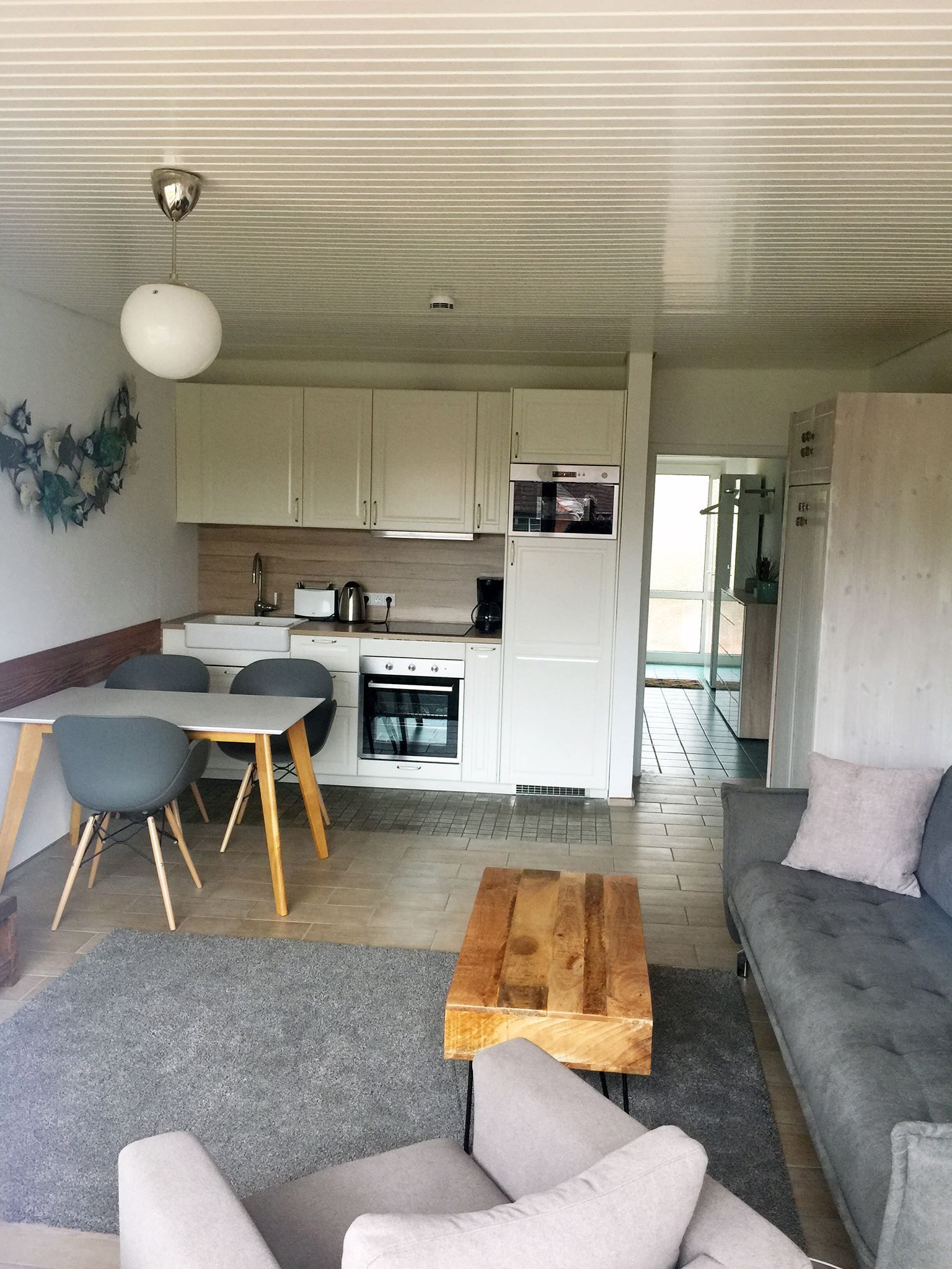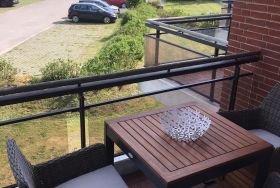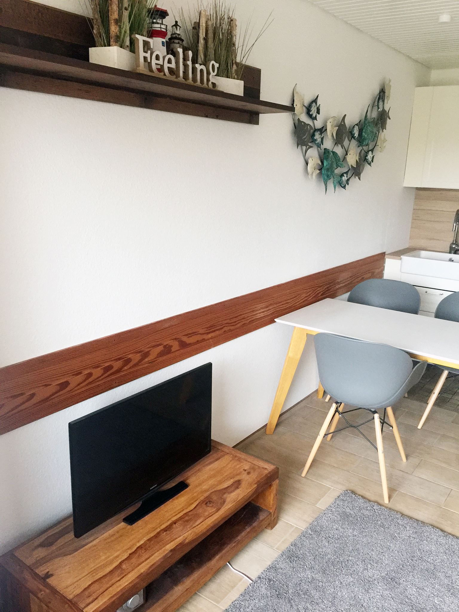 Wohnung Am Deich 1 Stilvolle gemütliche Wohnung in Strandnähe. Zwischen Wald und Strand wohnen Sie auf exklusiv gemütlichen 42 qm. Bitte schön: Schlafen Sie im stilvollen Dorma Vita Massivholzbett aus umweltfreundlicher Produktion und auf bequemen Schlaraffia Matratzen für vollendeten Schlafkomfort und genießen Sie die Entspannung und Ruhe. Bereiten Sie in der gut ausgestatteten Küche im Landhausstil ein leckeres Frühstück zu und stärken sich indoor oder auf dem Balkon für den Tag. Nach einem Tag am Strand heißt es heimkommen und wohlfühlen. Das stilvoll eingerichtete Wohnzimmer lädt Sie im gemütlichen Ambiente zum gepflegten Entspannen ein. Für einen guten Film, ein spannendes Buch oder ein aufregendes Spiel ist gesorgt. Oder Sie genießen einfach nur die himmlische Ruhe. Wir wünschen Ihnen einen wundervollen Urlaub mit ganz viel Erholung. Pkw-Stellplatz Nr. 24 auf dem Grundstück. Es ist nur ein Haustier gestattet, welches kostenpflichtig angemeldet werden muss