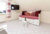 Hier warten vier freundlich eingerichtete und gut ausgestattete, gemütliche Ferienwohnungen auf unsere Gäste und ihre Kinder. Die Wohnungen sind ungefähr 40 bis 55 Quadratmeter groß und bieten genügend Platz für zwei bis fünf Personen oder zwei bis vier Personen nebst zusätzlichem Kleinkind.