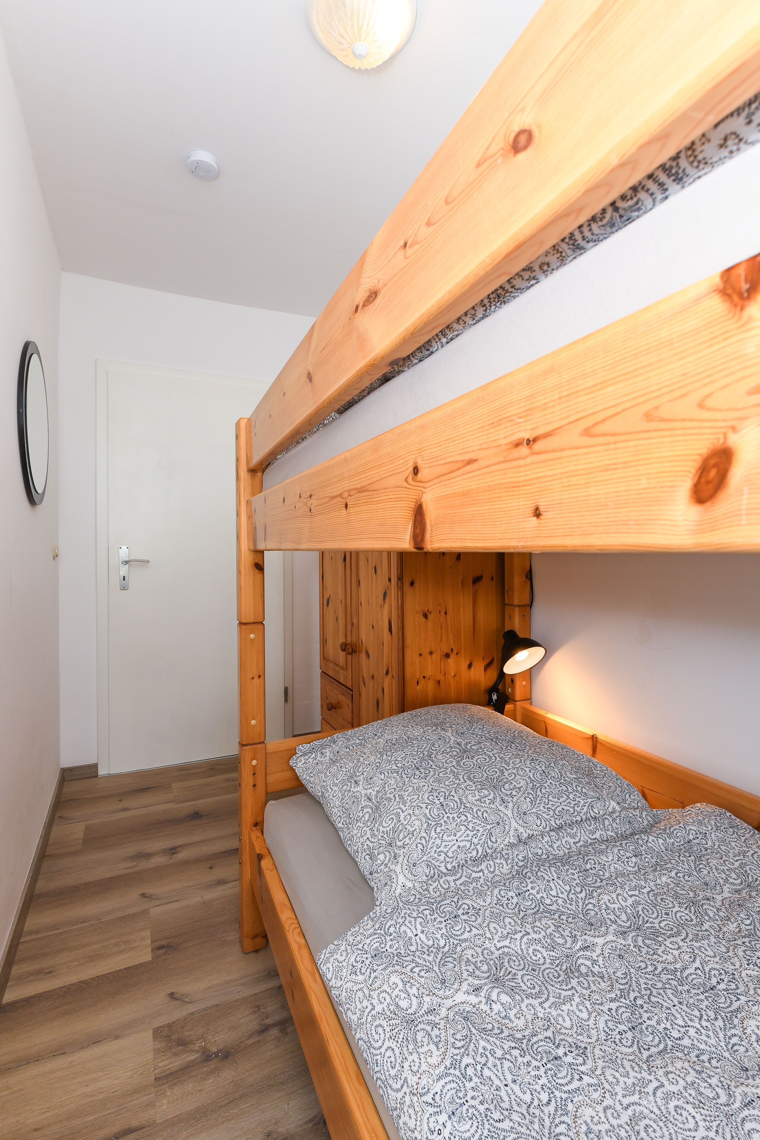 Größe ca. 55 Quadratmeter, Wohnraum mit integrierter Küche und mit Schlafmöglichkeit, Schlafzimmer, zweites, separates Schlafzimmer/Kinderzimmer, Badezimmer mit Dusche, Waschtisch und WC, Obergeschoss, optimal für 2 bis 5 Personen und zusätzlich ein Kleinkind.