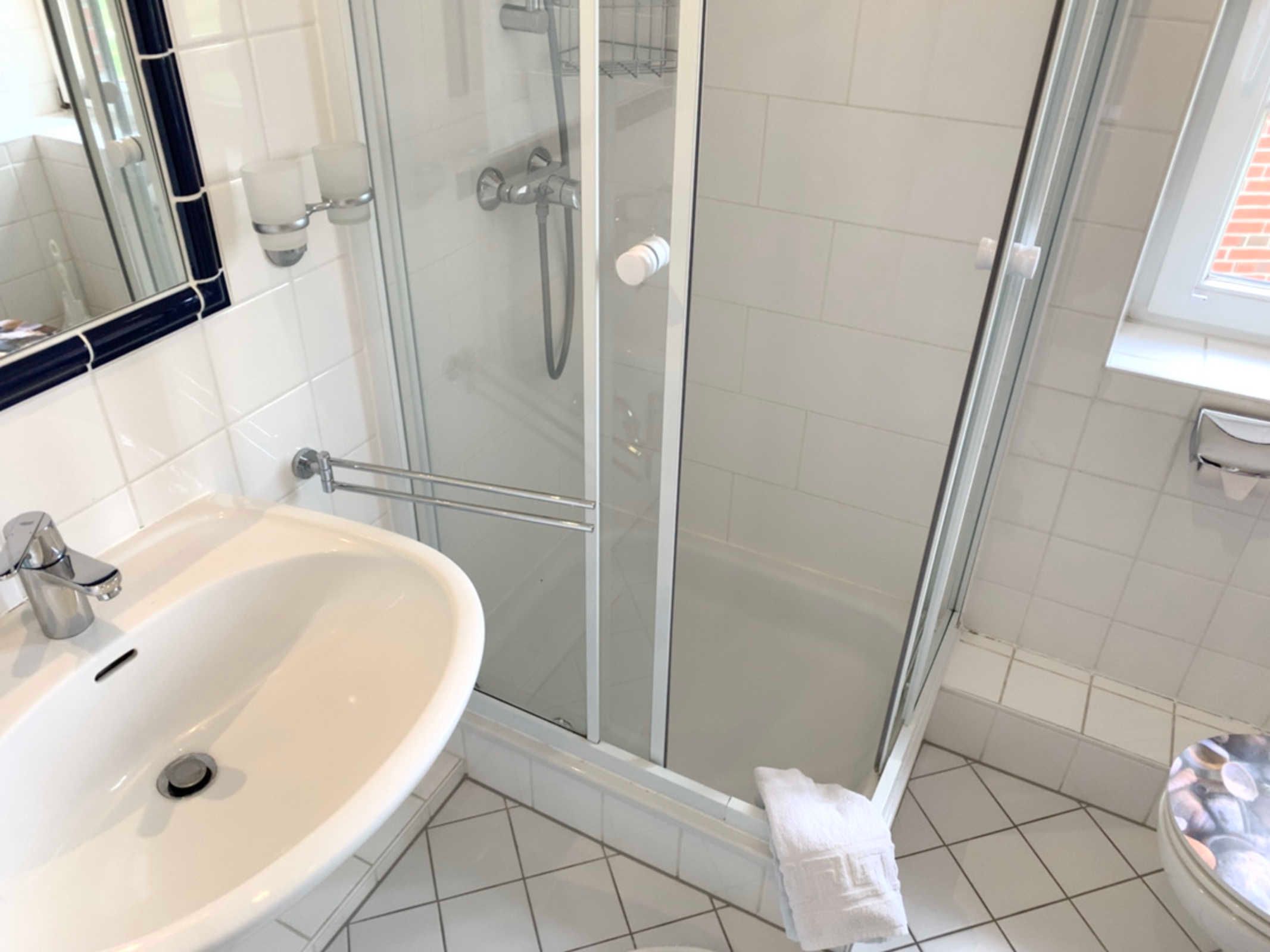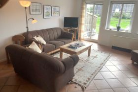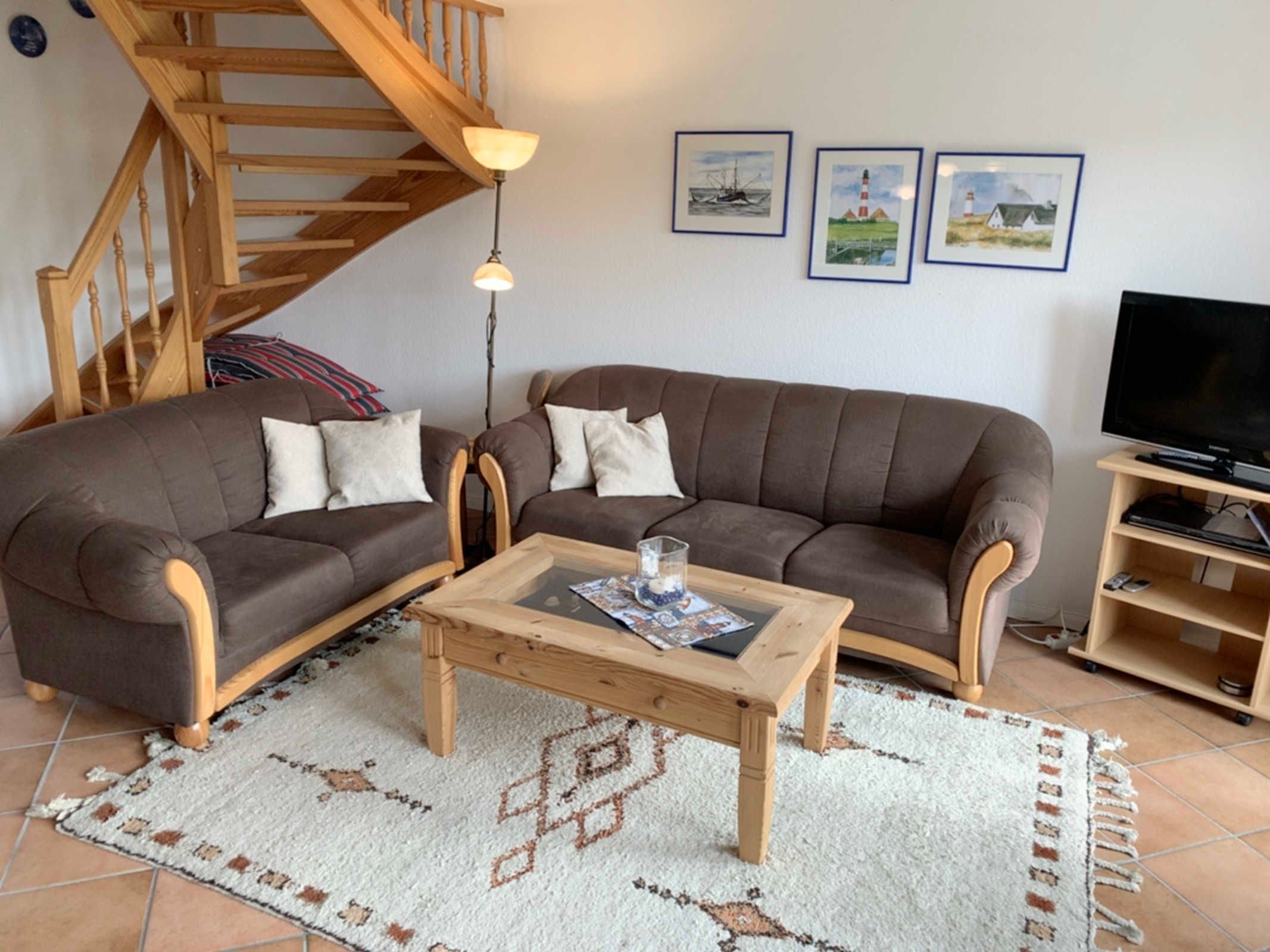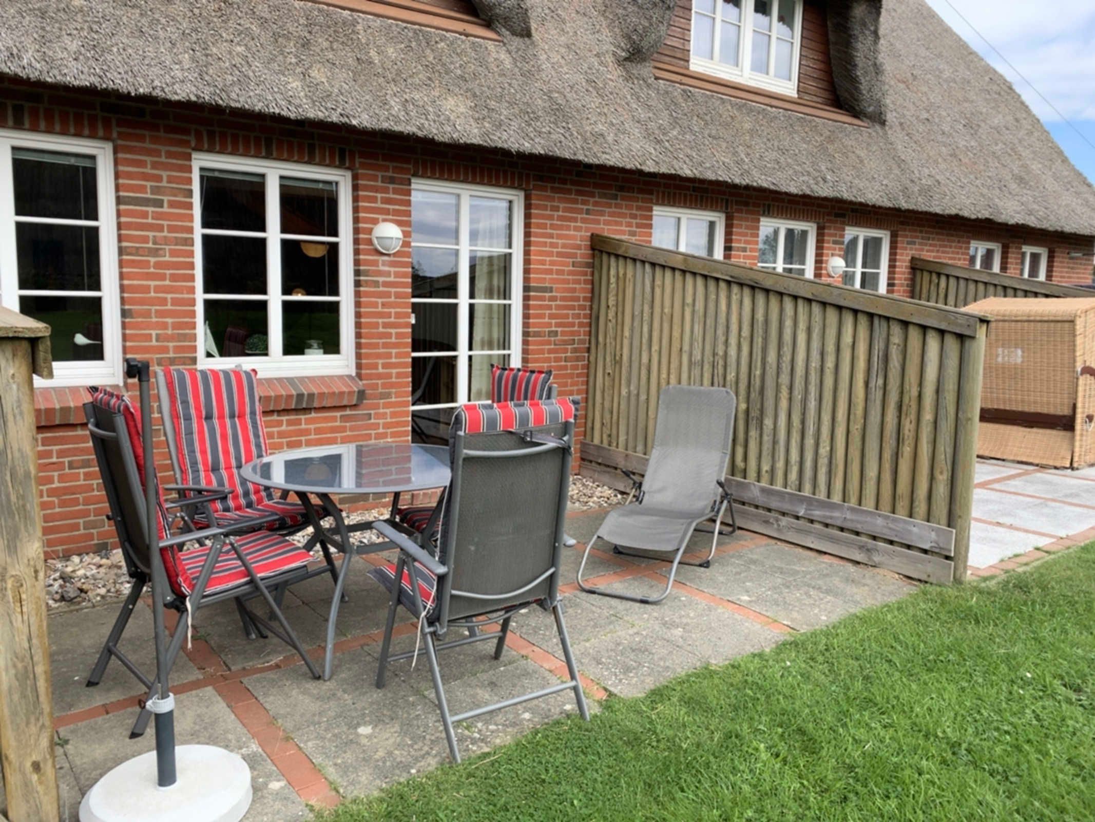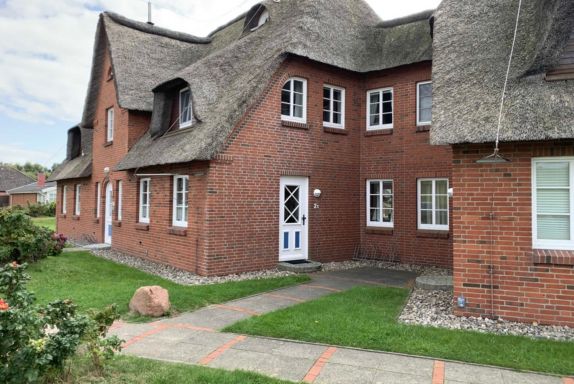 Der Friesenhof ist ein im typisch friesischen Stil erbautes Reetdachgebäude mit eigenständigen Hausteilen, gelegen im Kurzentrum Nordstrand. Der Hausteil ist ca. 90qm groß und ist für bis zu 6 Personen geeignet. Im Erdgeschoss befinden sich das geräumige Wohnzimmer mit Wohn- und Essbereich, die seperate komplett ausgestattete Einbauküche mit Spülmaschine, Kaffeemaschine usw. Vom Flur aus ist ein zusätzliches Gäste-WC zu erreichen, und vom Wohnzimmer aus geht es auf die möblierte zum Süden liegende Außenterrasse.