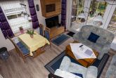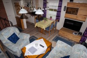 • Unser Ferienhaus mit zwei Haushälften (je 50m²) ist liebevoll und gemütlich eingerichtet. Die max. Belegung beträgt 4 Personen pro Haushälfte. Im Erdgeschoss befindet sich der Wohnbereich mit Esstisch und gemütlicher Sitzecke sowie Stereoanlage und Flat-TV mit SAT-TV-Empfang.