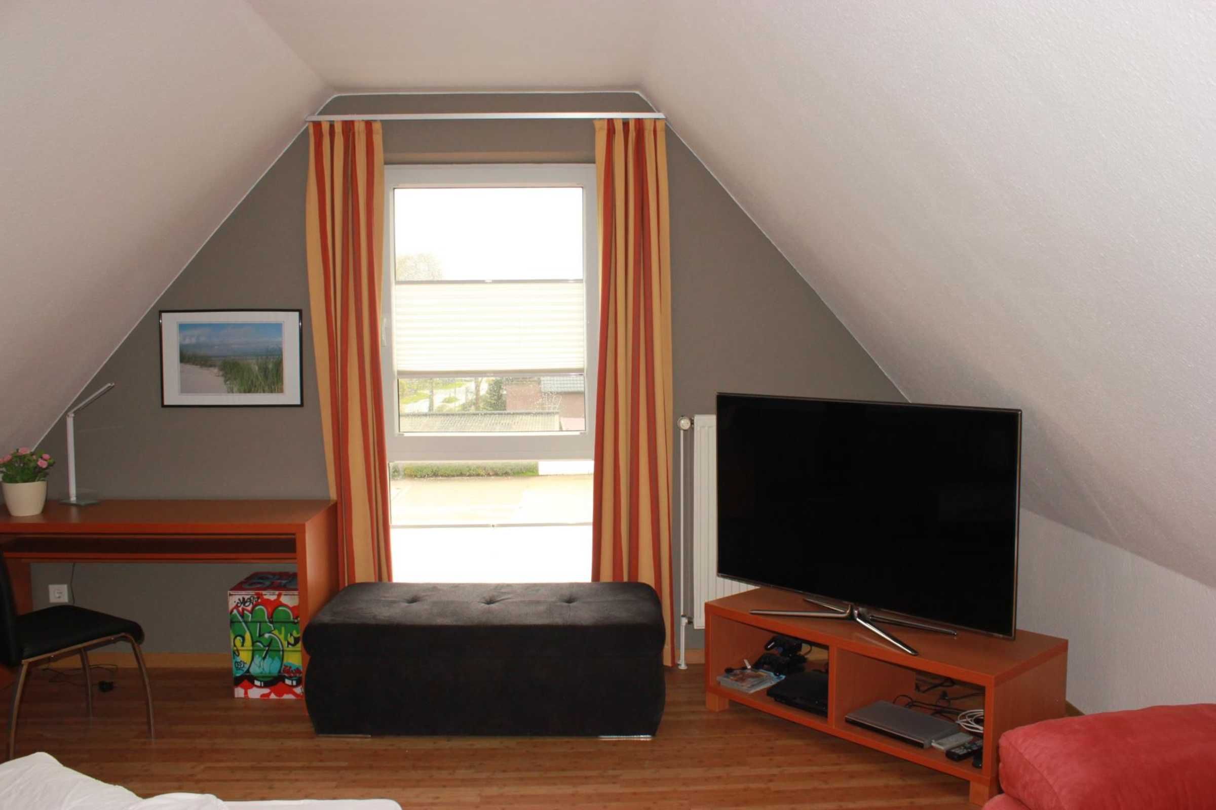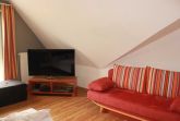 Im dem großzügig angelegten oberen Zimmer steht darüber hinaus noch eine Schlafcouch zur Verfügung.