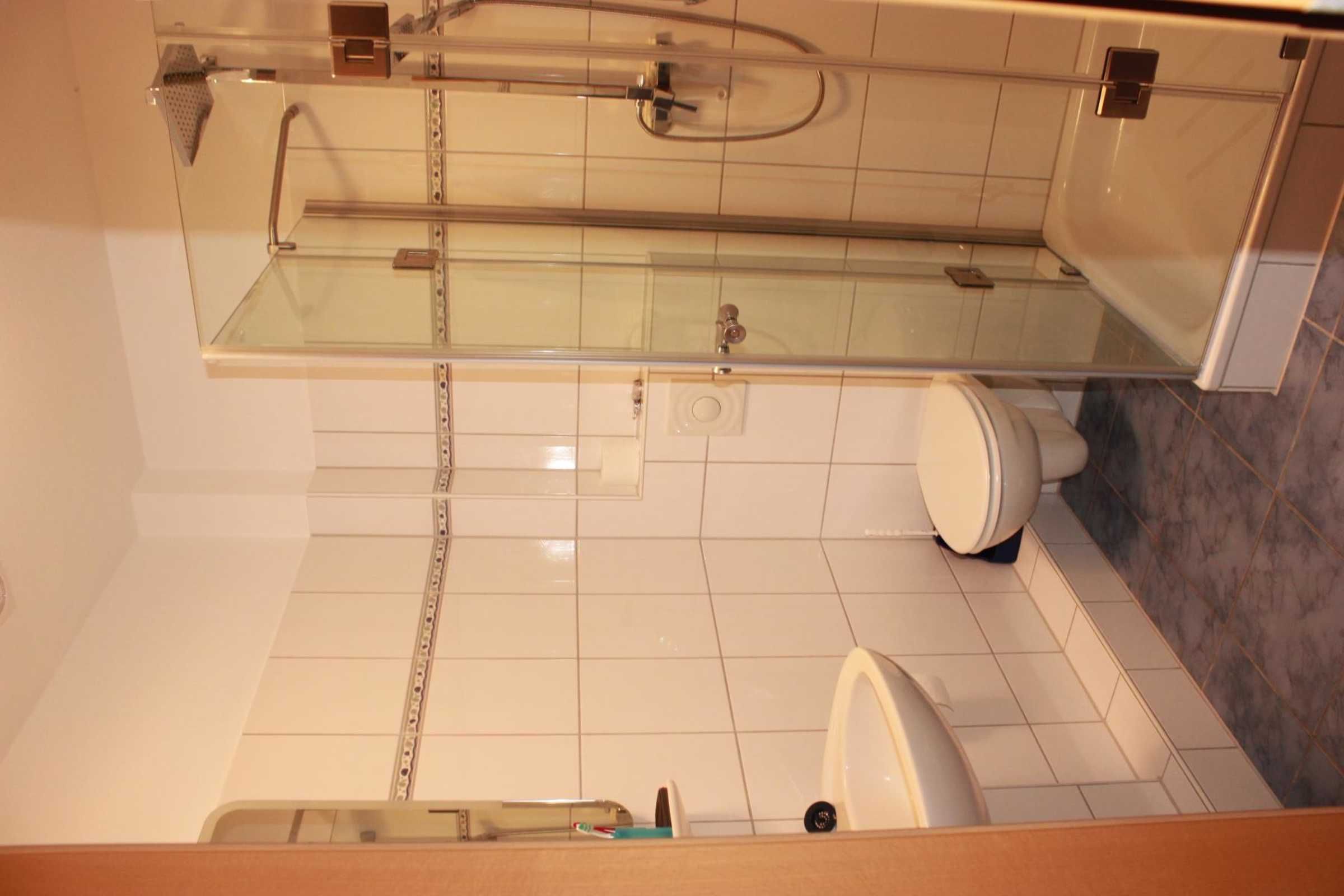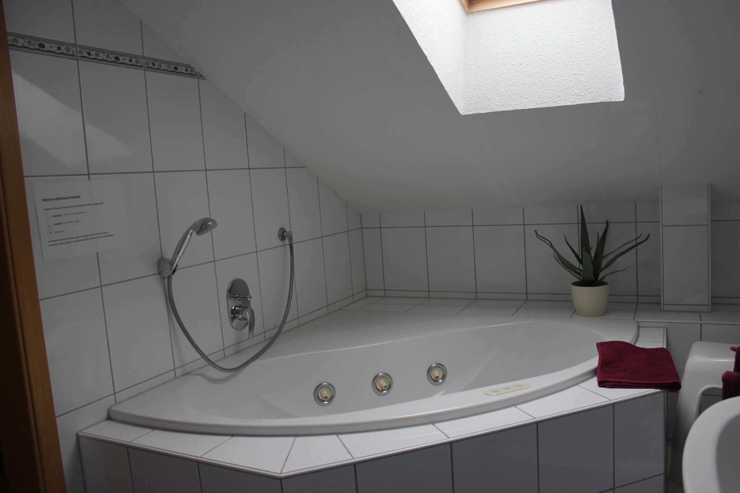 In den Badezimmern ist ein Whirlpool bzw. Rainshowerdusche (Regenwalddusche) mit Glaskabine, je einem Föhn und diversen Ablagemöglichkeiten in Schränkchen vorhanden.