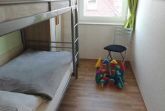 Die Wohnung verfügt über einen Schlafraum mit Doppelbett, ein Kinderzimmer mit Etagenbett, einen