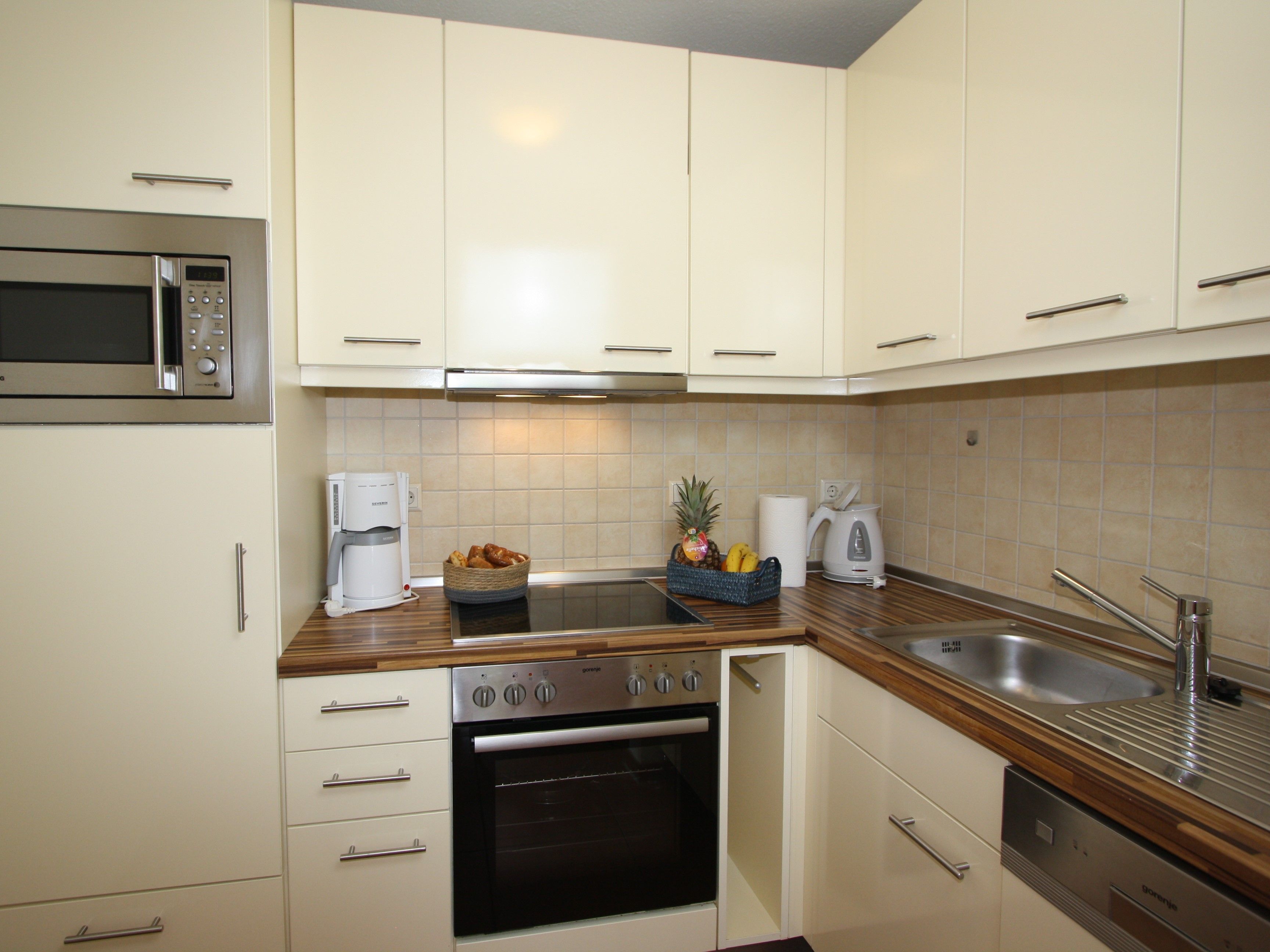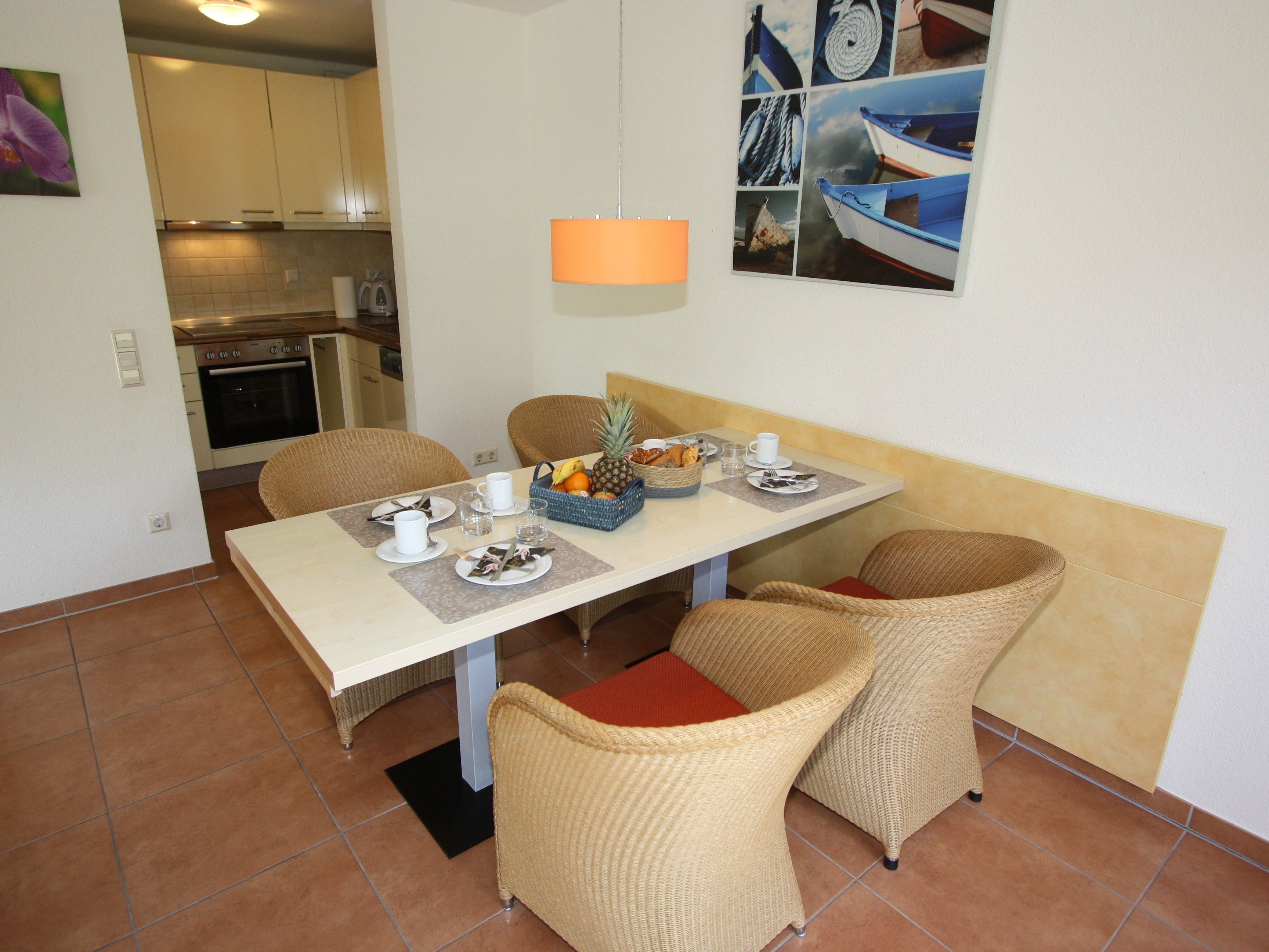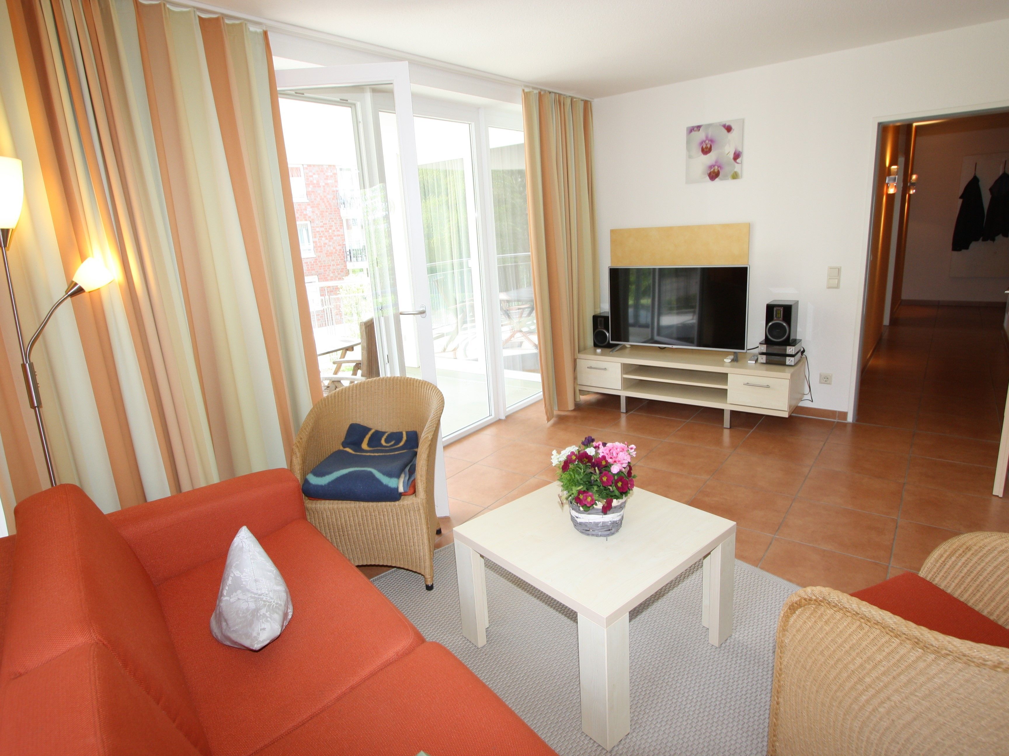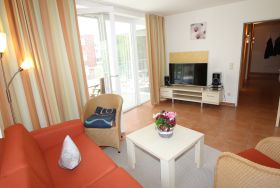 Sie wohnen in einem 3-Zimmer-Appartement für bis zu 6 Personen auf 75 m² Wohnfläche im 1. Obergeschoss. Zwei Schlafzimmer mit Doppelbett, großer heller Wohn-/Schlafraum mit bequemer Doppelbettcouch, separater Essplatz, voll ausgestatteter Küchenbereich mit Geschirrspüler und Mikrowelle, Dusche/WC, großer möblierter Balkon, Abstellraum, SAT-TV (Flachbildschirm) und Mini-HiFi-Anlage mit DVD-Player.