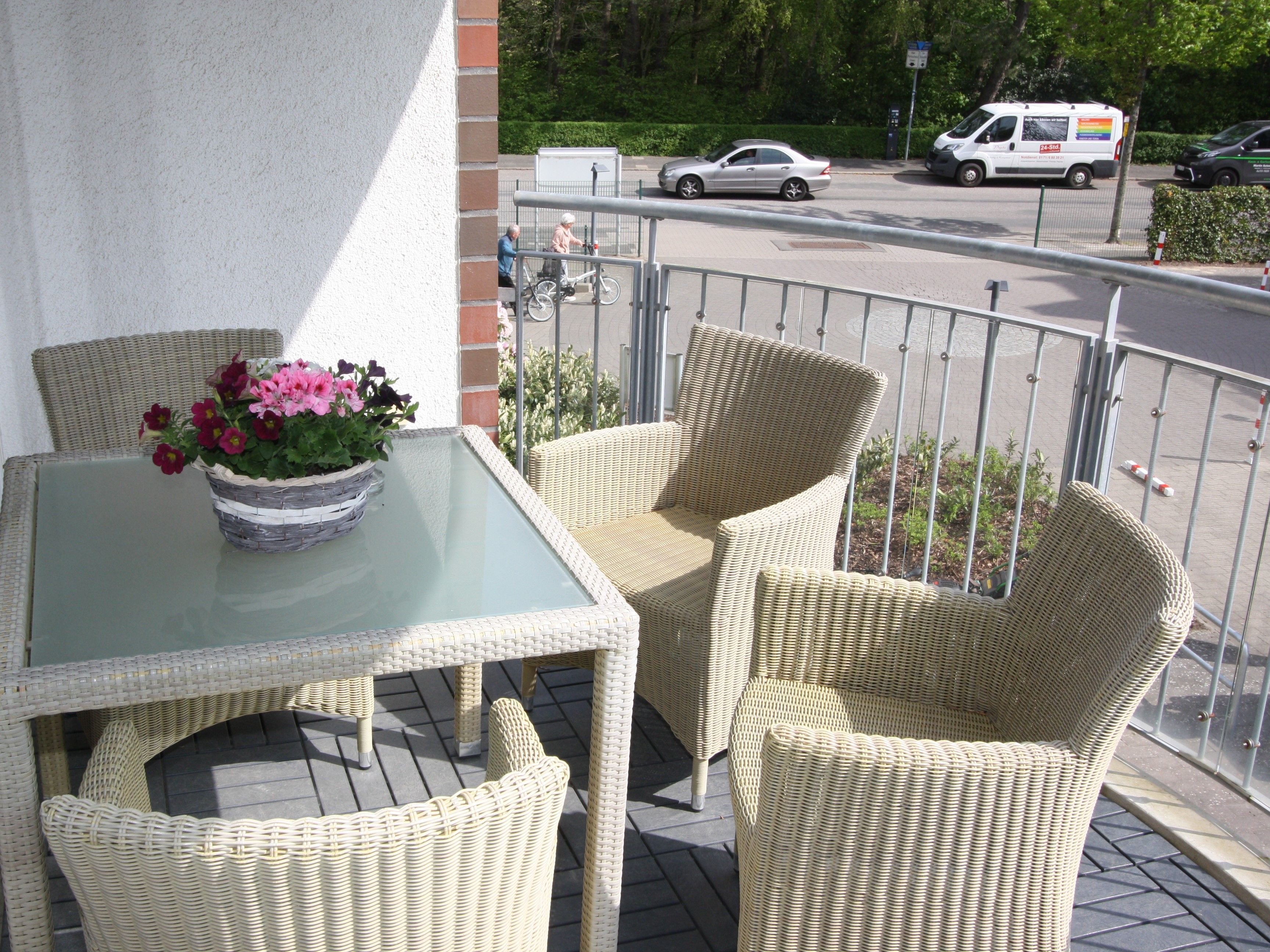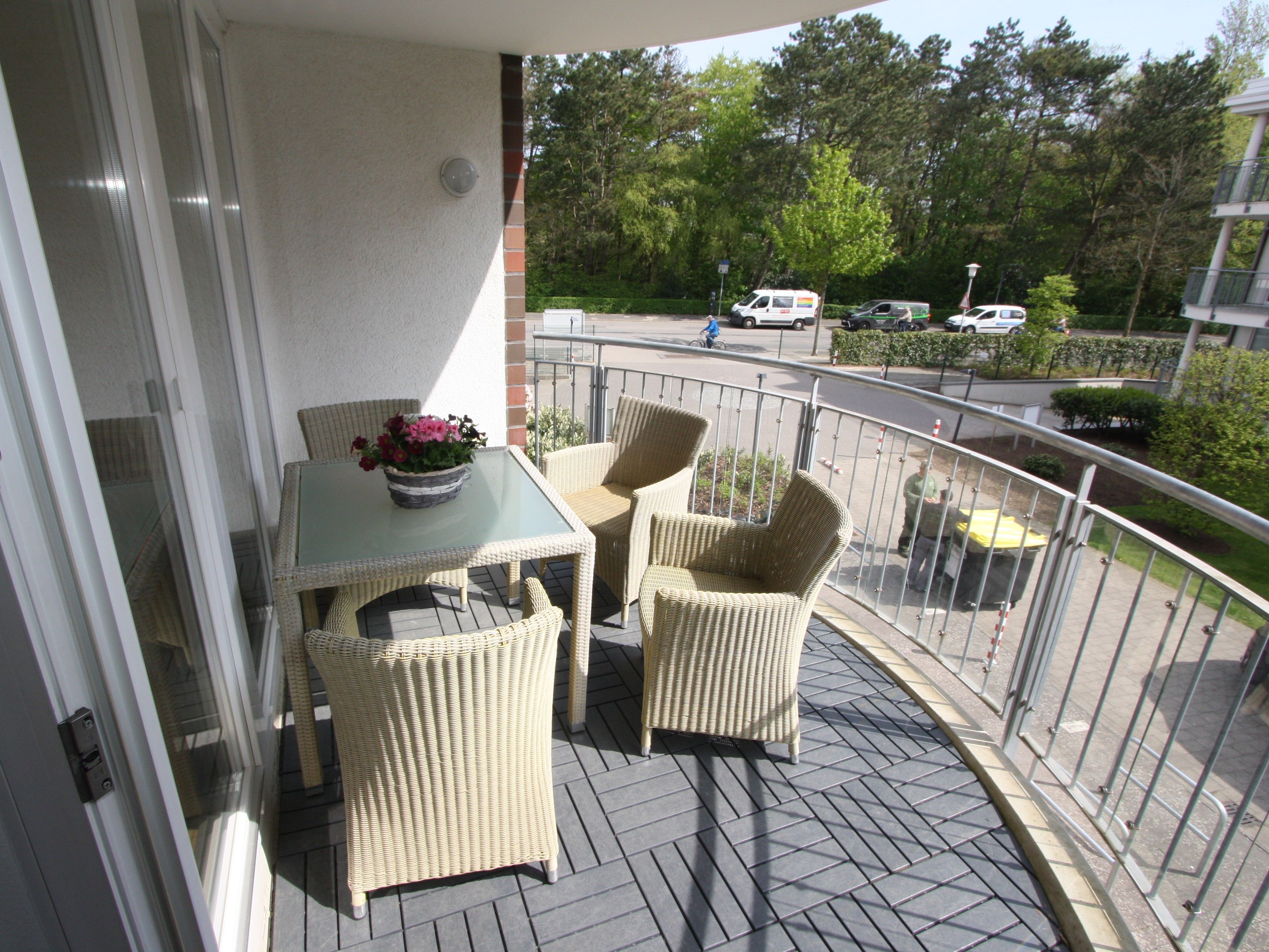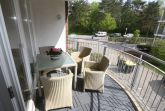 - Großer und überdachter Balkon in Ostausrichtung mit schönen Balkonmöbeln und Holzfussboden ausgestattet