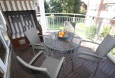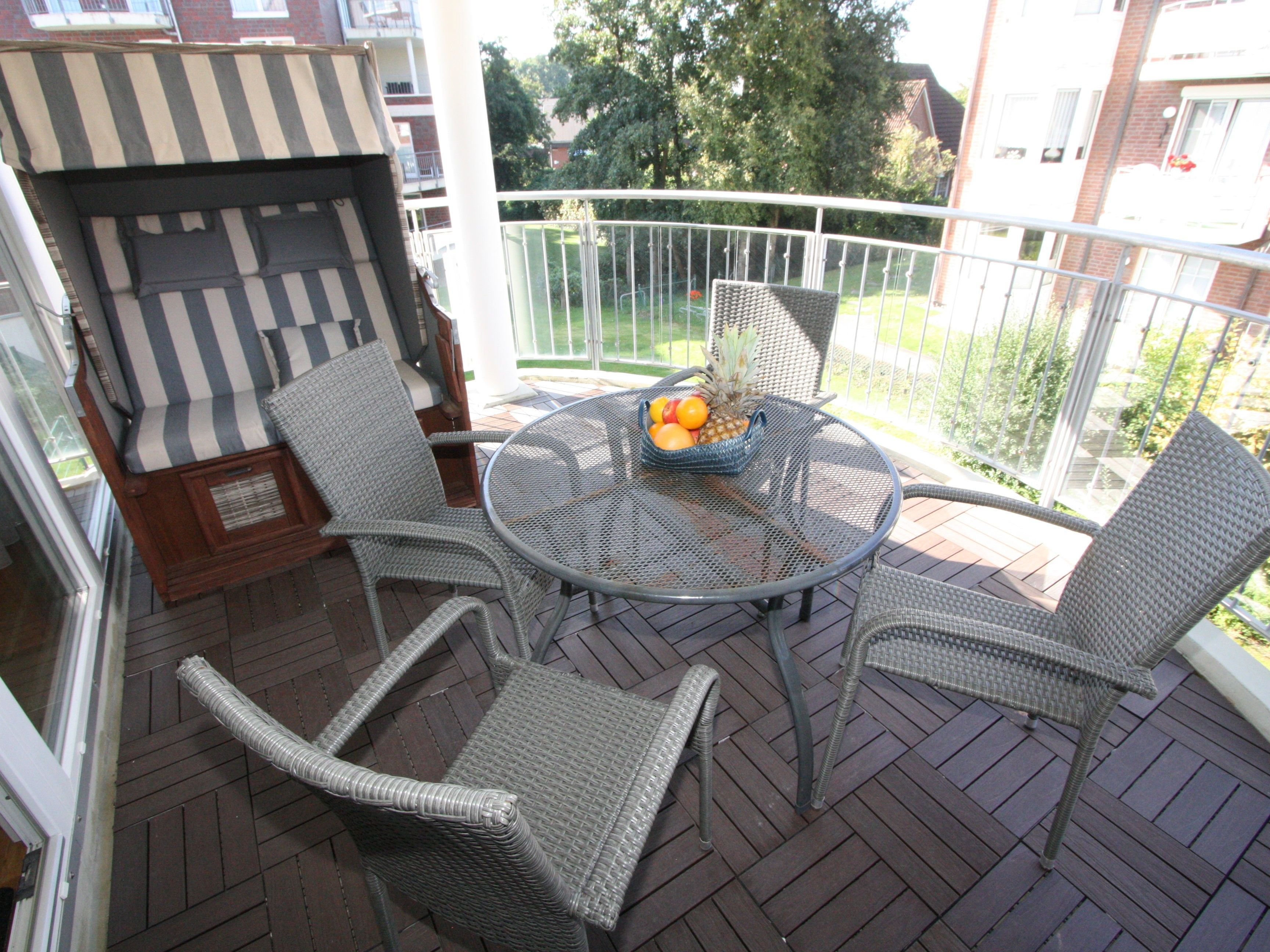 großer möblierter Balkon mit eigenem Strandkorb, Abstellraum.