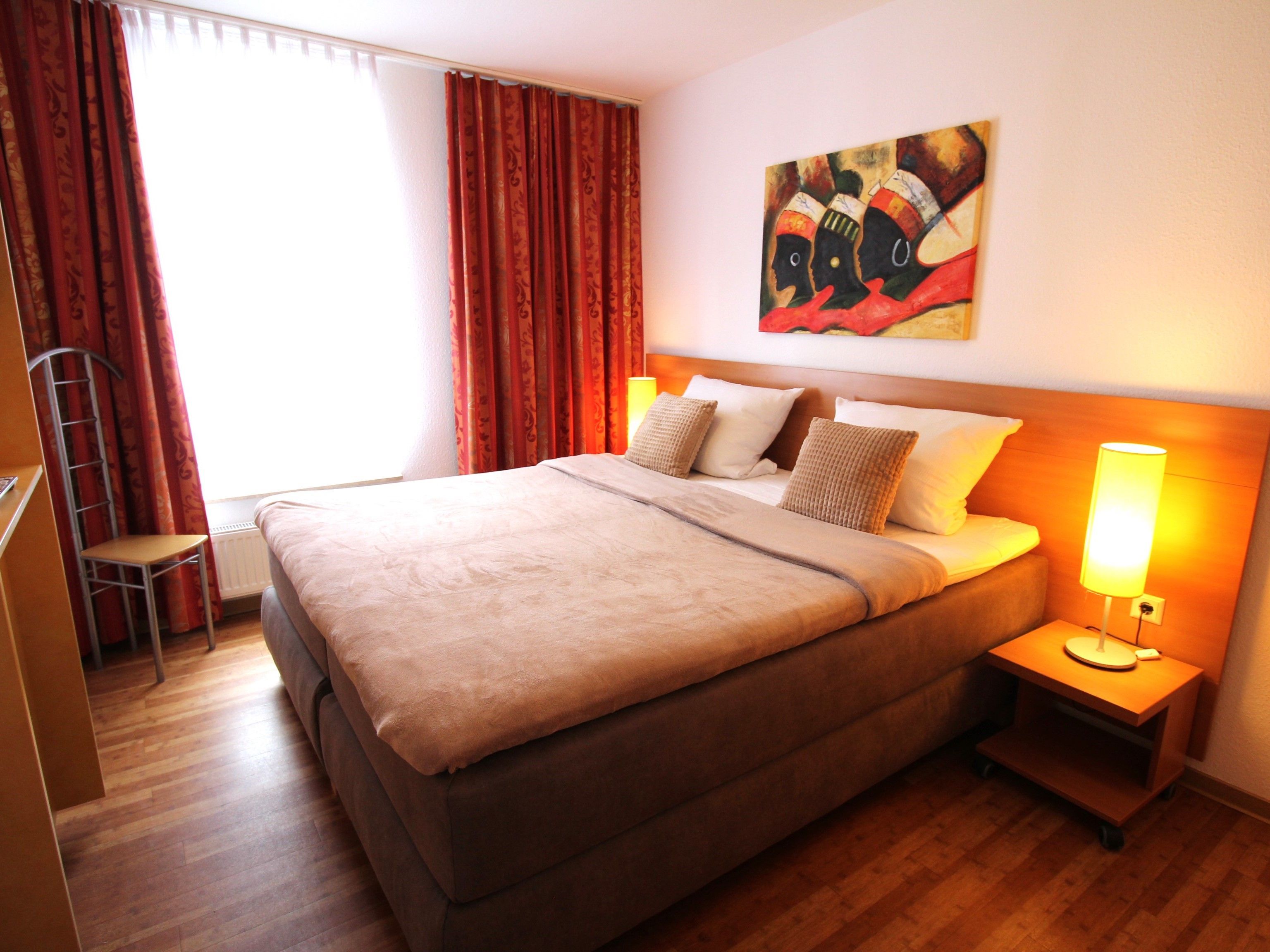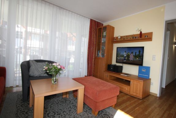 Das 69 m² große 3-Zimmer-Appartement ist für bis zu 6 Personen geeignet. Es befindet sich im 1. Obergeschoss im hinteren Teil des Hauses (Süd-West-Richtung).