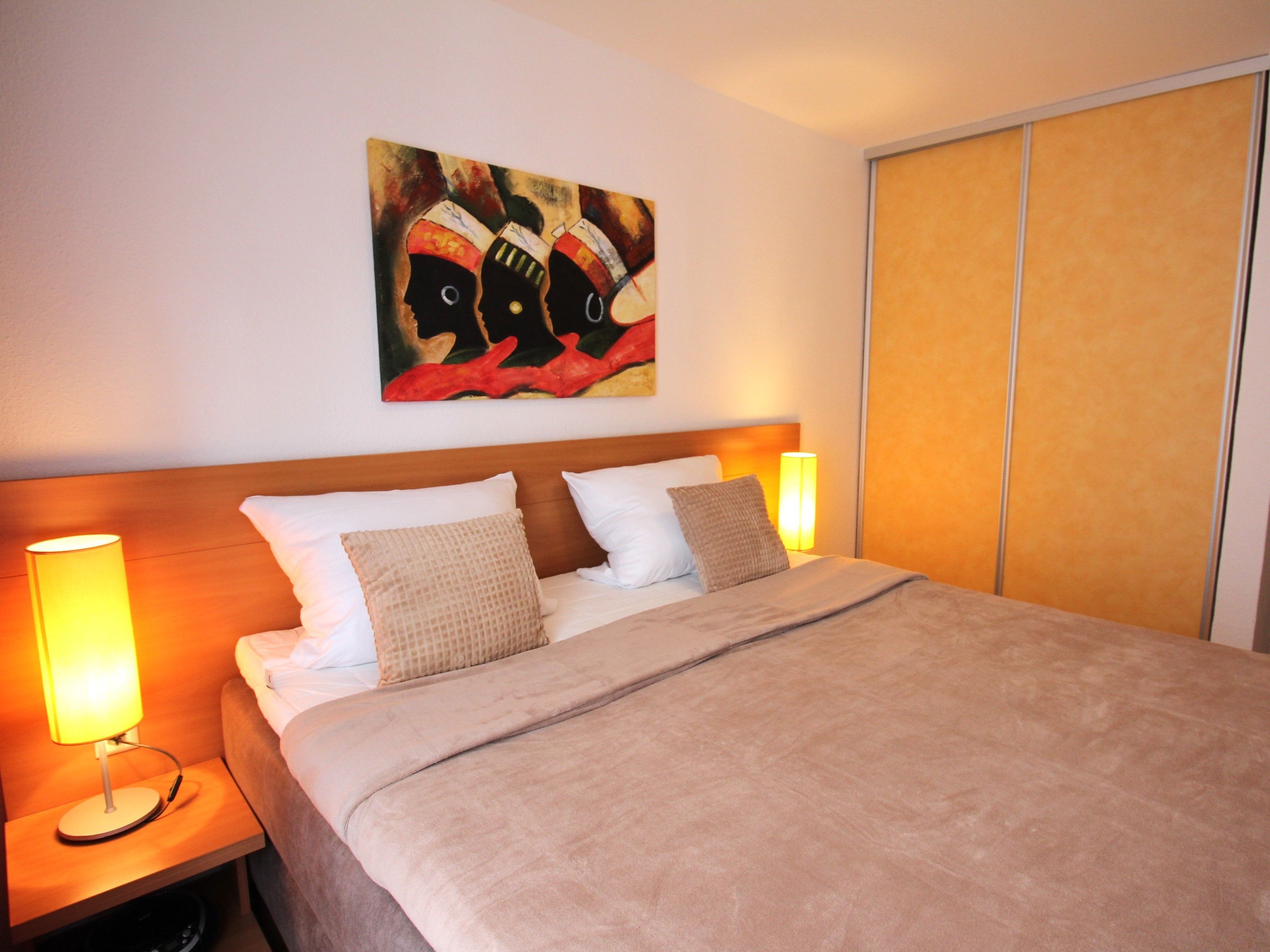 Ausgestattet ist die Wohnung mit großem Fernseher mit FireTV - Stick, Mini-HiFi-Anlage mit DVD-Player und USB-Anschluss und einem kleineren Flachbildschirm im 2.Schlafzimmer.