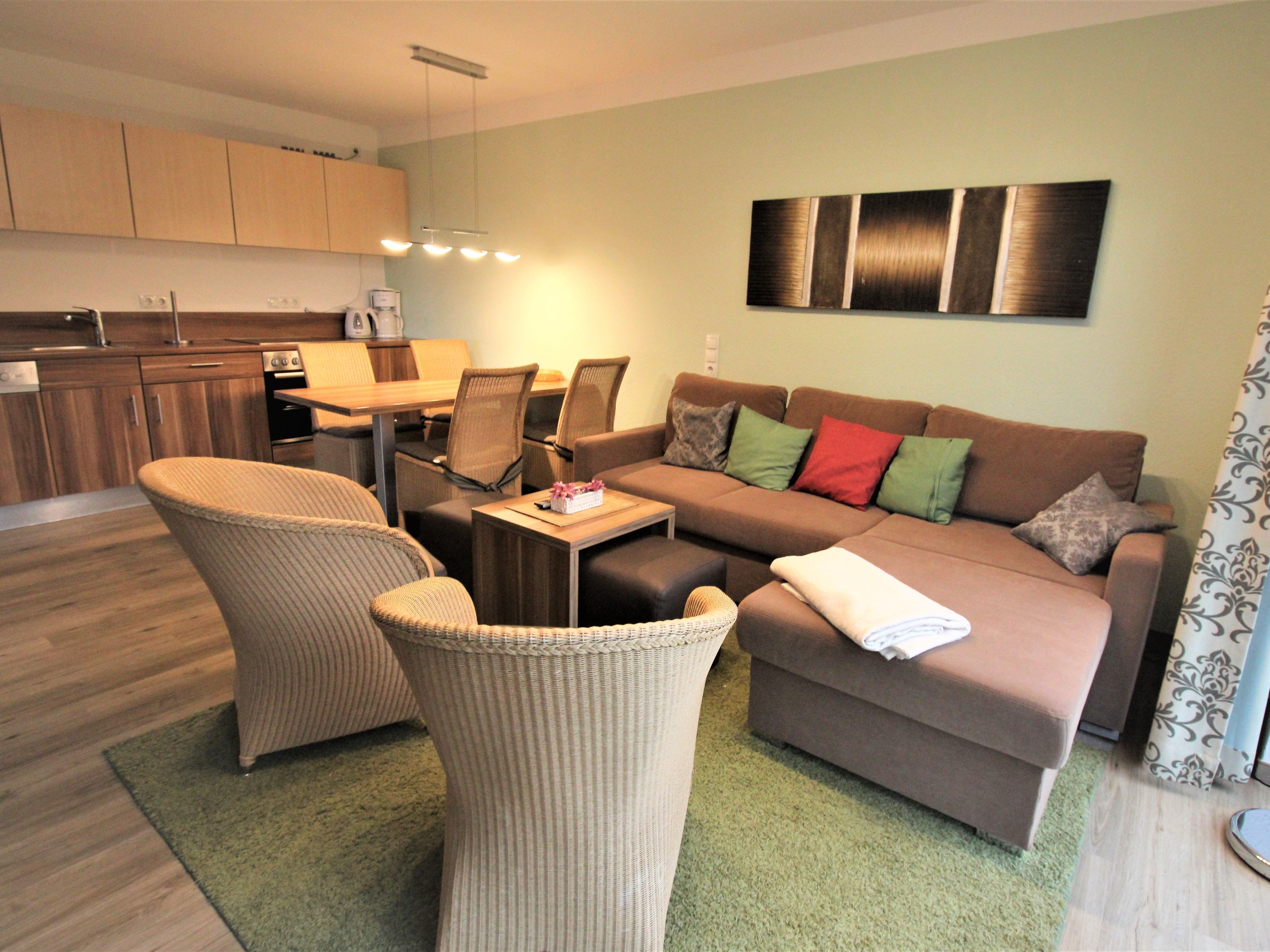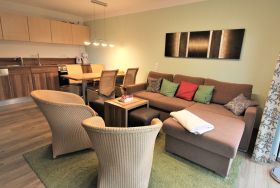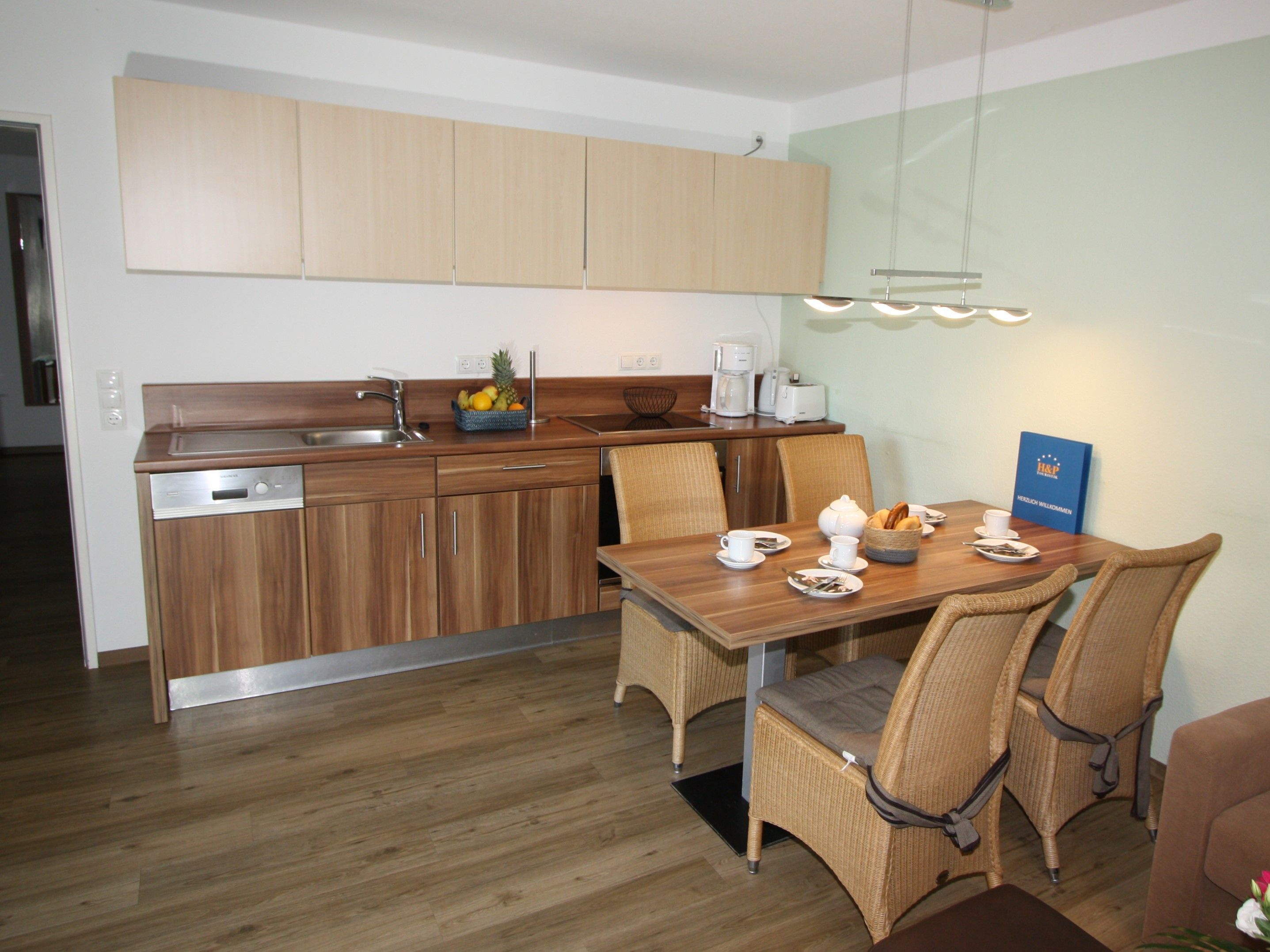 Die Wohnung ist durch ihre helle, freundliche und zweckmäßige Einrichtung der richtige Ort, um erholsame