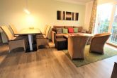 Schlafzimmer hat einen begehbaren Kleiderschrank), zwei Bäder, die Küche, die Essecke, das Wohnzimmer