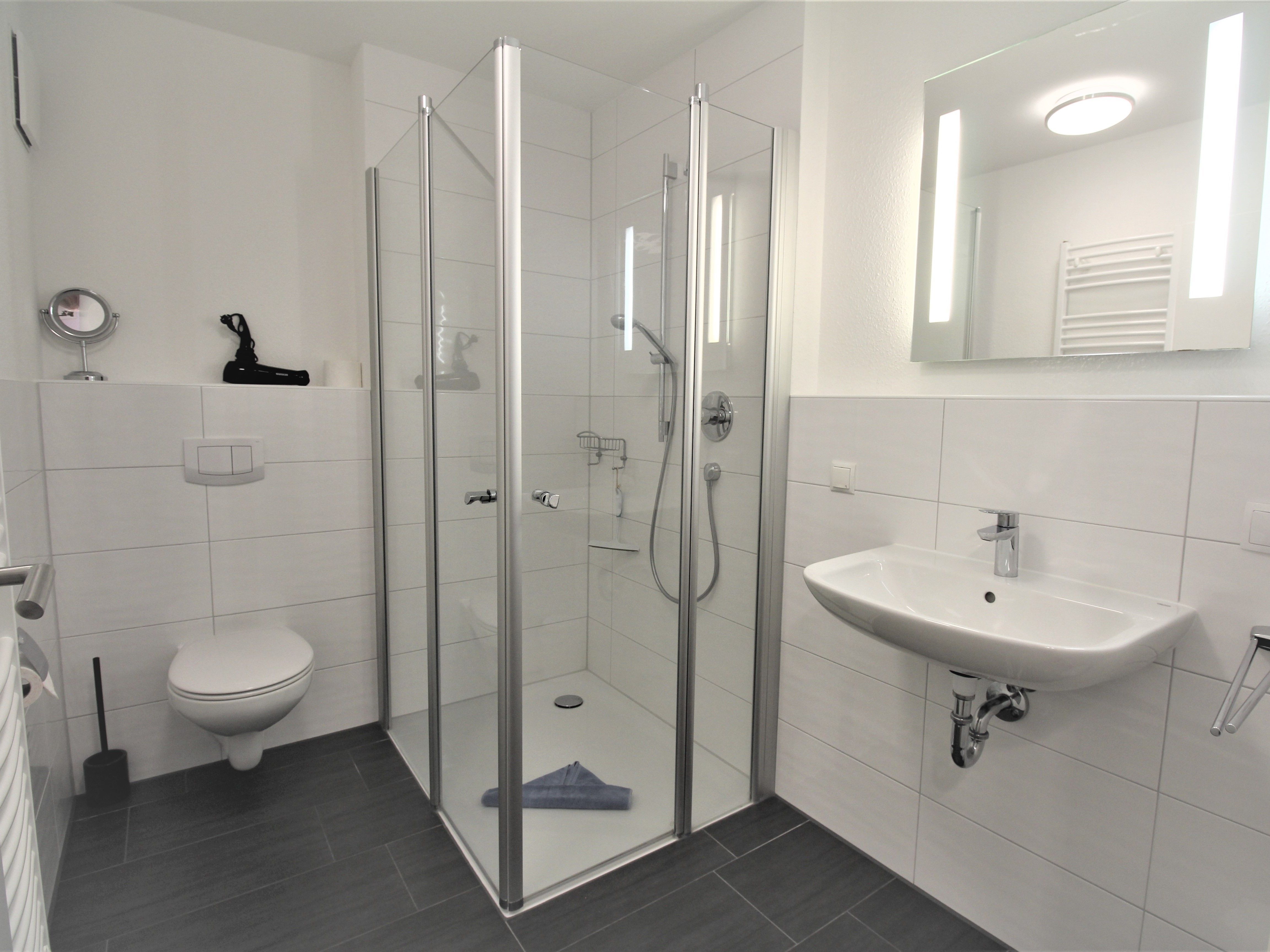 Durch zwei ebenerdige Duschen in zwei Bädern und jeweils WC und viel Bewegungsfreiraum im großen Bad ist