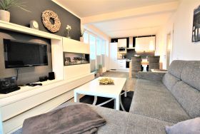 Die modern und hochwertig eingerichtete Wohnung bietet Platz für bis zu 6 Personen und ist ca. 75 m² groß und liegt in der 3. Etage.