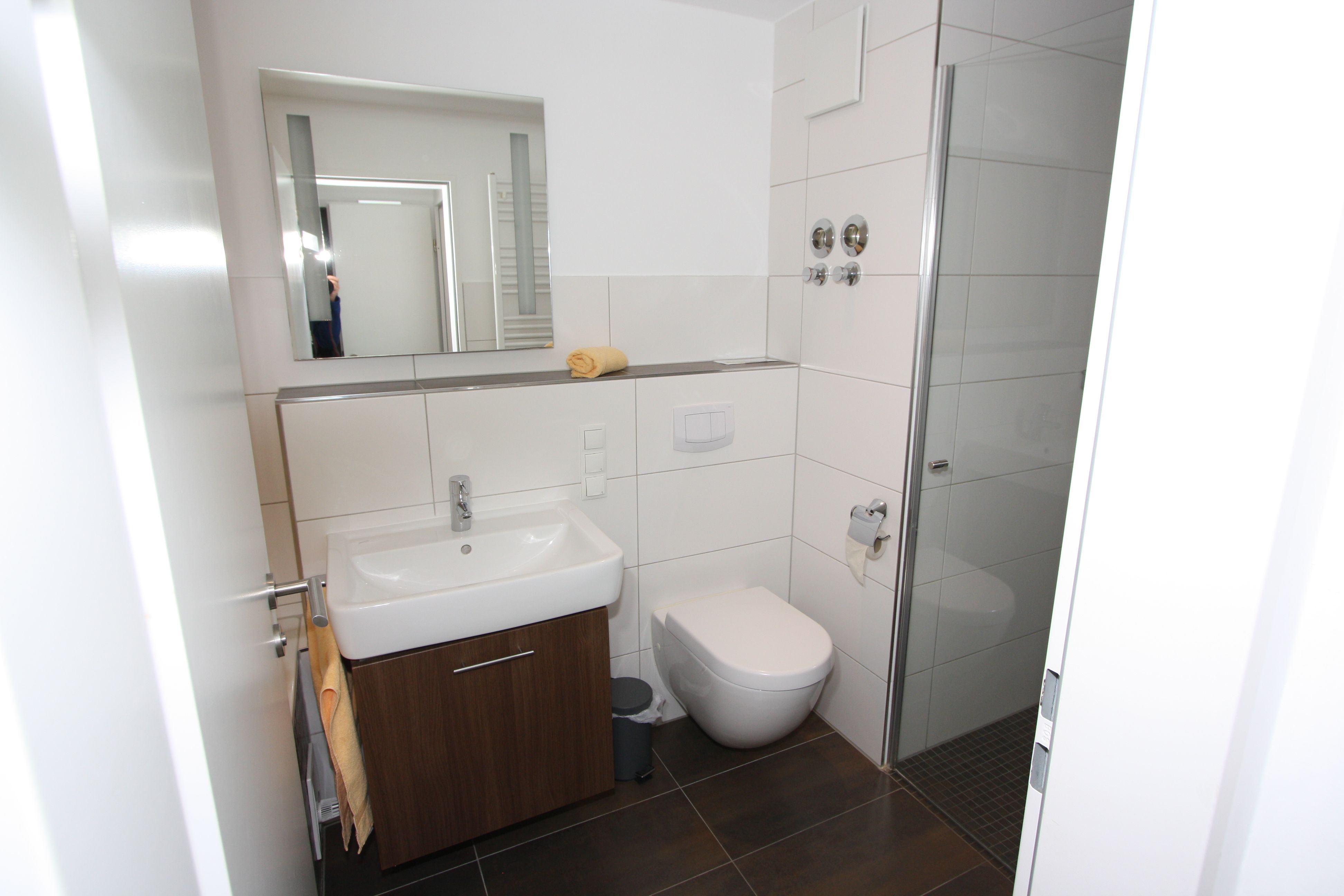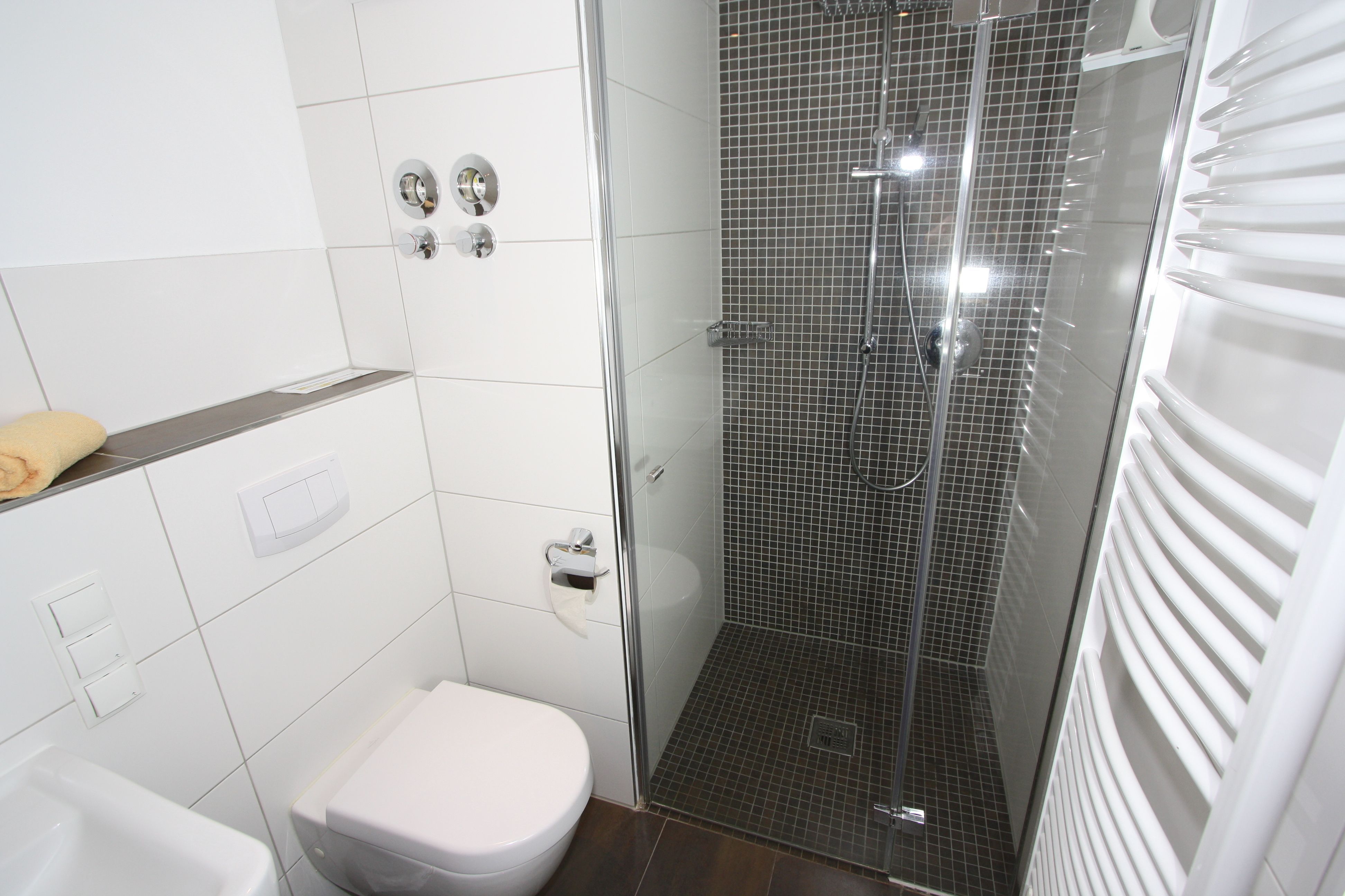 Alternativ können Sie nach einem schönen Urlaubstag in der gemütlichen Badewanne relaxen. Das moderne Bad verfügt zusätzlich über eine belebende Rainshower. Weiterhin gibt es ein separates Gäste-WC. Alle Bäder mit Fussbodenheizung.