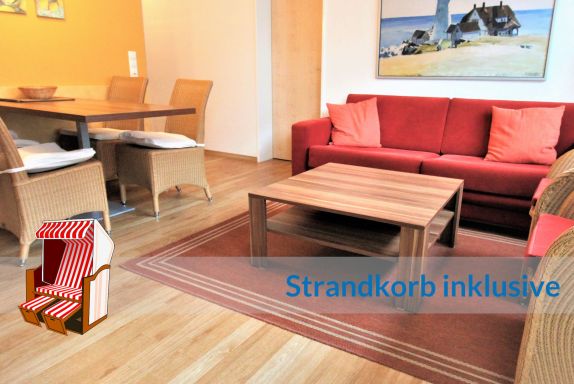 Zu unserer Ferienwohnung gehört ein Strandkorb mit der Nummer 118, der unseren Gästen in der Saison ( Mai bis Sep.) im Feld 46 (sehr nah zu den öffentlichen Duschen / WC, Kiosk und Meerwasserfreibad Steinmarne) kostenlos zur Verfügung steht.